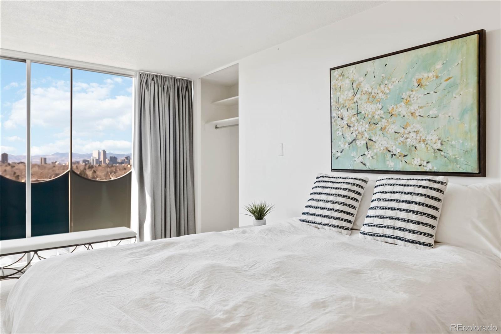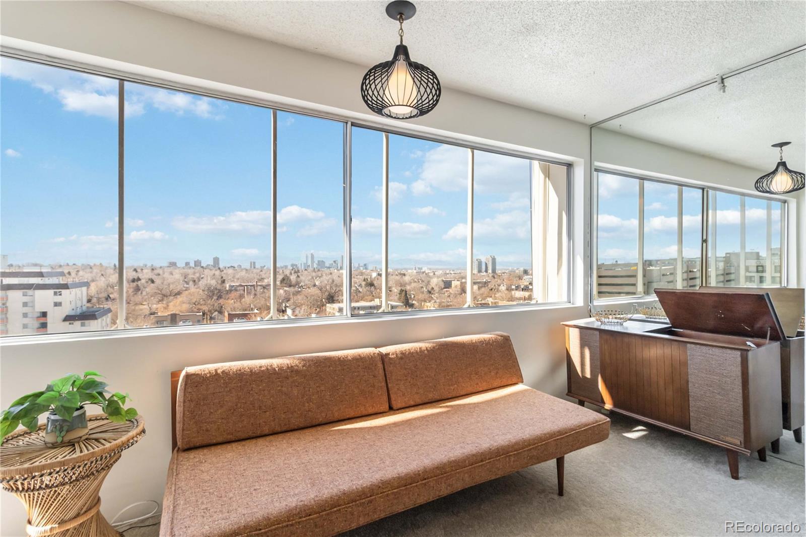 Welcome to the best views in all the city. See for yourself!! You will absolutely love your 14th-floor West-facing condo in Parkway Tower, located in the vibrant Hale/Mayfair/Hilltop neighborhood. Enjoy stunning 180-degree views, including downtown Denver and the mountains, from within this end-unit and the rooftop patio. The city and mountain views can be enjoyed from your private patio or from the comfort of your sitting area off the living room. This well maintained condo features a well thought out updated kitchen with **appliance allowance**, spacious west-facing bedrooms with stunning views, and abundant natural light. The large primary bedroom offers two closets and versatile space for an office or reading area, while the second bedroom includes a generous closet and patio access. Two full renovated bathrooms, that are keeping with the era of the building, allow for convenience for you and your guests. Amenities include a gym two floors above, a library, a media/workspace, and a rooftop deck perfect for sunrises, sunsets, or fireworks. The seller has prepaid a special assessment totaling **$38,000** in building maintenance for elevator modernization, parking lot improvement, exterior/garage waterproofing and building updates. Also included is a deeded parking spot located securely underground and 2 storage units, 1 on the 14th floor and one in the parking garage. HOA fees cover heat, A/C, water, trash, sewer, package receiving room, clubhouse, fitness center, and grounds maintenance, including snow removal. Minutes from Trader Joe’s, restaurants, bars, coffee shops, and a newly opened park, this well-maintained condo with amazing views is ready for you to call home. Schedule a viewing today!