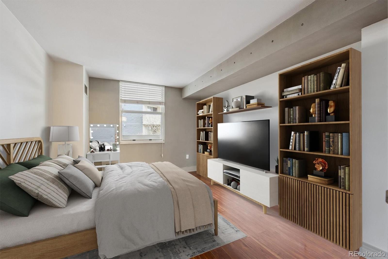PRIVATE SETTING IN A CENTRAL LOCATION!!! Fantastic 2 bed, 2 bath condo in a secured entry building features an open floor plan and a private balcony. Good size primary suite with a large walk-in closet plus a 2nd bed & bath for guests. Hard surface floors throughout. The nicely appointed kitchen opens to the dining & living areas in a well designed floor plan. Excellent building amenities including fitness room, community pool, 4 rooftop patios with views to mountains & downtown, business center, keyless entry, downtown shuttle and underground parking garage. Just steps to numerous restaurants, bars, coffee shops and the Cherry Creek Trail. This property is Move-in Ready, and includes 2 deeded parking spots in the community garage.