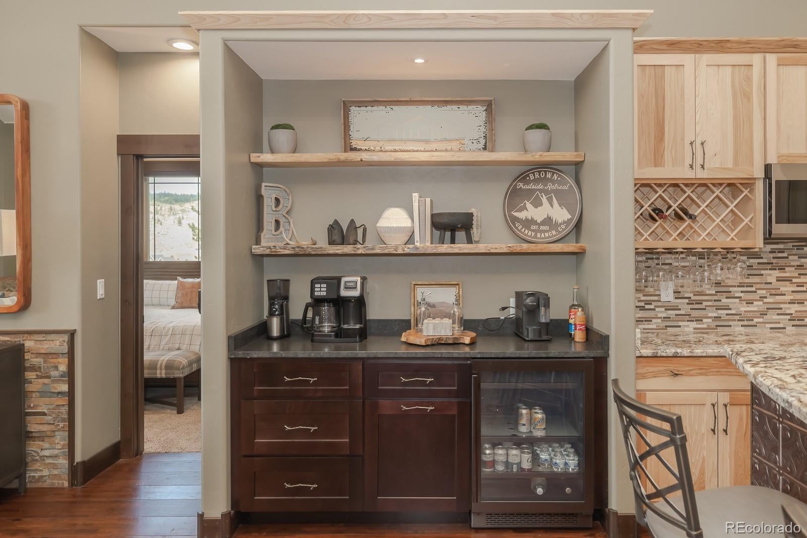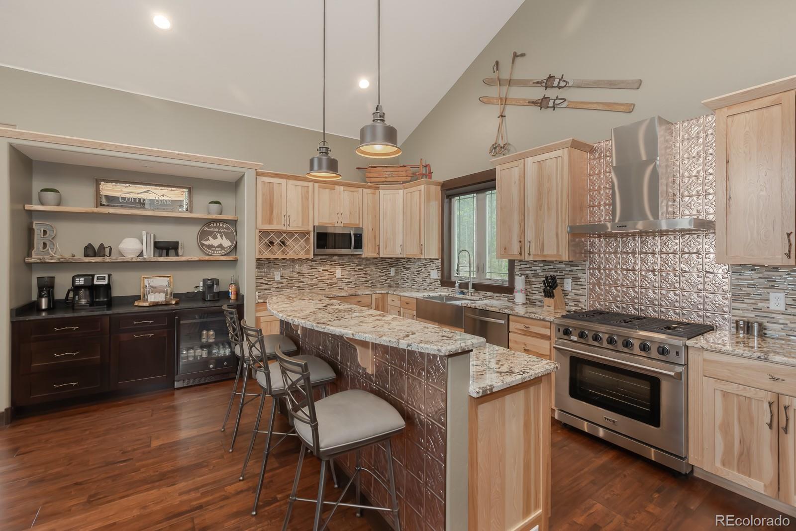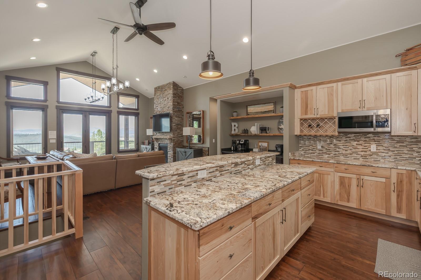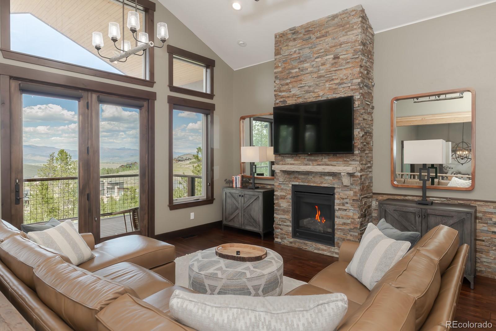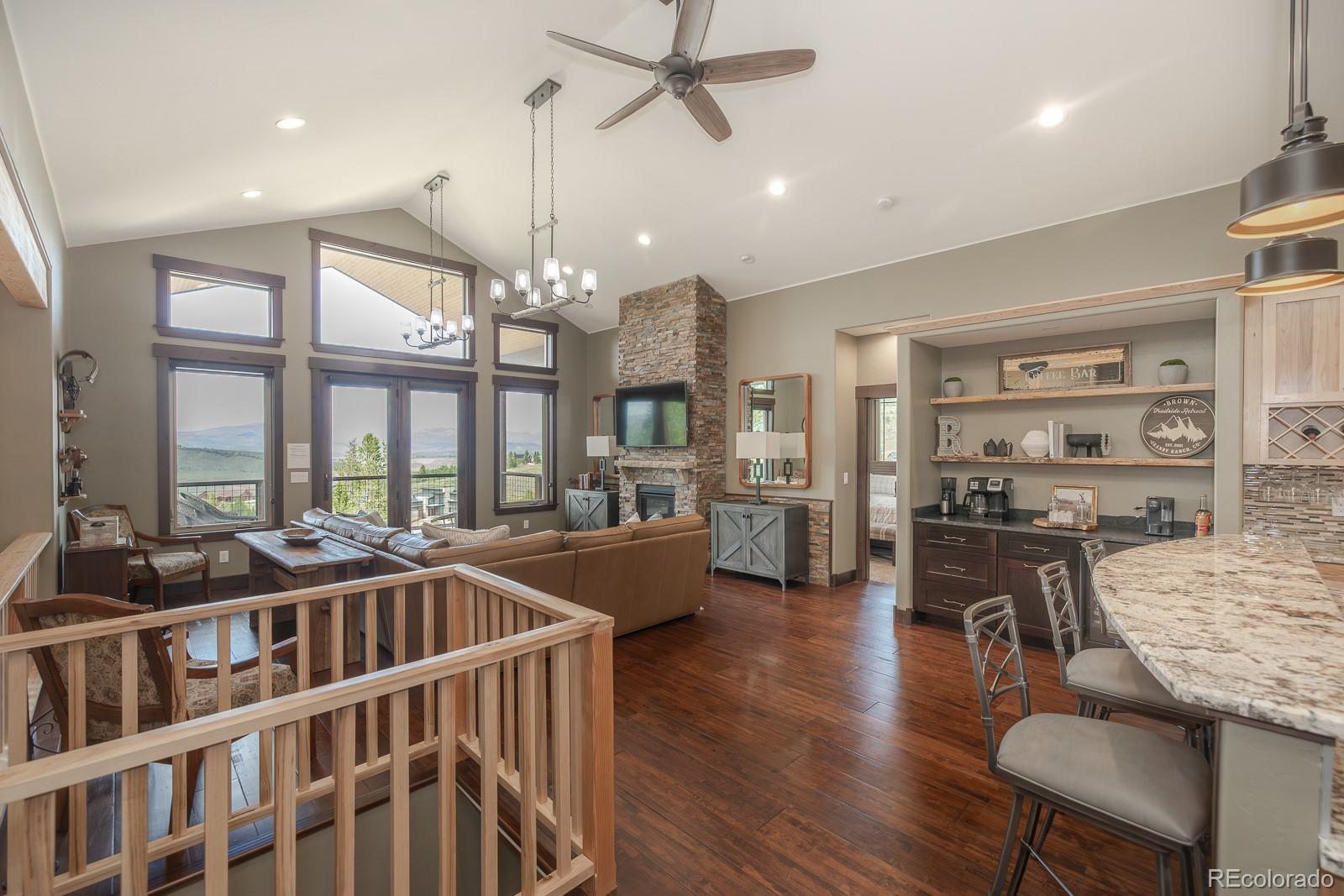 Welcome to an exceptionally rare, ski-in/ski-out home, nestled on nearly three-quarters of an acre with the picturesque Home Again Ski Trail right in your backyard. This custom-built masterpiece, completed in 2020, has never been utilized as a short-term rental, ensuring it remains in pristine, like-new condition. This one-of-a-kind residence boasts high-end finishes throughout, including a designer kitchen adorned with granite countertops and custom tile work, a built-in coffee bar, and premium hardwood floors. The property also features a heated garage, stained concrete floors, and a spacious deck offering panoramic views that will take your breath away. Situated within the Granby Ranch HOA, this home provides unparalleled amenities, including an annual ski pass, access to a pool and fitness center. With its mountain-inspired design, showcasing hickory cabinets, a stone fireplace, and elegant copper accents, this home perfectly marries luxury with rustic charm. The master bath is a true showpiece, featuring rich tile and granite finishes that exude both sophistication and style. Isn't it a dream?