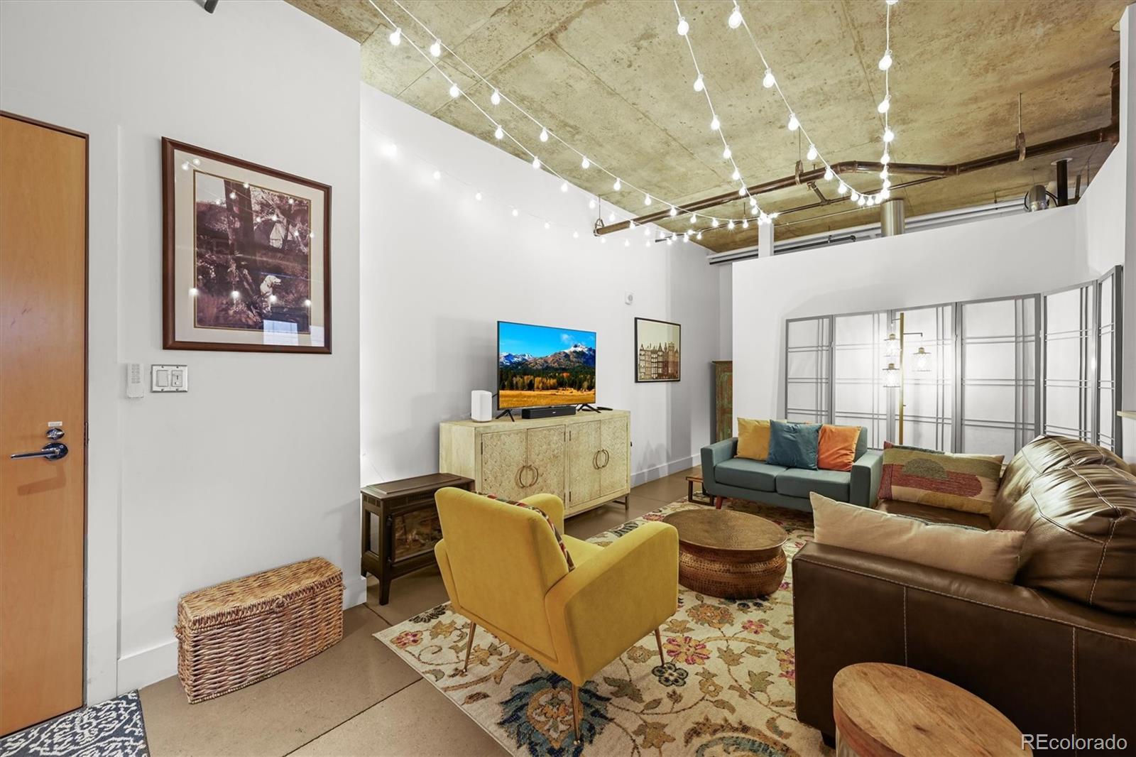 Located in the heart of Riverfront Park, this gorgeous studio loft offers a prime location near parks, shops, restaurants, coffee spots, and the Denver Millennium Bridge. The smart, open layout makes the most of every square foot, with a full-size kitchen featuring stainless steel appliances and granite countertops. A small balcony off the kitchen opens to the outdoors, bringing in fresh air and natural light. The flexible living area offers plenty of room to relax, work, or entertain, while the bedroom space includes a walk-in closet. A separate laundry room adds convenience, complete with a washer, dryer, drying rack, and small storage area. Enjoy the benefits of a secured-access building with 24/7 security, on-site management, a reserved parking space, and a private storage unit in the secure garage. With easy access to LoDo, LoHi, Union Station, Ball Arena, Auraria Campus, and the Denver Performing Arts Complex, this home puts the best of downtown Denver at your doorstep.
