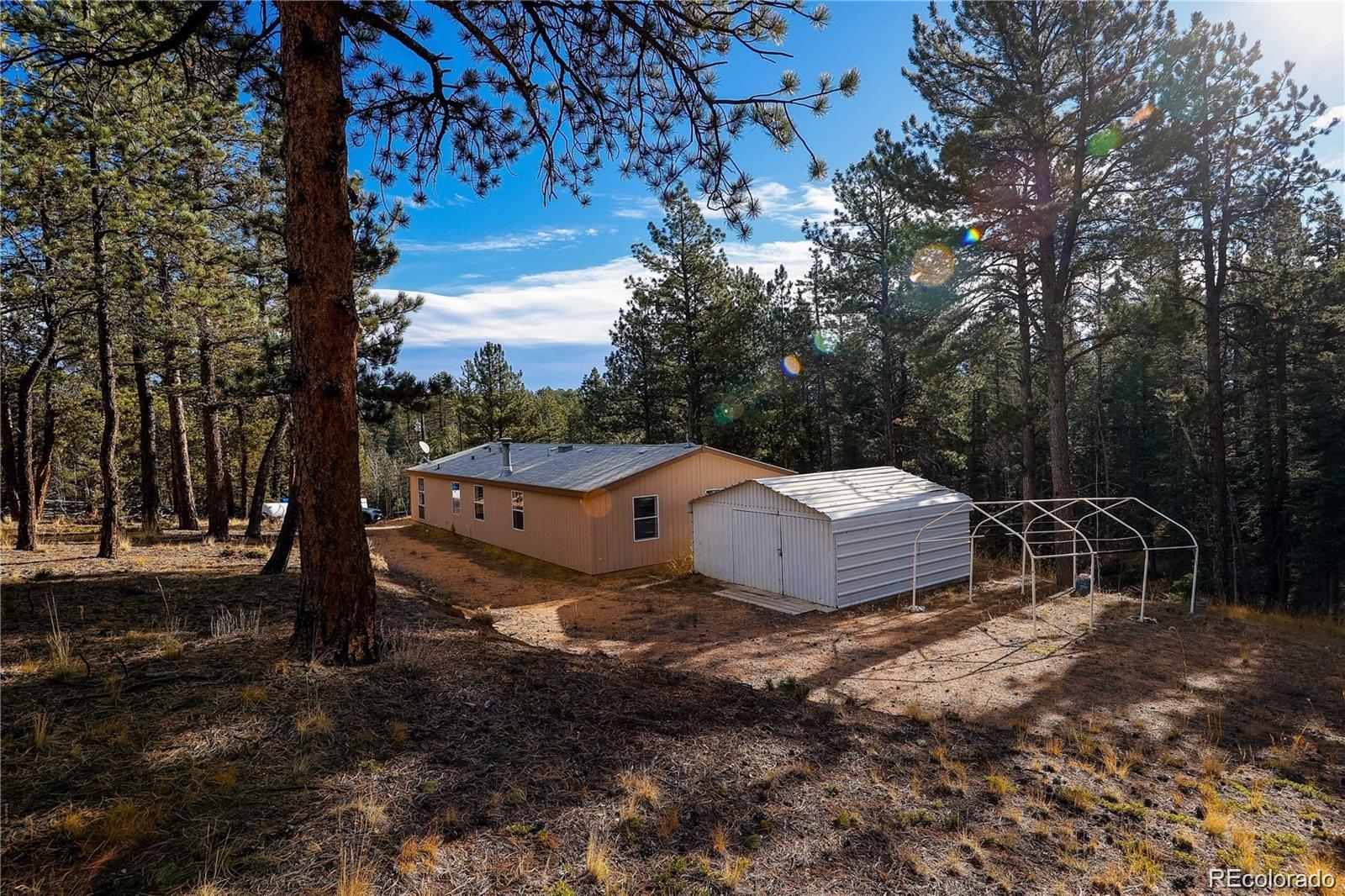 VA ASSUMABLE LOAN! 3.5% INTEREST (FOR VA BUYERS). Cozy 3 Bed/2 Bath home on over 4 acres of beautiful pines in Florissant, Colorado! Vaulted ceilings, wood burning fireplace in the living room, eat-in kitchen with center island and large primary bedroom with attached en suite featuring large soaking tub, dual sinks and separate shower. Plenty of storage in the outdoor shed as well. Lots of privacy in the woods, but just a short drive to Hwy 24 to get to Woodland Park or Colorado Springs.