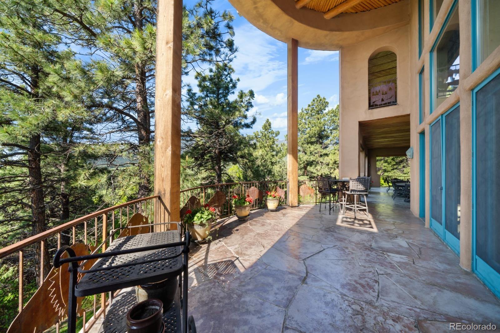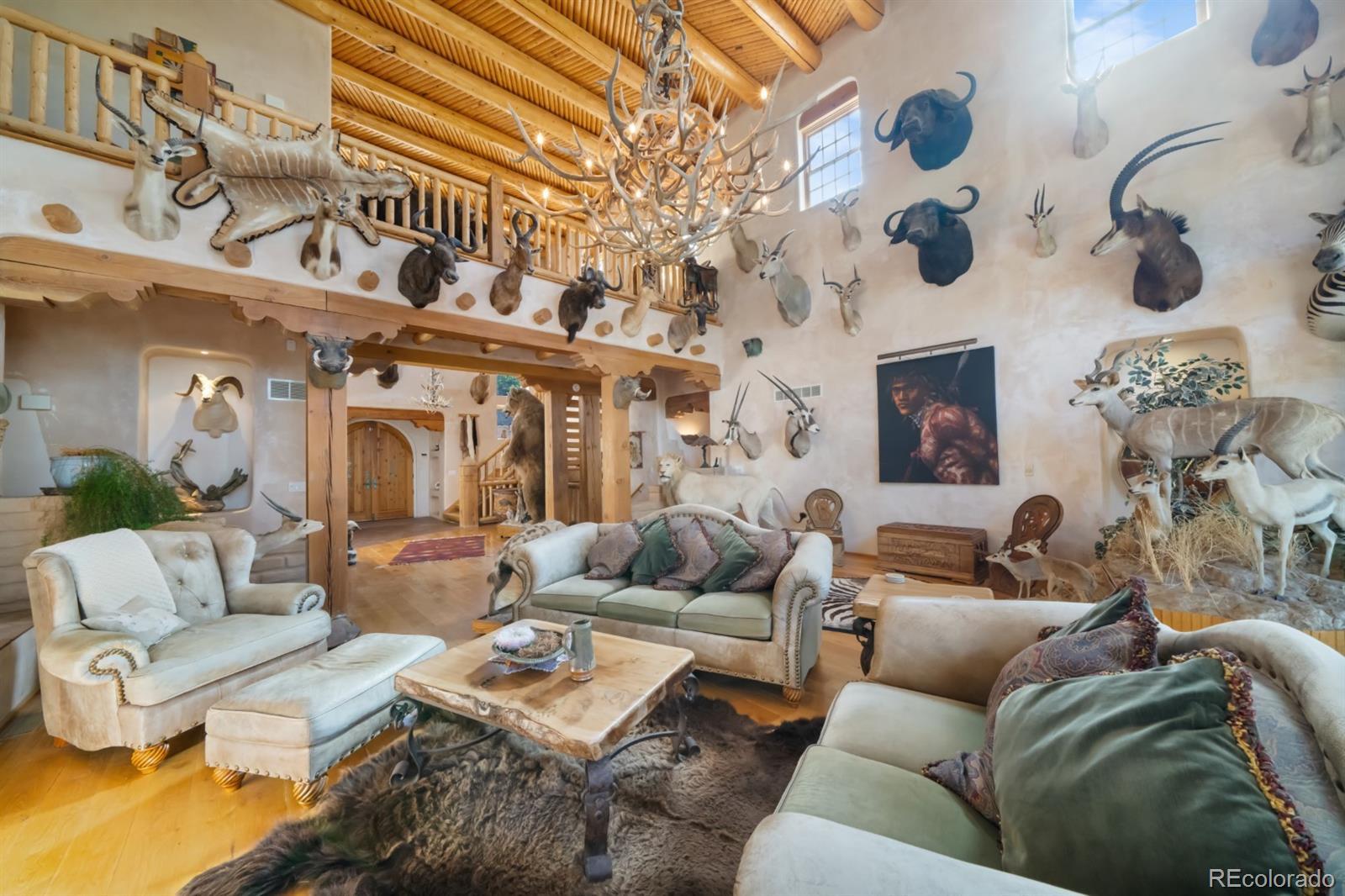 Welcome to Bramare Ranch, meaning-to yearn for-a name that reflects the beauty and spirit of this extraordinary 110-acre property of meadows and wooded land. The 8,304 square-foot Santa Fe-style home blends luxury and function with 5 bedrooms, 6 bathrooms, and over 3,000 square feet of covered patios and decks. The primary suite features a private deck, steam shower, gas fireplace, and an expansive 11’x15’ walk-in closet. Distinctive finishes include custom antler hardware, handcrafted doors from Santa Fe, copper-topped vigas, handmade sconces, and custom tile by Summit Brick in Pueblo, CO. The great room showcases three floors of floor-to-ceiling windows that fill the space with natural light. Six fireplaces, a wood/gas boiler system, a natural gas forced air system, and a full-home sound system enhance comfort throughout. The walk-out basement offers a full wet bar, entertainment center, and direct access to a hot tub beside a wood-burning fire. Water infrastructure includes a 455-foot domestic well producing 15 gpm, a water purification system, and adjudicated rights from four historic ditches. Ranch infrastructure features a heated 3-car attached garage, a detached 2-car garage with workshop, a 3-bay barn with tack and hay storage, pipe corrals, and a stucco-finished loafing shed. With no HOA or covenants, natural gas service to all parcels, a Generac backup power system, and RV hookup, Bramare Ranch offers flexibility for private living, special events, or short-term rentals. Sweeping views of Fishers Peak, Spanish Peaks, Greenhorn Mountain complete this remarkable Colorado retreat.Quick Facts-110 acres meadows,wooded land-5 bedrooms, 6 bathrooms -8,304 square foot Santa Fe style luxury home-3,000+sf of covered decks and patios-Attached heated 3 car garage, detached 2 car garage with workshop-2,400 sf Barn with 3 garage bays, tack room, hay storage-Ideal Horse Property-Domestic well,1,500-gallon concrete cistern-Water rights for irrigation-Hunting Opportunities