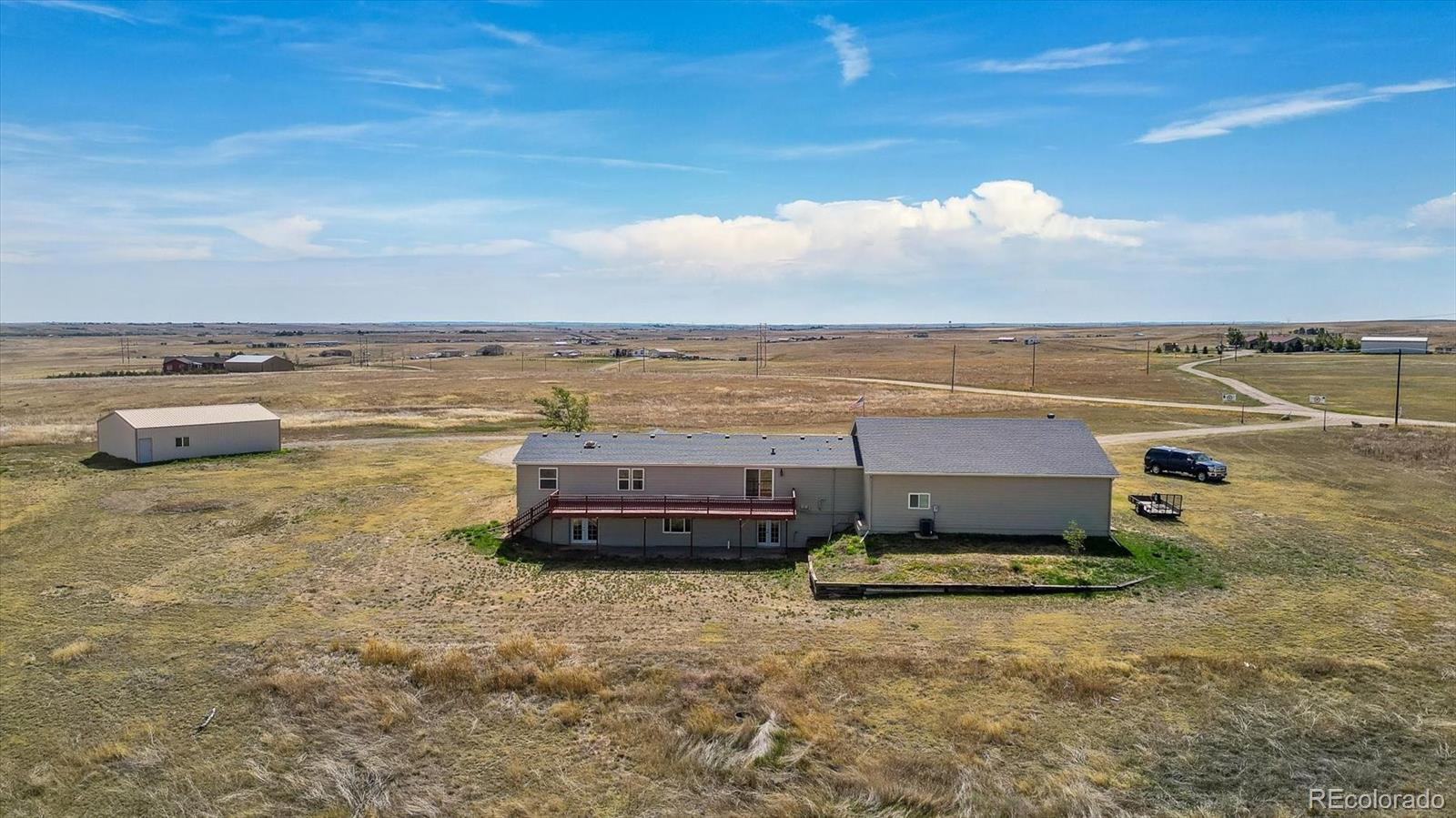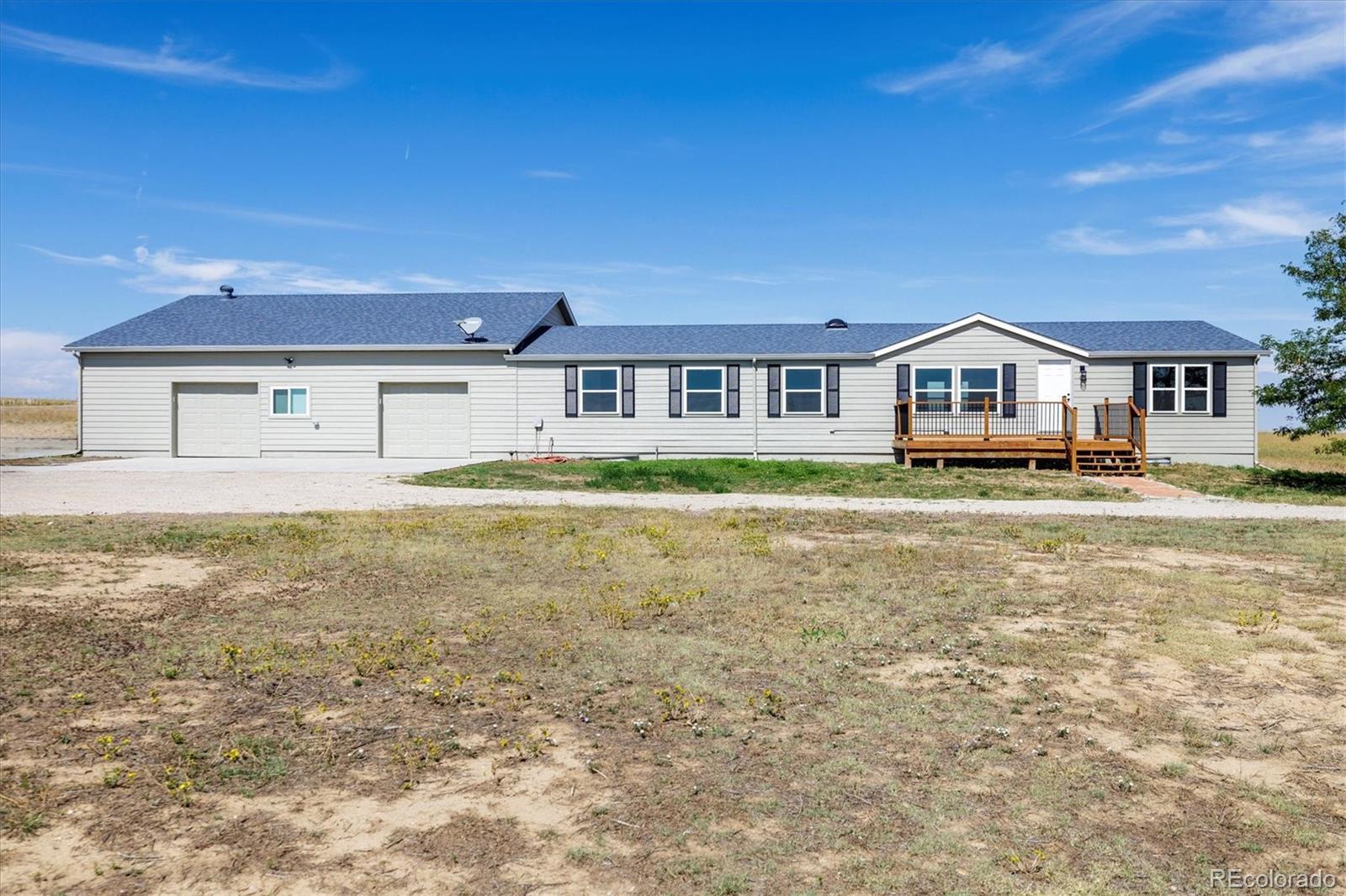 SELLER IS OFFERING $20,000 IN CONCESSIONS! Fully renovated and ready to impress! This beautiful country home on 35 acres offers quick access to the city — just 30 minutes to DIA and 40 minutes to downtown Denver for the commuter. Tucked away on a quiet road, yet minutes from the interstate and the growing town of Bennett. Inside, everything is brand new from floor to ceiling — just bring your furniture and move right in! The sellers have thoughtfully updated every detail of this 4-bedroom home, including all-new flooring, fresh paint, modern light fixtures, and new interior doors. The stunning kitchen is truly the heart of the home, featuring a large custom island, tons of storage, and brand new cabinetry — perfect for gathering and entertaining. You'll love the lighted walk-in pantry with built-in shelving. The spacious primary suite includes a luxurious ensuite with dual vanities, a designer tile shower, and walk-in closet. Downstairs, the finished basement offers endless possibilities — with multiple flexible spaces, the 4th bedroom, and room to add another bathroom. With two separate entrances, it’s ideal for multigenerational living, guest quarters, or a home office setup. And if your commute is to your home office, enjoy reliable high-speed fiber optic internet to keep you connected and productive. The exterior is just as updated: new siding, new gutters, new windows, and a new concrete front slab. The oversized attached garage is a dream space — 2,000 sq ft with built-in cabinets and expansive work areas. Whether you're a mechanic, hobbyist, car enthusiast, or small business owner needing space for tools and equipment, this garage offers room to work, create, and store with ease. A separate 1,200 sq ft outbuilding adds even more flexibility — perfect for a workshop, storage, or add some 4 legged friends. Call with questions or to schedule your showing today!