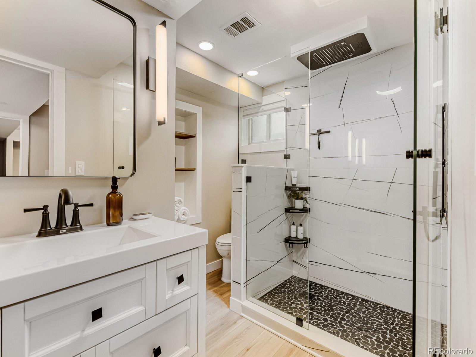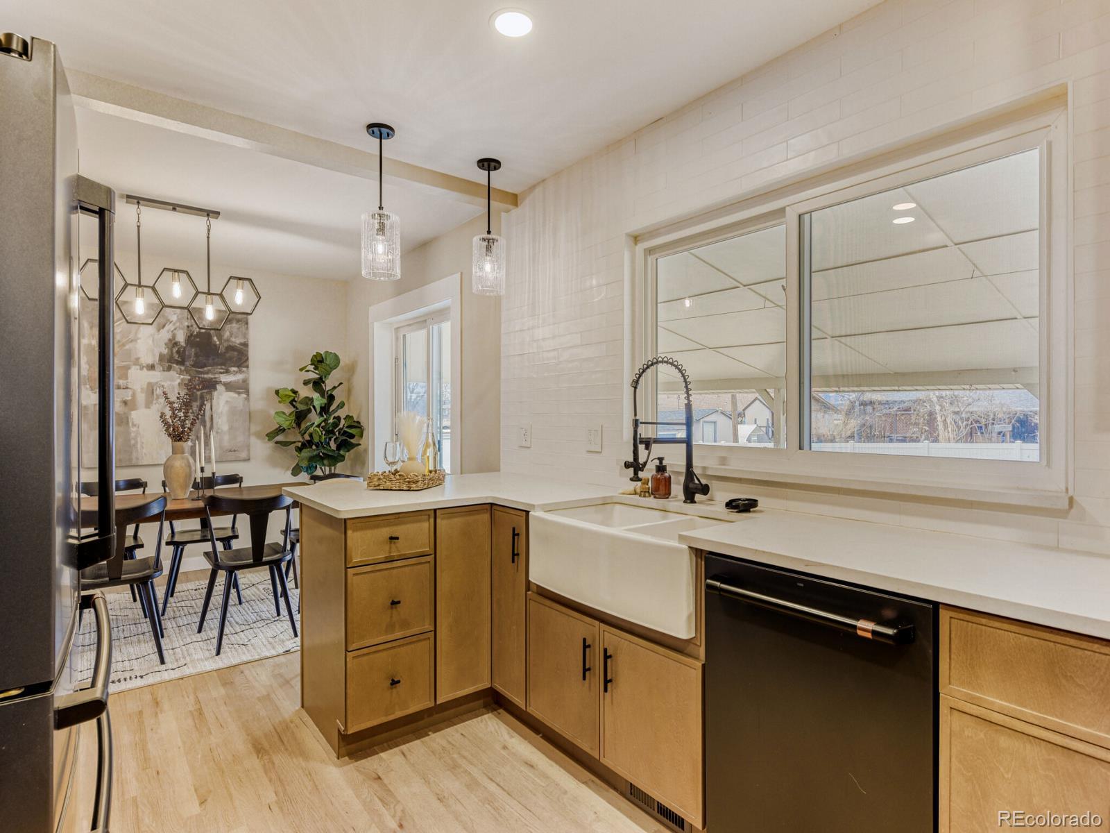 Turn-key, high-quality, and thoughtfully remodeled, this South Denver home features over $80,000 in intentional improvements designed for long-term living and entertaining. Original hardwood floors have been professionally refinished, setting the tone as you move into a completely reimagined kitchen where more than $50,000 was invested. The kitchen features new cabinetry, countertops, and approximately $35,000 in custom Cafe appliances that are just over one year old and remain under warranty. Designed with hosting in mind, the space includes a built-in cup washer at the sink, an oversized sliding window above the sink that opens to the covered patio for easy indoor-outdoor entertaining, and a sliding glass door that flows seamlessly to the covered back patio off the kitchen and dining area and out to your over-sized .22 acre lot with a spacious yard with its own sandpit and green house that comes included! The fully finished basement expands the livable space with a large additional living room, a laundry room, a fully remodeled full bathroom, and two spacious legal bedrooms with closets and oversized egress windows, making it ideal for guests, work-from-home space, or multi-generational living. Major behind-the-scenes upgrades provide peace of mind, including a new roof installed in 2022, ALL newer windows, an HVAC system less than five years old, brand new fencing around the backyard, front/back yard sprinkler system, PEX plumbing, full home re-insulation to keep the home warm in the winter and cool in the summer, and custom dual-function window coverings on every window that allow you to choose between a light sun-shade or black out. The garage is EV-ready with 220V service and includes a $15,000 sauna purchased just one year ago, creating a private wellness retreat at home. With the heavy lifting already done, this home offers quality upgrades, intentional design, and spaces built for real life, real gatherings, and long-term comfort.