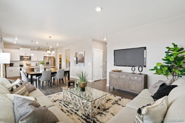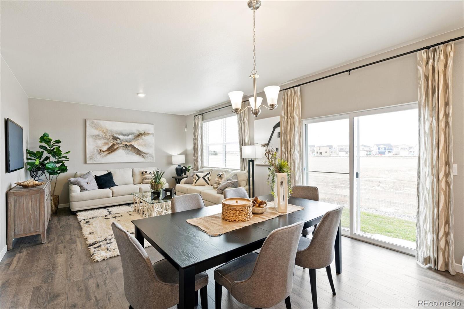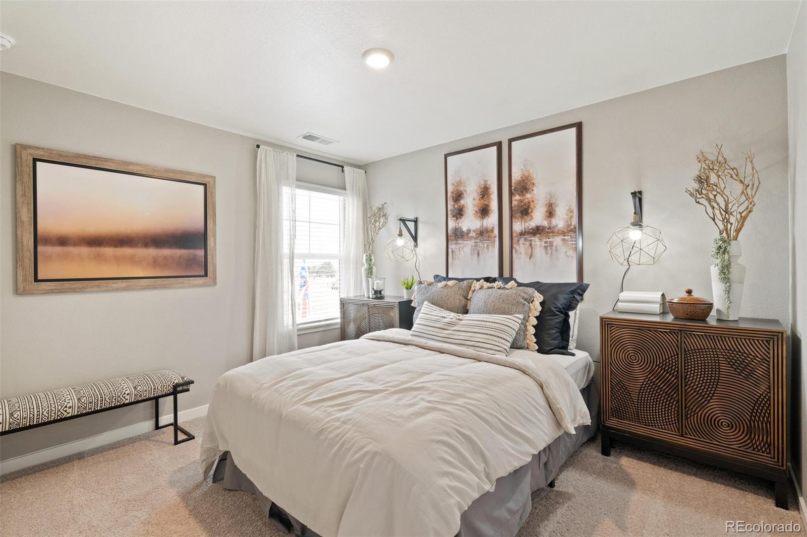 This home features 5 bedrooms, 3.5 baths, 3 car garage, and 2,627 sq. ft. This home has a finished basement and backs to open space! As you walk into this new home, you will see the main level flex space, followed by a powder bath. As you continue through the hallway you will pass the stairs and enter the open concept great room featuring a large living area. The kitchen provides plenty of space with a walk-in pantry and expansive kitchen island. Flowing from the kitchen is the dining nook, with access to the backyard. Upstairs you will find four spacious bedrooms, two bathrooms, walk-in closets, walk-in laundry room, a linen closet and spacious hallways. The primary bedroom includes an ensuite bathroom, with a double vanity sink, a separate toilet space, and an expansive walk-in closet with added storage space. Home additionally features tankless water heaters, active radon system, blinds, and Smart Home Tech with remote access capabilities—all in a location backdropped by water and mountain views. The Vantage neighborhood includes a unique set of features and amenities such as TPC Colorado privileges including use of their world-class Fitness Center, Resort Style Pool with swim-up bar and hot tub, and restaurants. Use of Vantage Pool, Splashpad, Grilling Area, Playground and 2 Dog Parks in the 5-acre, on-site complex are also included in the HOA. ***Estimated Delivery Date: February. Photos are representative and not of actual property***