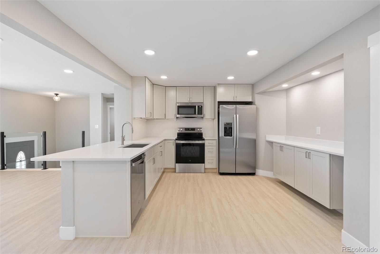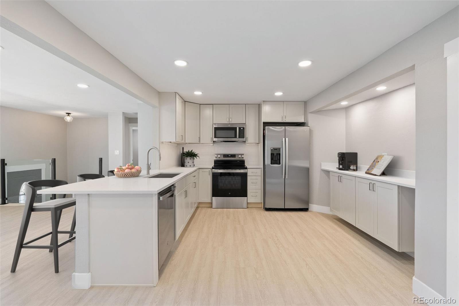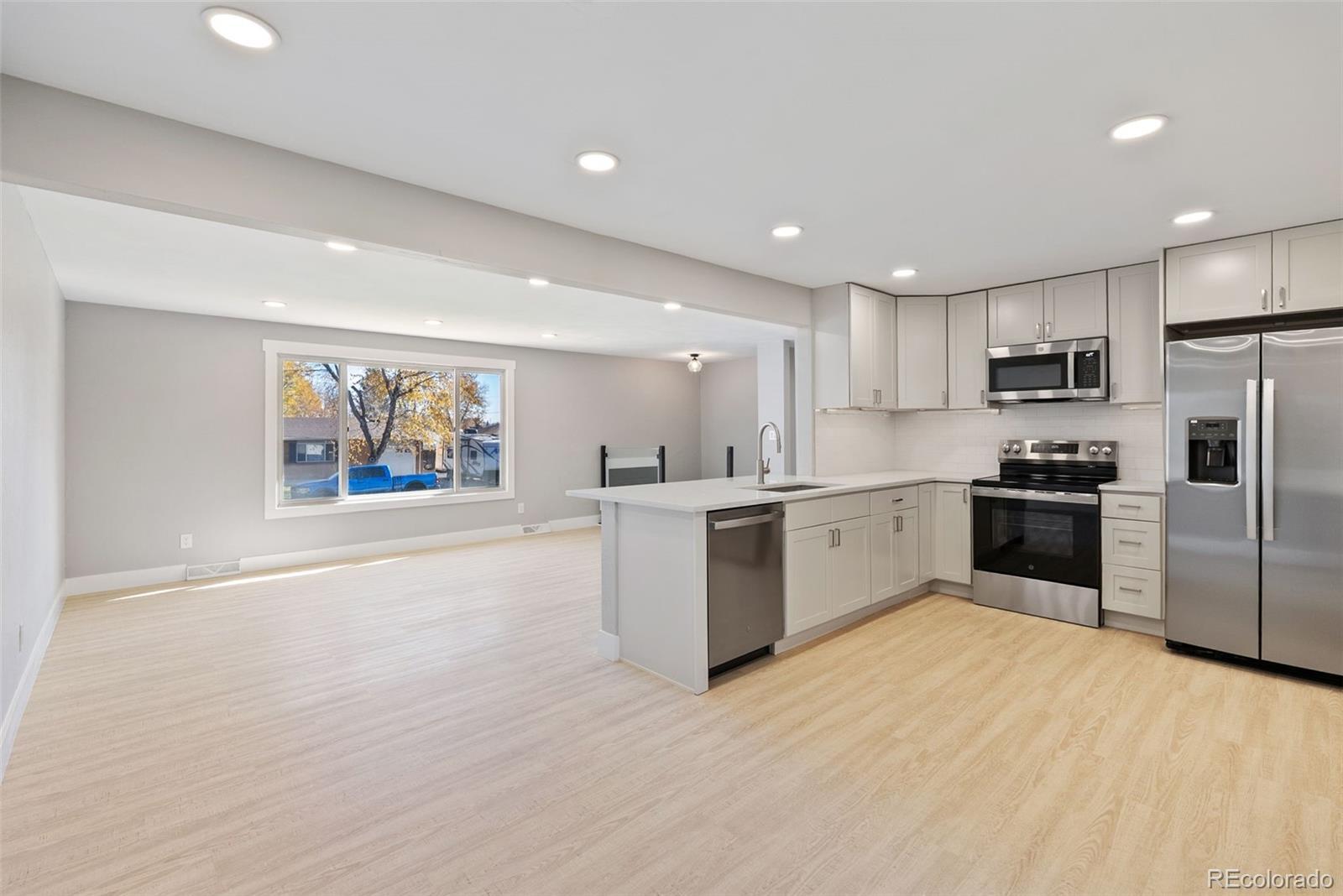 Welcome to this beautifully refreshed home in the highly sought-after Far Horizons community of Arvada. Every detail has been thoughtfully updated from top to bottom, creating a perfect blend of modern comfort and timeless style. Step inside to find hand-textured walls, soft-close cabinetry, quartz countertops, and new stainless steel appliances that make the kitchen both functional and elegant. Dimmer lighting allows you to set the perfect ambiance, while the inviting four-season porch offers extra space to relax or entertain. In the family room, a cozy fireplace serves as a warm centerpiece—perfect for gathering on cool Colorado evenings. Built-in bookcases add both charm and functionality, enhancing the home’s spacious and thoughtfully designed layout. Outside, enjoy a freshly poured concrete driveway, a brand-new fence, and a high-producing apple tree that adds character to the backyard. A convenient shed provides extra storage for your tools or outdoor gear. With no HOA, you have the freedom to truly make this property your own. Far Horizons is a welcoming community ideally located near parks, trails, and schools, providing an easygoing neighborhood feel while still being close to everything Arvada has to offer. Commuters will appreciate the quick access to Highway 36 and the I-25 corridor, making trips to Denver or Boulder a breeze. Nearby, a brand-new Trader Joe’s brings added convenience to your grocery runs, along with a variety of shopping, dining, and entertainment options that showcase Arvada’s small-town charm and community spirit. Completely refreshed from head to toe, this home is ready for its next chapter—offering comfort, convenience, and connection in one of Arvada’s most desirable areas.