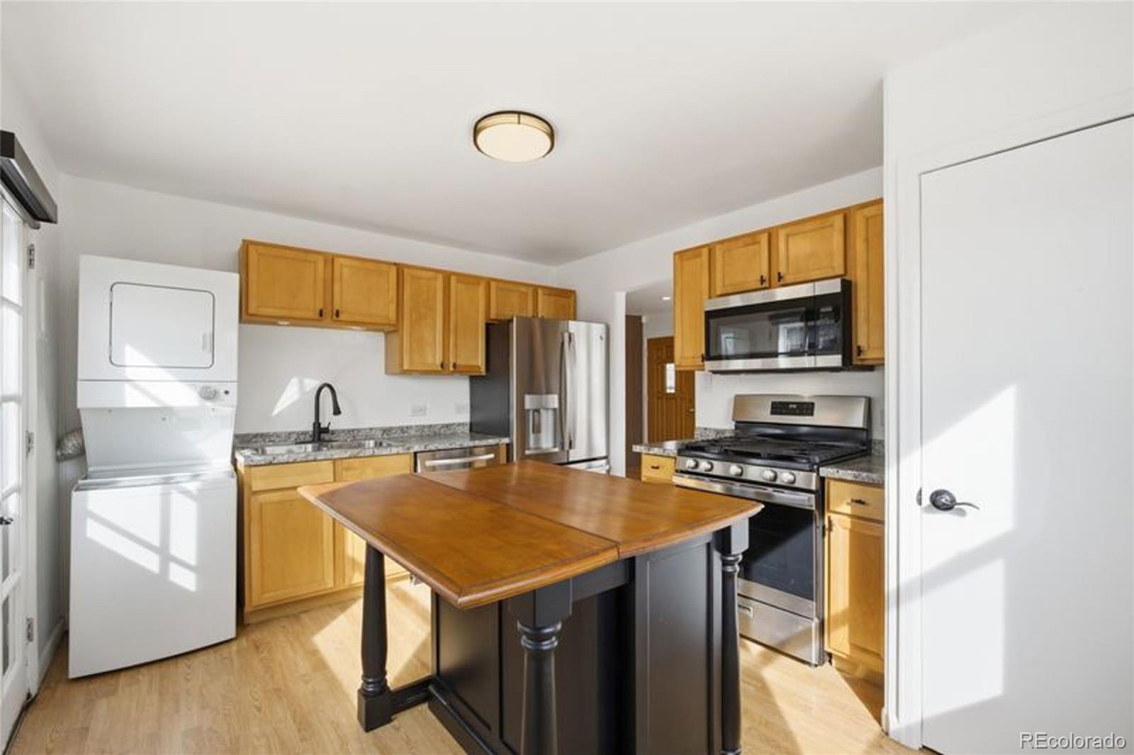 Charming and beautifully updated 2-bedroom, 1-bath home located on a spacious corner lot in a prime Denver location. This move-in ready property features a 2-car detached garage plus an RV parking, offering exceptional flexibility and convenience. Inside, you’ll find thoughtful modern updates throughout, including a stylishly renovated bathroom and a bright kitchen complete with a unique island, stainless steel appliances, warm wood cabinetry, and abundant natural light. Sunlight pours into the living spaces, and the spacious yard is ideal for weekend barbecues, gardening, or simply unwinding at home. The generous corner lot provides excellent outdoor space with endless potential. Conveniently located just minutes from downtown Denver with easy access to shopping, schools, dining, and major highways, this home offers the perfect blend of comfort, functionality, and location.