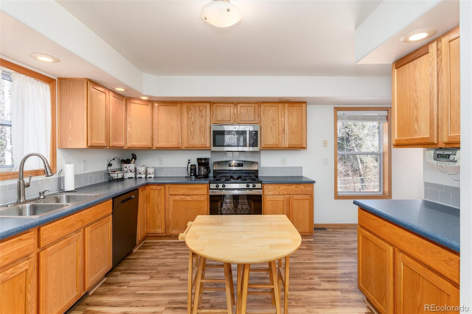 Beautiful Raised Ranch Home with a Walk-out Basement through the garage! Built in 2004! Located on a lg. private corner lot in Lakewood with mature landscaping and offering many great features. With a total of 4 Bedrooms and 3 Baths, easy to care for laminate flooring, lg. kitchen and open floor plan is light and bright and in move-in condition. The kitchen has brand new stainless appliances, lots of cabinets and plenty of counterspace with an adjoining eat-in dining nook area. The light and bright open floor plan features the adjoining living and dining rooms. Dining Room has glass sliding doors to the deck and backyard. The primary bedroom is large enough for a king size bed; has a walk-in closet and ensuite bathroom with jacuzzi tub. The basement has a walk-out feature through the garage; laundry; storage and 4th bedroom with egress window, walk-in closet and 3/4 bathroom. The basement also has a bonus/family room that offers you many options and has 2 garden level windows. Enjoy a park-like backyard and relax on the deck - you'll love the privacy this lot offers. The laundry is located in the utility room and shared storage. Possible additional car parking, RV, Trailer, Boat, etc. The home is just blocks away from Light Rail and easy commuting on 6th Avenue to downtown. See this home today, you'll be glad you did.