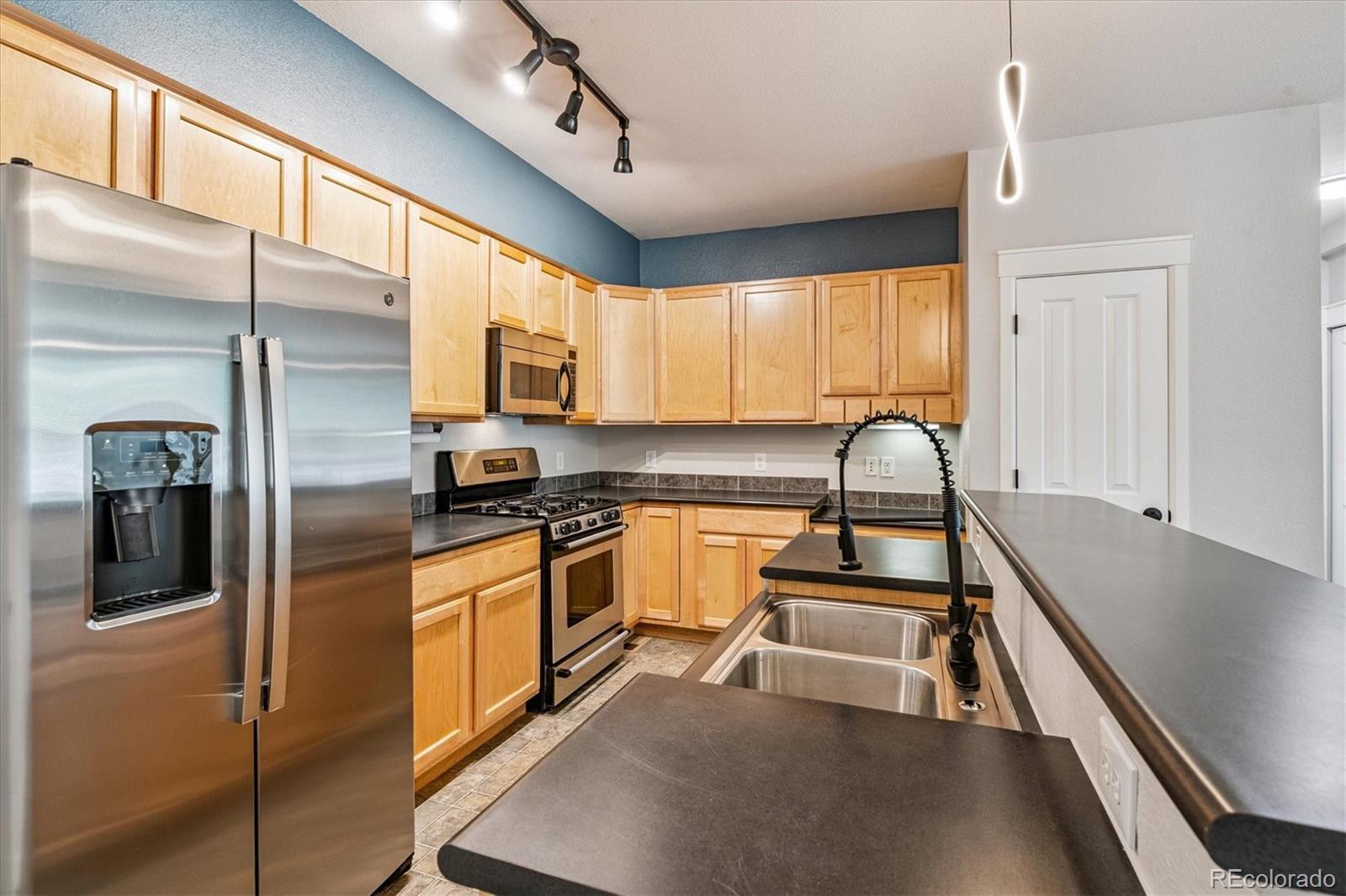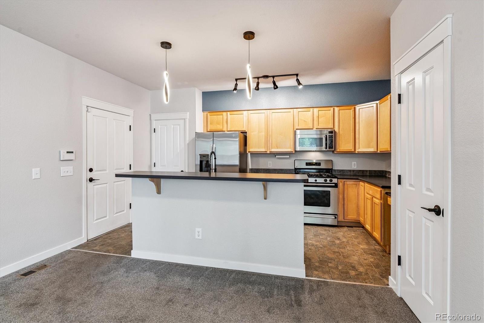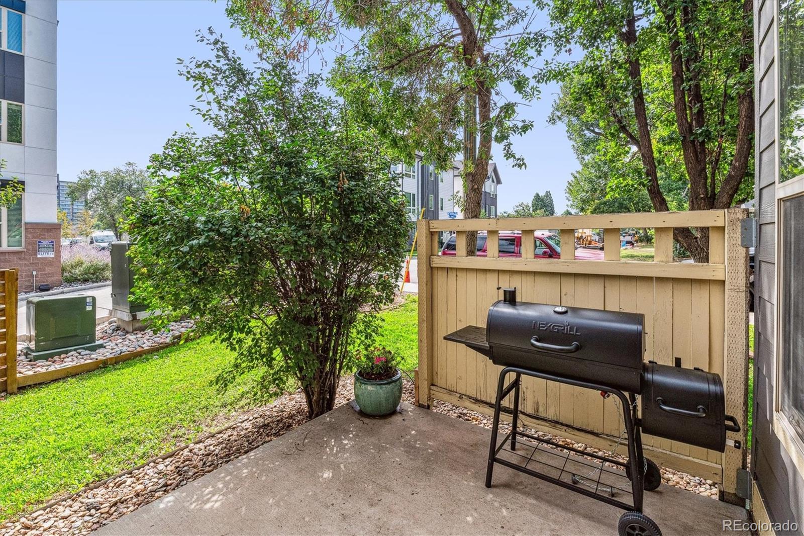 **Bright & Spacious 1-Bedroom Retreat Near Sloan's Lake!** Welcome home to this beautifully updated, move-in-ready 1-bedroom, 1-bathroom condo offering 942 square feet of single-level living—no stairs! Enjoy soaring 9-foot ceilings, new carpet, fresh paint, new baseboard trim, updated door hardware, and a stylish new ceiling fan with remote. The open layout is flooded with natural light from large windows, creating a warm and inviting atmosphere. The oversized primary closet offers abundant storage, complemented by additional built-ins, a dedicated pantry, and garage storage bins in the attached 1-car garage. Step out onto your private patio to relax or entertain—your new grill/smoker is included! Convenient features like electronic keypad entry and proximity to bus and light rail make this home ideal for urban living. Just minutes from Sloan's Lake and all the trendy coffee shops, restaurants, and boutiques on Sheridan Blvd. Don't miss this rare opportunity to own a modern, low-maintenance home in a vibrant and walkable neighborhood!
