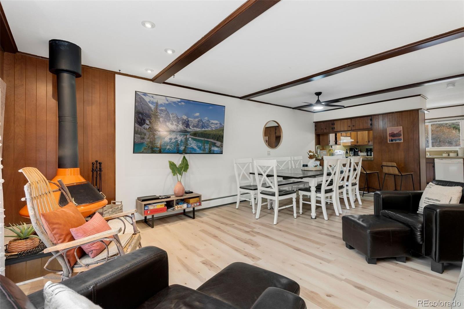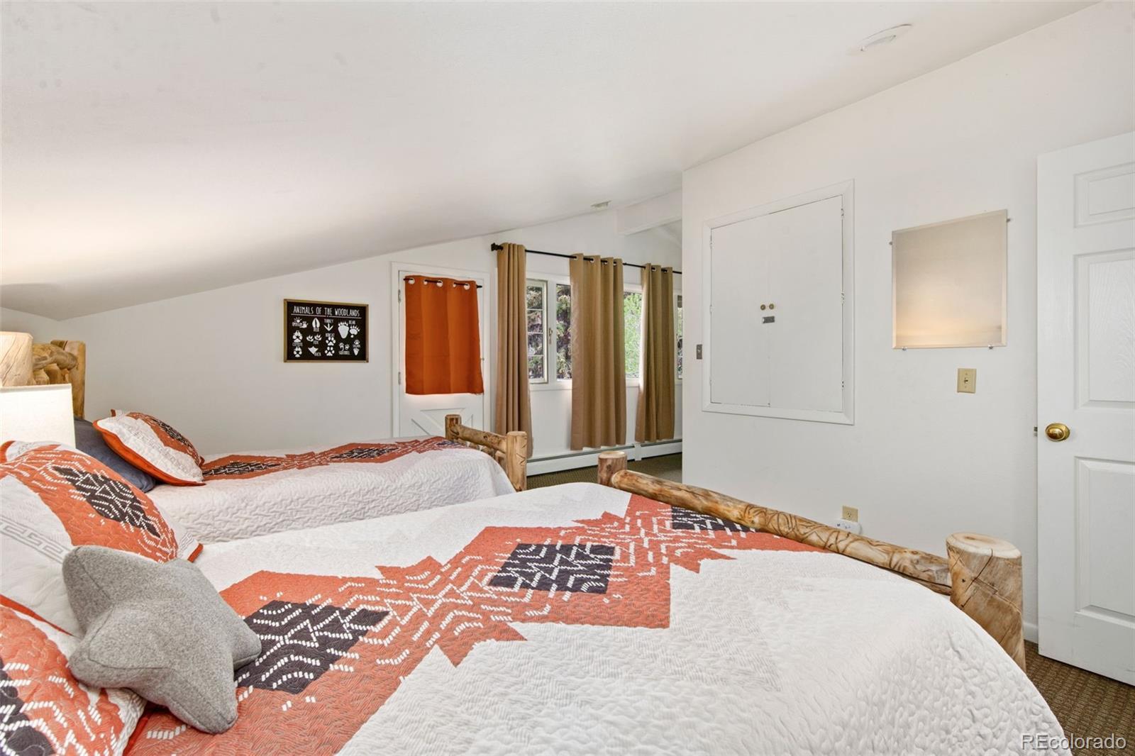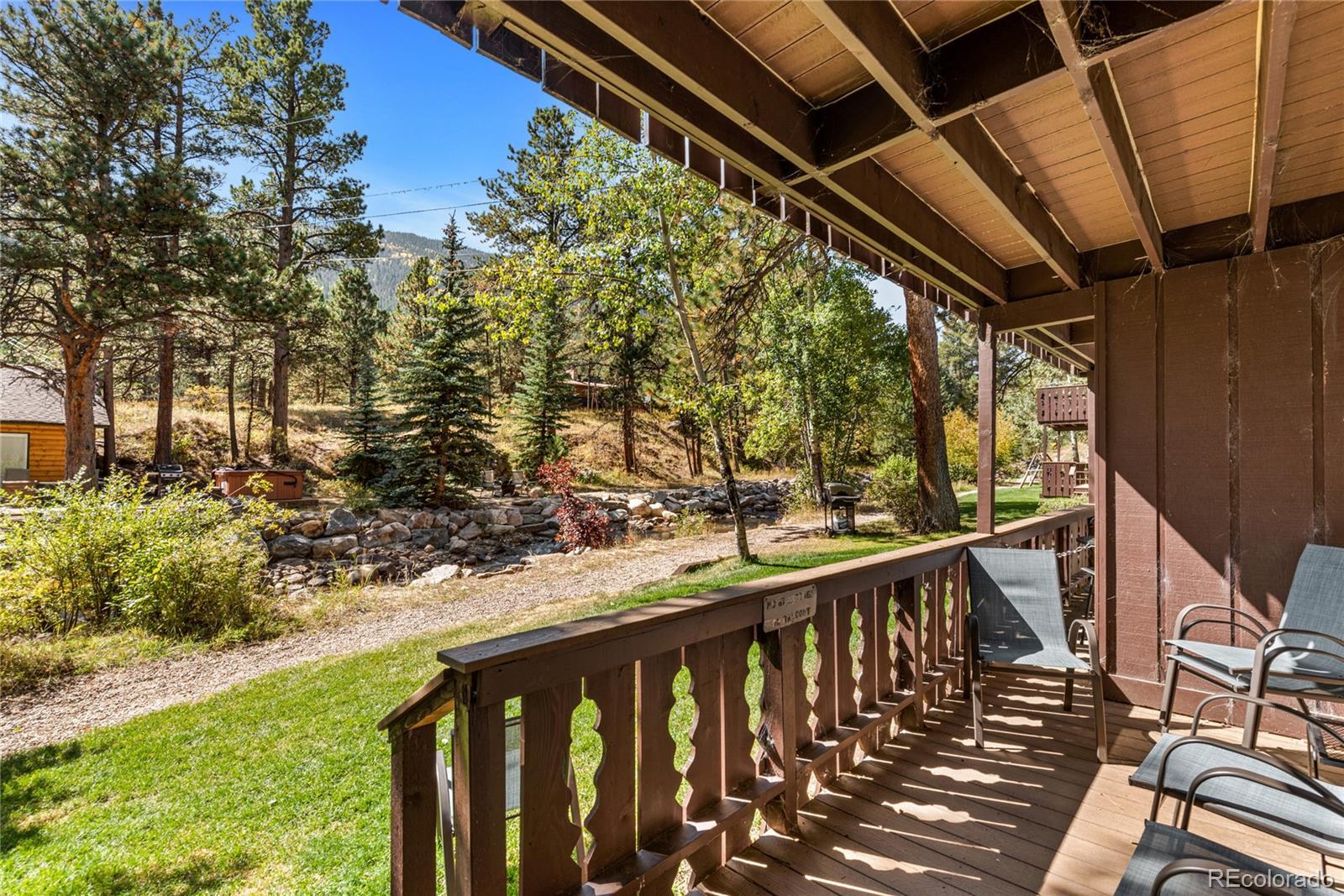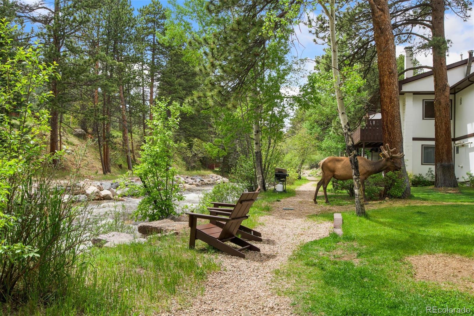 Incredible investment opportunity with $85,000 in gross revenue over the past 12 months and a transferable short-term rental license! Even better, you can self-manage to maximize profits-a huge bonus in Estes Park-or choose to use the convenient onsite management.This is the largest unit in the complex with 4 bedrooms, 2 baths, and room to sleep 10 guests. Step out onto any of the four private decks-three overlooking the peaceful river-and take in the unmatched beauty of Estes Park and the Rocky Mountains. Elk are often in the front yard, creating a true Colorado mountain experience, yet you're only one mile from the entrance to Rocky Mountain National Park and just five minutes to downtown.The property features a modern design with a recently updated kitchen, new LVP flooring, and a cozy fireplace. Sold fully furnished, it's completely turn-key for you and your guests. The HOA includes a pool, cable, internet, water, sewer, exterior maintenance, common areas, snow removal and trash for your convenience. Whether you're looking for a high-performing short-term rental or a personal mountain oasis that pays for itself, this one is not to be missed! Agent owned.