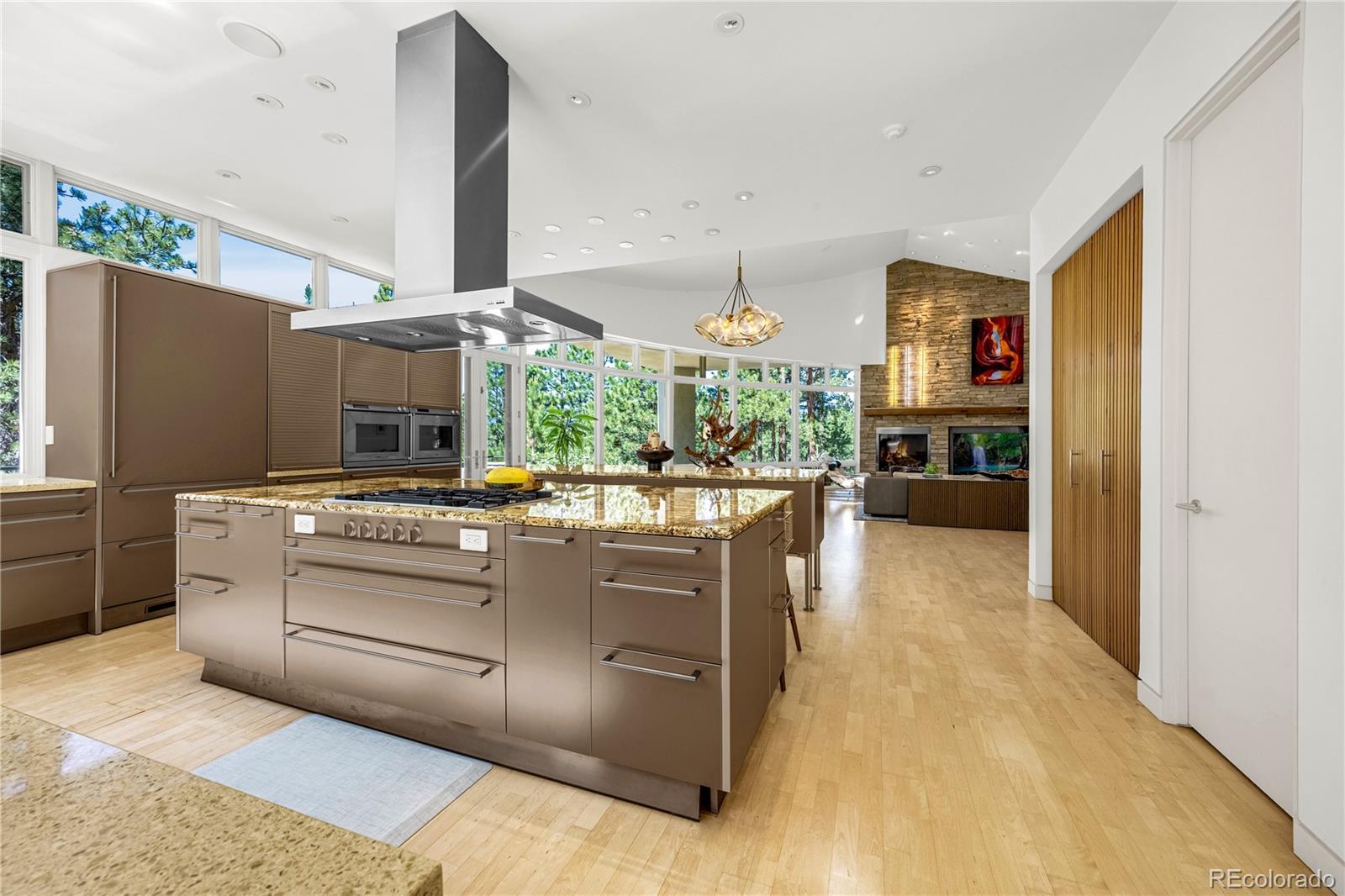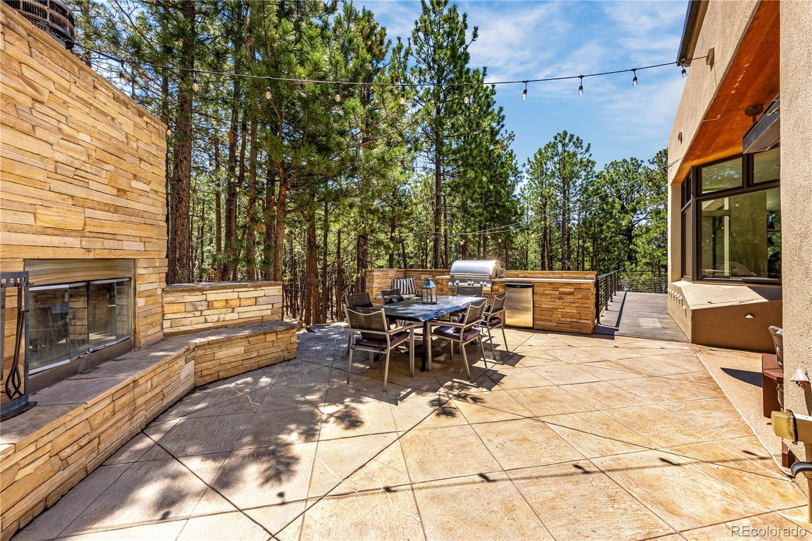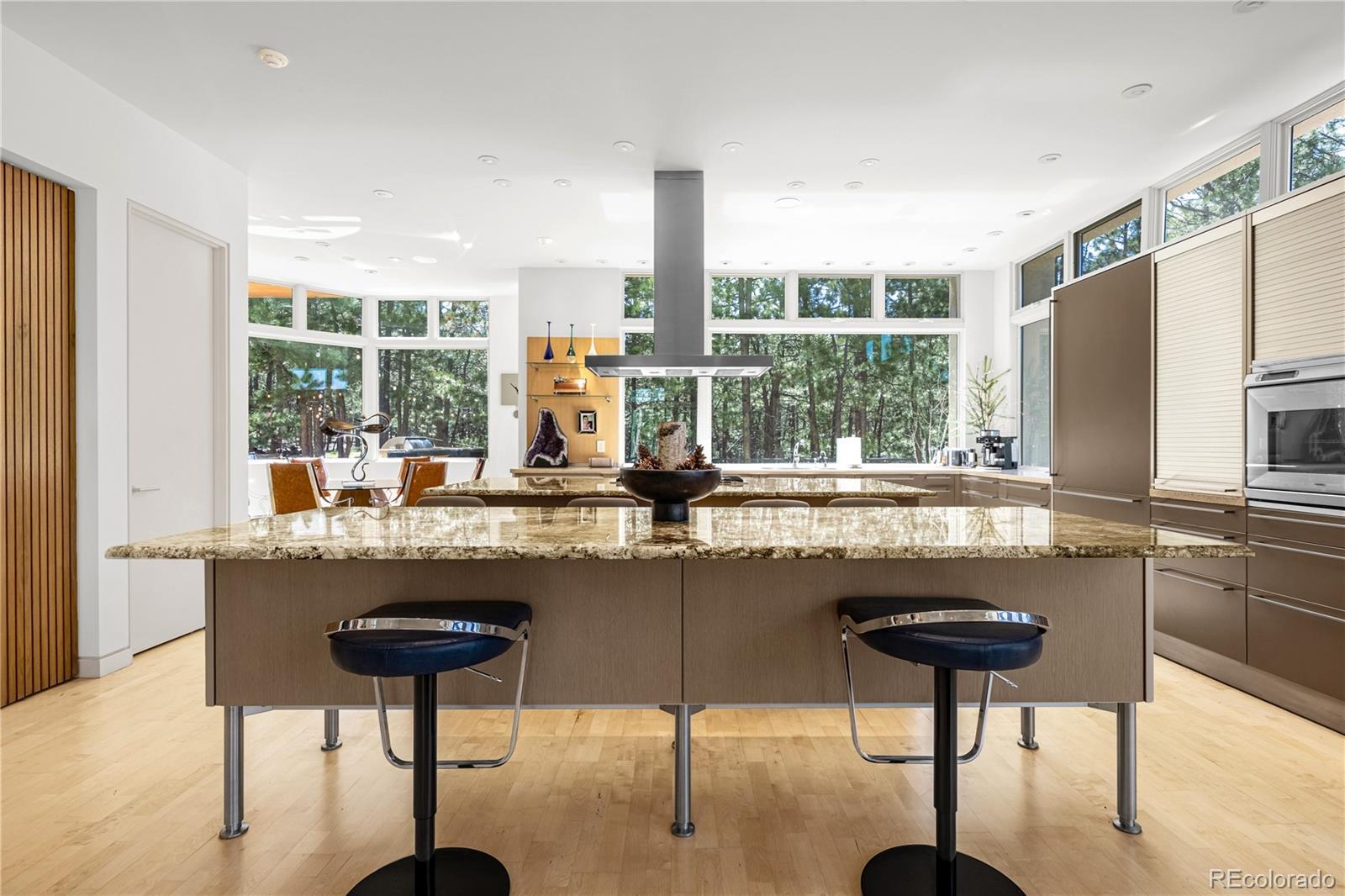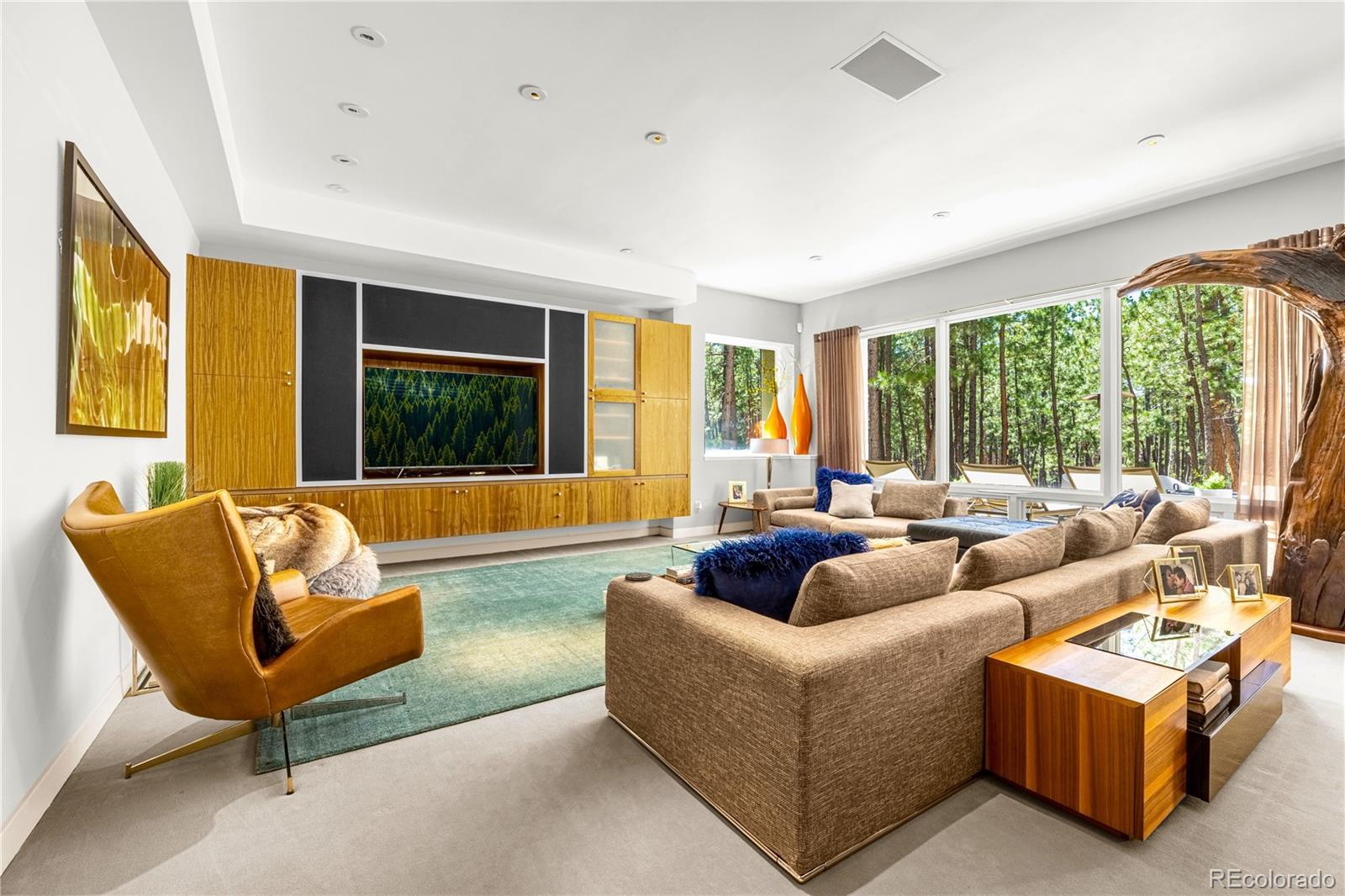 Rare Opportunity: One-of-a-Kind Colorado Contemporary Masterpiece. Modern. Engineered. Irreplaceable. This isn’t just a house. It’s a statement. A fully engineered, design-forward Colorado Contemporary crafted for those who refuse to settle for builder-grade and crave something truly exceptional. Only one lot like this. Only one home like this. And once it’s gone, it’s gone. This award-winning architectural triumph is set on 2.5 acres of forested land with unobstructed views of Pikes Peak. Designed by acclaimed architect Sears Barrett, the home is a living sculpture of light, glass, and precision. A soaring 50-foot wall of windows rises to cathedral ceilings, perfectly framing the pine canopy and Colorado sky. Crafted for those who demand preeminence, privacy, and provenance. This is a home that doesn’t chase trends...it sets them. The main level features a dual-island chef’s kitchen with German-designed Bulthaup cabinetry, Silestone and granite counters, and a world-class appliance suite: Sub-Zero, Gaggenau, Miele, Franke, and Dornbracht. Skylights and window walls flood the interior with natural light, while the custom fireplace anchors a great room that flows seamlessly to a wraparound terrace with an outdoor hearth. The entire upper level is a private owner’s retreat with two sitting areas, a see-through fireplace, spa-inspired five-piece bath with French beige limestone, and commanding views. The walk-out lower level includes a large family room, gym, and three additional en-suite bedrooms. Outdoor living spans all levels with a gourmet kitchen, multiple patios, and hot tub-ready wiring. Smart features include Lutron lighting, integrated sound, security, radiant heat, passive solar, and a heated garage with epoxy floors and custom cabinets. Capturing this property is not just an intelligent purchase. It is a privilege.