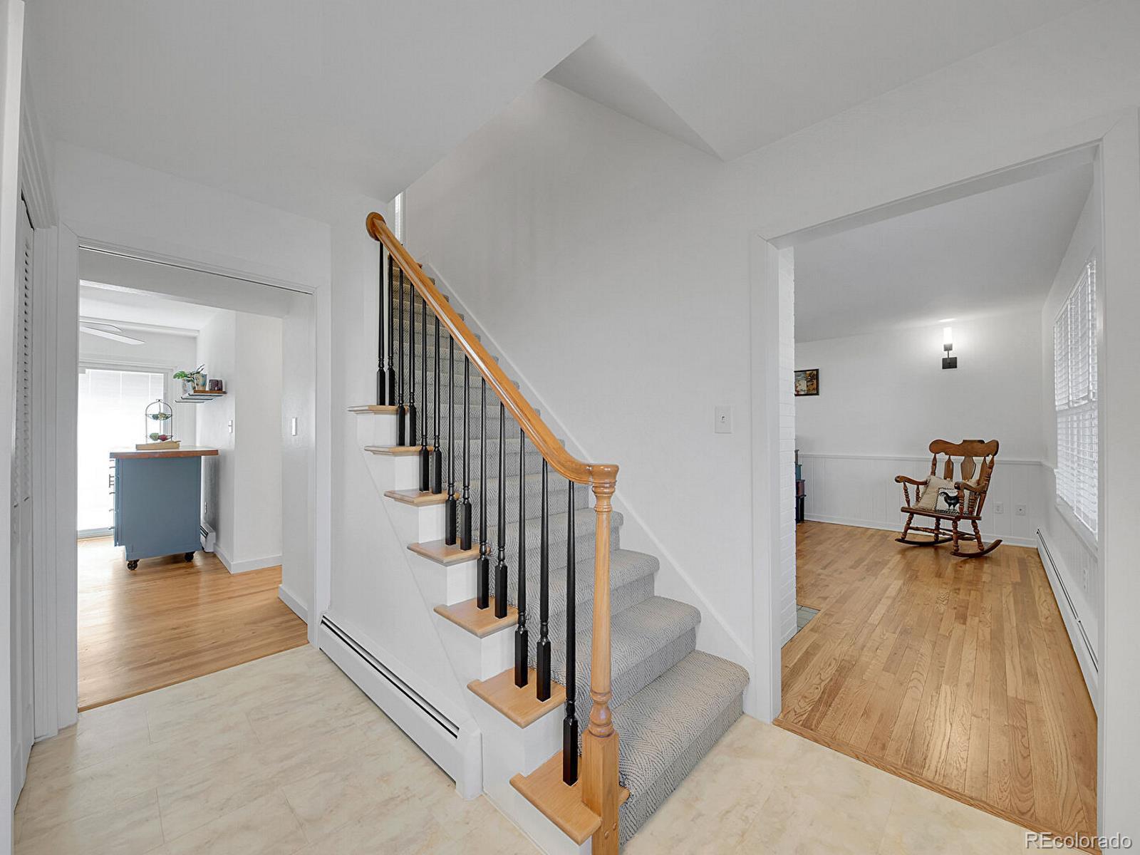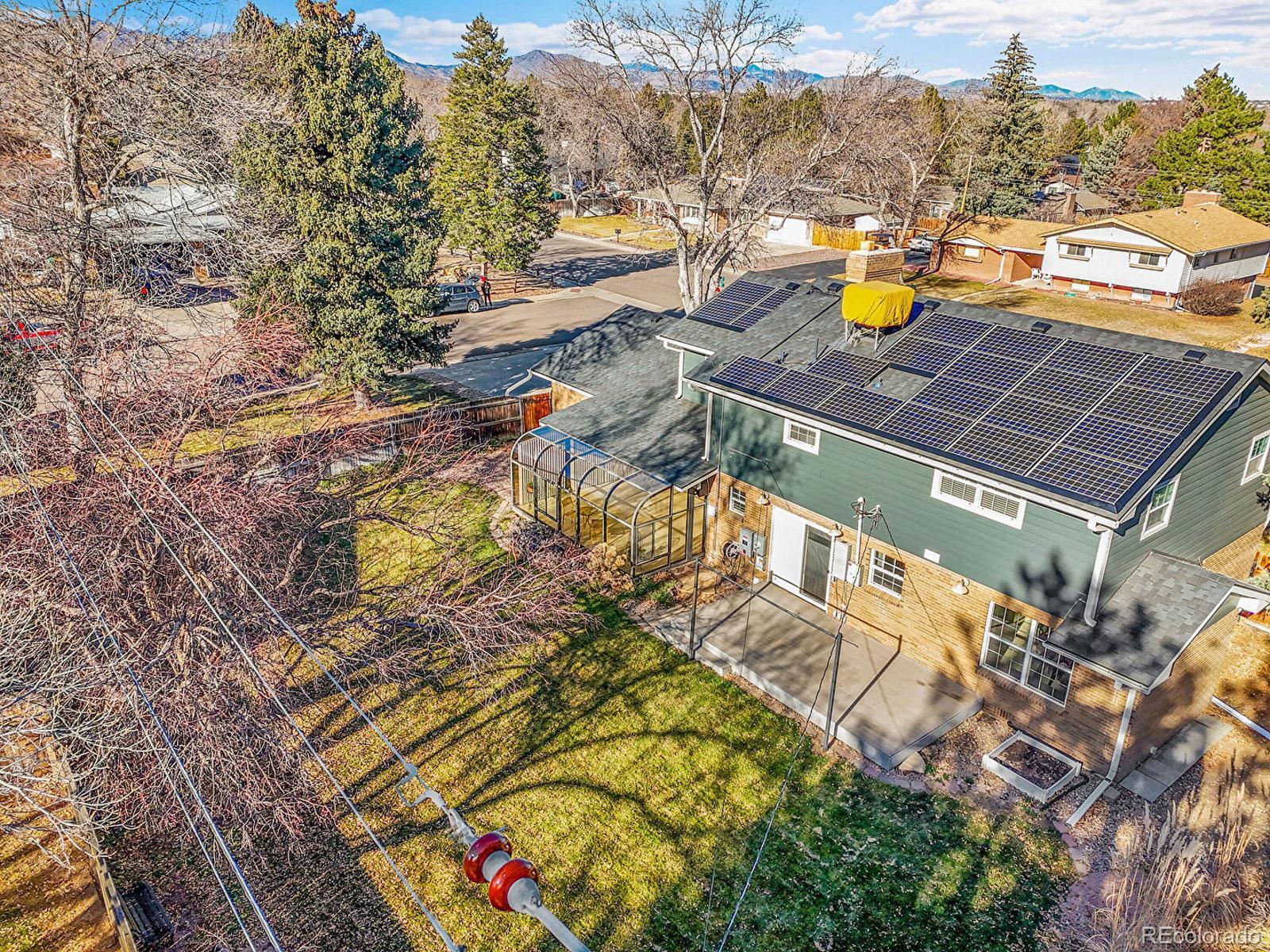This Beautifully Updated Home is the one you've been waiting for! Low maintenance with Hardie Board and brick exterior, concrete patio and a composite deck. Great location in prestigious quiet Columbine Knolls area with outstanding schools! Open floor plan flows with lots of natural light! Walk into Entryway with new luxury vinyl plank flooring and the original stunning refinished hardwoods. Impressive all around for entertaining your guests with the amazing, updated kitchen including imported granite, gas cooktop, GE Profile stainless steel smart appliances, double oven w/air fryer, reverse osmosis filtered water in refrigerator dispenser, rolling custom butcher block island for that easy chef inspired workspace! Serve your culinary creations proudly in the wonderful Formal Dining Room then step into the spacious comfortable Living Room for an evening of relaxation! Or, cozy up in the Family Room and enjoy the warmth of the fireplace & games! Step out into the Sunroom the next morning to enjoy your morning coffee and surround yourself with your favorite plants! Upstairs will embrace you with a restful inviting Primary Suite & bath plus 3 more bedrooms with a double sink full bath. Many upgrades throughout the home to include new high-capacity Breezair evaporative cooler keeping you cool in the summer, fresh new paint throughout, high efficiency windows, new carpet on the stairs, dual level heating, interior & exterior lighting, fully paid solar, Ring cameras, a sewer line with epoxy liner, full sprinkler system, & more! Lovely mature landscaped private yard front & back for your maximum enjoyment with front porch, backyard patio & deck with canvas sunshades, raised garden beds with wonderful mountain views! Huge 2 car garage with workbench & plenty of storage space! The active voluntary HOA provides neighborhood events for all residents to enjoy bringing the community together. Convenient to shopping, community pools, parks, restaurants, entertainment!
