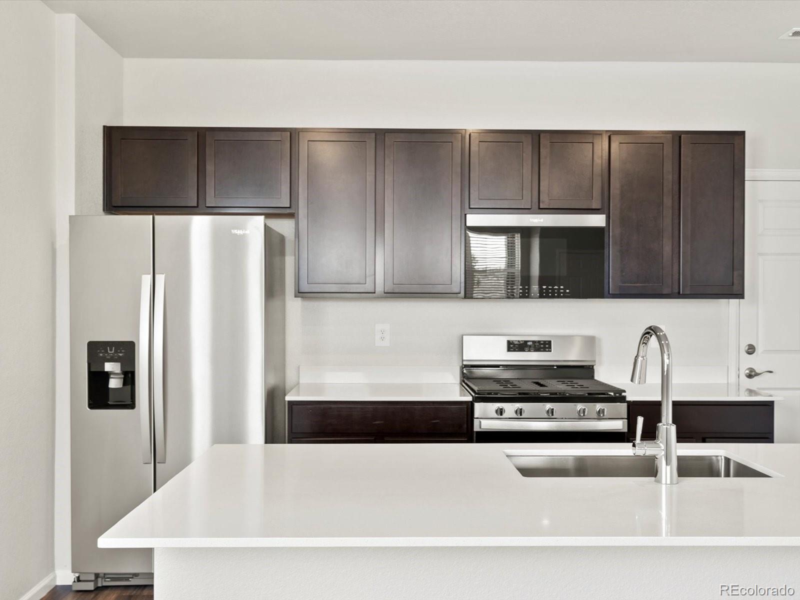 Open concept kitchen with quartz countertops and slate cabinets! The Woodland is a stylish end-unit townhome featuring an open-concept main floor and a welcoming covered front porch. Upstairs offers a private primary suite with walk-in closet, plus two additional bedrooms and a versatile landing space. With 2.5 baths and a two-bay garage, this design blends comfort and functionality. The Meritage Home difference includes spray-foam insulation, advanced air filtration for year-round comfort and healthier air, and durable cementitious siding known for its strength, fire-resistance, and long-lasting performance. A Whirlpool appliance package, and full home blinds are also included for move-in convenience. Welcome home where every detail is built for comfort, efficiency, and LIFE . BUILT. BETTER. Poudre Heights in Windsor offers small-town charm with modern convenience. Enjoy nearby parks, shopping, and dining at Centerra and Windsor Town Center—all just minutes away. *This home qualifies for special incentives through builder preferred lender for a limited time. Terms and conditions apply. See sales counselor for details!