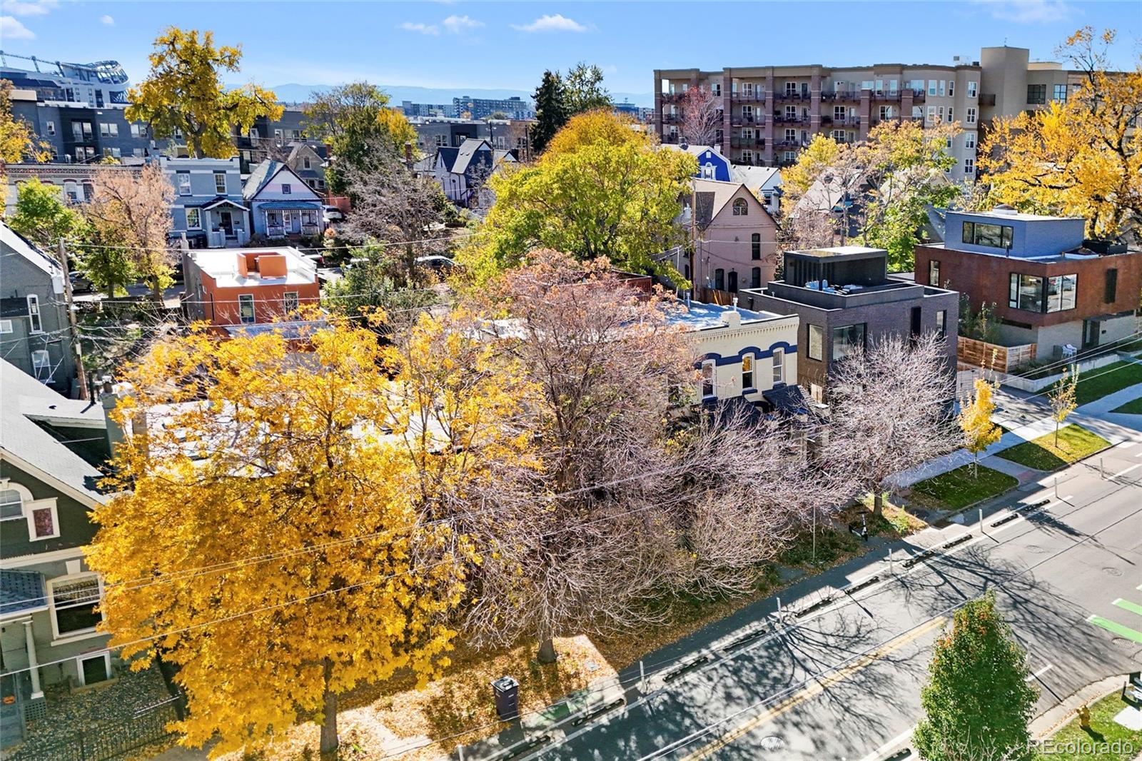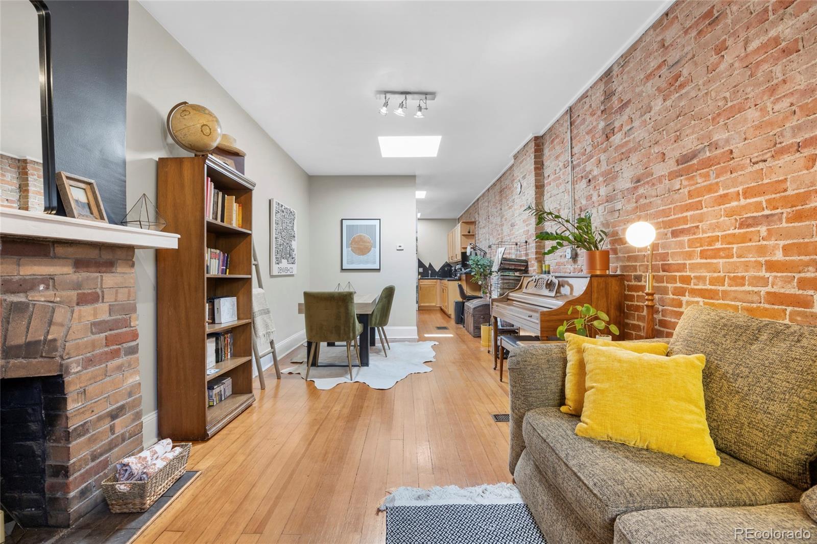 Step into the charm of Denver’s past without sacrificing modern comfort in this beautifully preserved 1900 row home. Tucked into one of the city’s most walkable neighborhoods, this one-bedroom, one-bath gem blends historic character with thoughtful updates—and all without the burden of an HOA. Inside, high ceilings and exposed brick set a warm, inviting tone, while large skylights fill the home with natural light. The decorative fireplace adds a picturesque touch, perfectly complemented by the original hardwood floors that bring warmth and authenticity to the space. Every corner feels rich with character yet comfortably livable. The spacious, modern kitchen is a true highlight, featuring ample counter space and a large breakfast bar that adds both function and flexibility. Beyond the kitchen, you’ll find the cozy bedroom and a versatile mudroom that opens to the private, fenced backyard—perfect for morning coffee, small gatherings, or a quiet retreat in the heart of the city. Below, the cellar offers plenty of storage space. Recent updates include a new roof (2023) and new washer and dryer (2023), providing peace of mind and modern convenience. The location is a dream for those who love city living. With a Walk Score of 87, Jefferson Park is just blocks away, along with local favorites like coffee shops, restaurants, and neighborhood bars. You’ll find everything from casual bites to boutique shopping and a nearby grocery store all within easy reach. And just down the street, you can explore some of Denver’s most iconic attractions—the Aquarium, Children’s Museum, Elitch Gardens, Mile High Stadium, Ball Arena, and REI. Perfect for a first-time buyer, minimalist, or anyone who appreciates historic architecture and a vibrant urban lifestyle, this home offers a rare opportunity to own a piece of Denver’s history in a location that truly has it all.