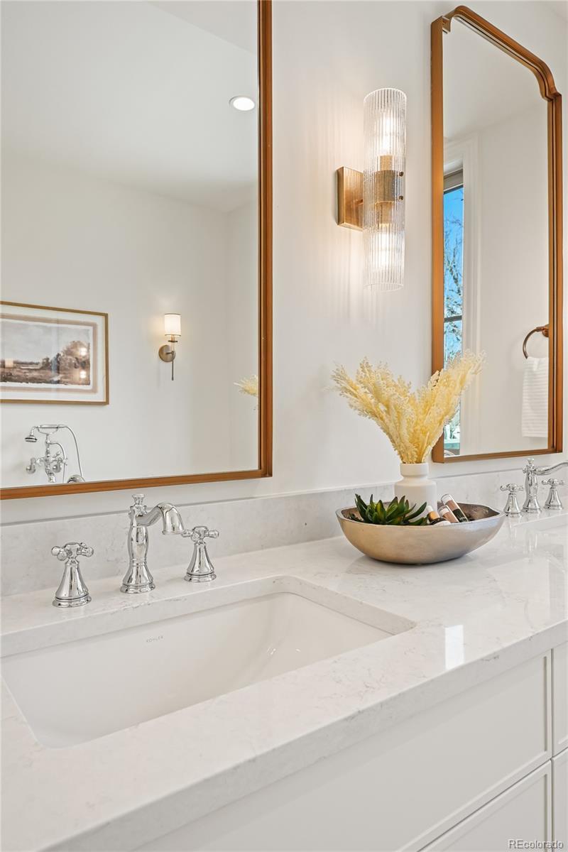 On the park! This stunning new home in Denver’s vibrant West Wash Park neighborhood offers unobstructed views of Washington Park and Grasmere Lake. Blending timeless architecture with modern luxury, the home welcomes you with a gracious entry and a private study featuring custom built-ins and striking glass warehouse-style doors. The elegant dining room opens to a private front patio overlooking the park and flows seamlessly into the gourmet kitchen, designed for both everyday living and entertaining. The kitchen features a 48” Thermador double-oven range, built-in refrigerator and freezer, dual dishwashers, a large walk-in pantry, and an oversized island with seating. The spacious living room is anchored by a fireplace and framed by two oversized French doors that fill the space with natural light and open to the beautifully landscaped, private backyard. A well-appointed mudroom with custom built-ins provides convenient access to the yard and oversized two-car garage. Upstairs, the luxurious primary suite features a spa-inspired five-piece bath with steam shower and soaking tub, along with an expansive custom walk-in closet. Two additional bedrooms, each with en-suite baths, and a conveniently located laundry room complete the upper level. The third-floor bonus room opens to a private rooftop deck with sweeping views of Washington Park and Grasmere Lake—an incredible space for relaxing or entertaining. The finished basement offers exceptional space for recreation with a large great room, wet bar, powder bath, two additional bedrooms—one currently used as a gym—and a full bath. Additional highlights include an oversized two-car garage with EV charger, full offset photovoltaic system, security system, and extensive storage. Ideally located near the shops and restaurants of South Pearl Street and South Gaylord Street, and minutes to Light Rail, Cherry Creek, and Downtown.