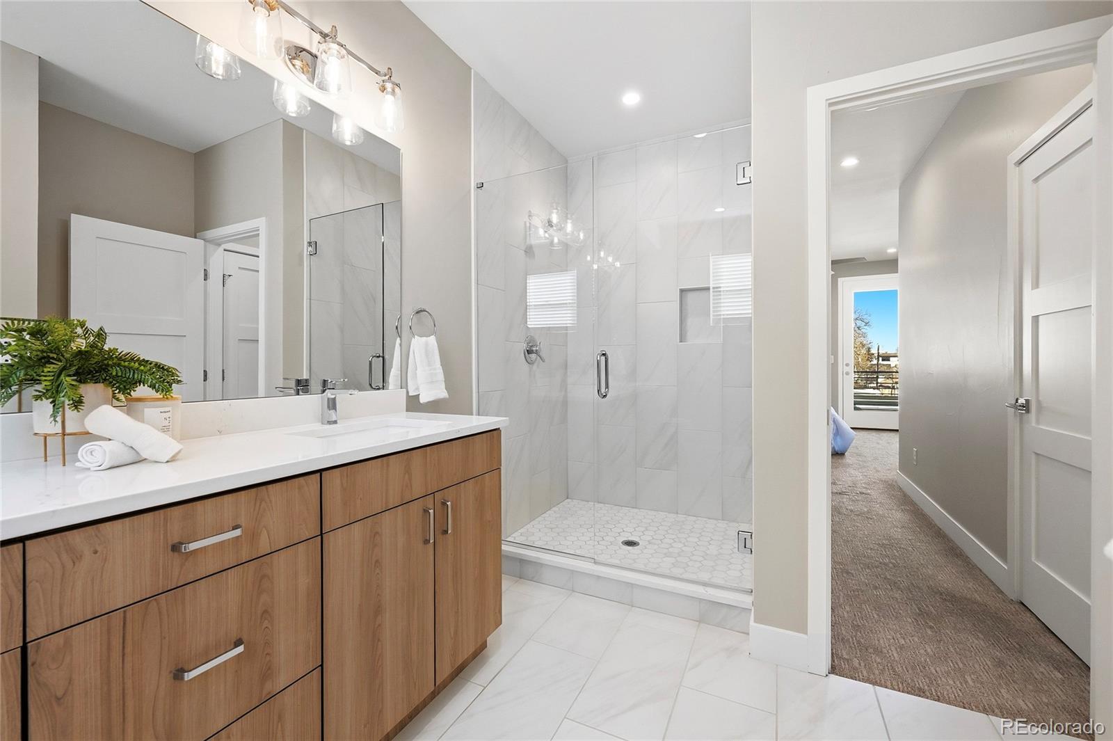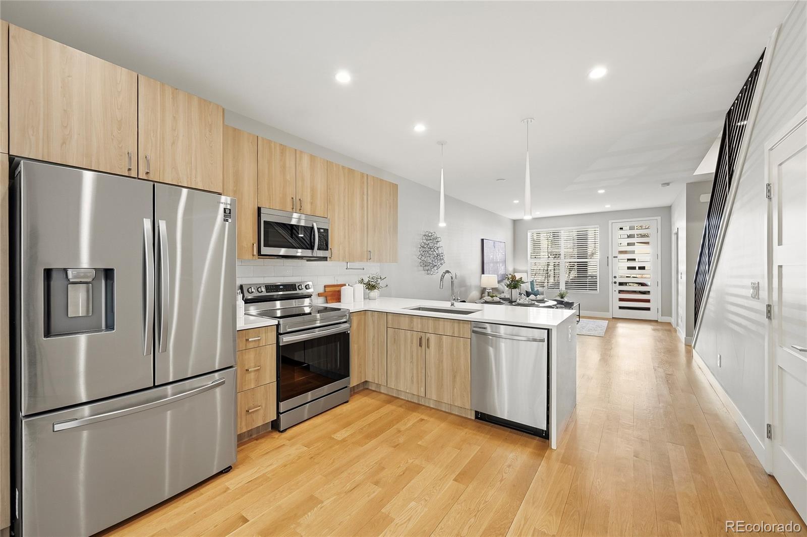 INCREDIBLE LOCATION + ROOFTOP DECK with STUNNING CITY AND MTN VIEWS! Experience modern city living at its best in this nearly brand new 3 story, 3 bedroom, 5 bath home located in one of Denver’s most sought-after neighborhoods: the vibrant West Colfax area near Sloan’s Lake. Inside, every detail has been carefully curated to create a home that’s as beautiful as it is functional. The gourmet kitchen features waterfall quartz countertops, high-end stainless appliances, tile backsplash, and sleek modern cabinetry. You’ll love the wide-plank hardwood floors, Anderson windows, custom wrought iron stair railings, and designer finishes throughout. Each bedroom offers its own beautifully designed bathroom, including two junior suites (one with a private deck) plus a luxurious primary suite with its own private outdoor space and large walk-in closet. The rooftop deck is built with durable, weather-resistant Trex-like material and includes a gas hookup, making it perfect for entertaining year-round. With no HOA, a private furnace, your own water meter, and a small backyard area, you’ll appreciate the independence and low maintenance lifestyle this home provides. The detached one-car garage offers extra room to add ceiling storage, if desired. All of this is just steps from Sloan’s Lake, local parks, fun restaurants and shops, the Sheridan Light Rail Station, and with easy access to downtown and the mountains!