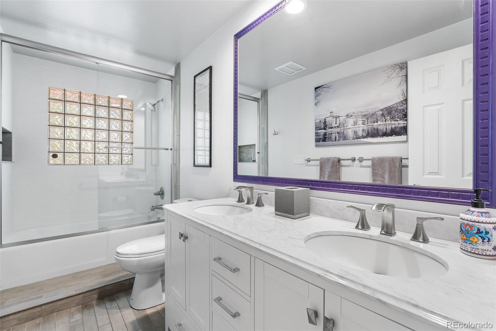 Discover luxury and comfort in the tranquil and exclusive Coventry community, a hidden gem in Littleton. This enclave of 202 custom-built residences has a manned gate, offering privacy, security and a welcoming entrance. This home sits on a professionally landscaped .34 acre lot with mature trees and lush foliage. Enter this charming home by way of an inviting walkway to a front porch made for meeting neighbors. Inside you will find hardwood floors & an open floor plan designed for connection. The updated kitchen has stainless steel appliances including a 5 burner gas range and marble counter tops and opens into the family room with a fireplace, new carpet and windows overlooking the gorgeous backyard. The main floor also has a dining room, living room, powder room, laundry room/mudroom as well as 2 fireplaces and plantation shutters throughout. Ascend upstairs to the primary suite, beautifully updated with a walk in closet, 2 sinks, large tub, custom shower and heated floors. Three additional bedrooms plus an updated bathroom with dual sinks complete the upper level. The finished basement has an entertainment area with a closet and Egress window, bedroom (non-conforming), 3/4 bathroom, gym and a large unfinished utility/storage room. The backyard is a nature filled oasis with a covered patio, planting bed, flat grassy area for playing and lush plantings throughout. An efficient whole house fan makes your home comfortable while keeping your utility bills reasonable. Living in Coventry means more than just enjoying a beautiful home—it’s about great neighbors and a lifestyle, with amenities like a pond, pool, clubhouse, tennis courts, playground, and a full social calendar for all ages. Situated with easy access to downtown Denver, charming Old Littleton, Columbine Country Club, two Light Rail stations and the esteemed Littleton Public School System, everything you desire is within reach. Welcome to more than just a home—welcome to a lifestyle in Coventry.