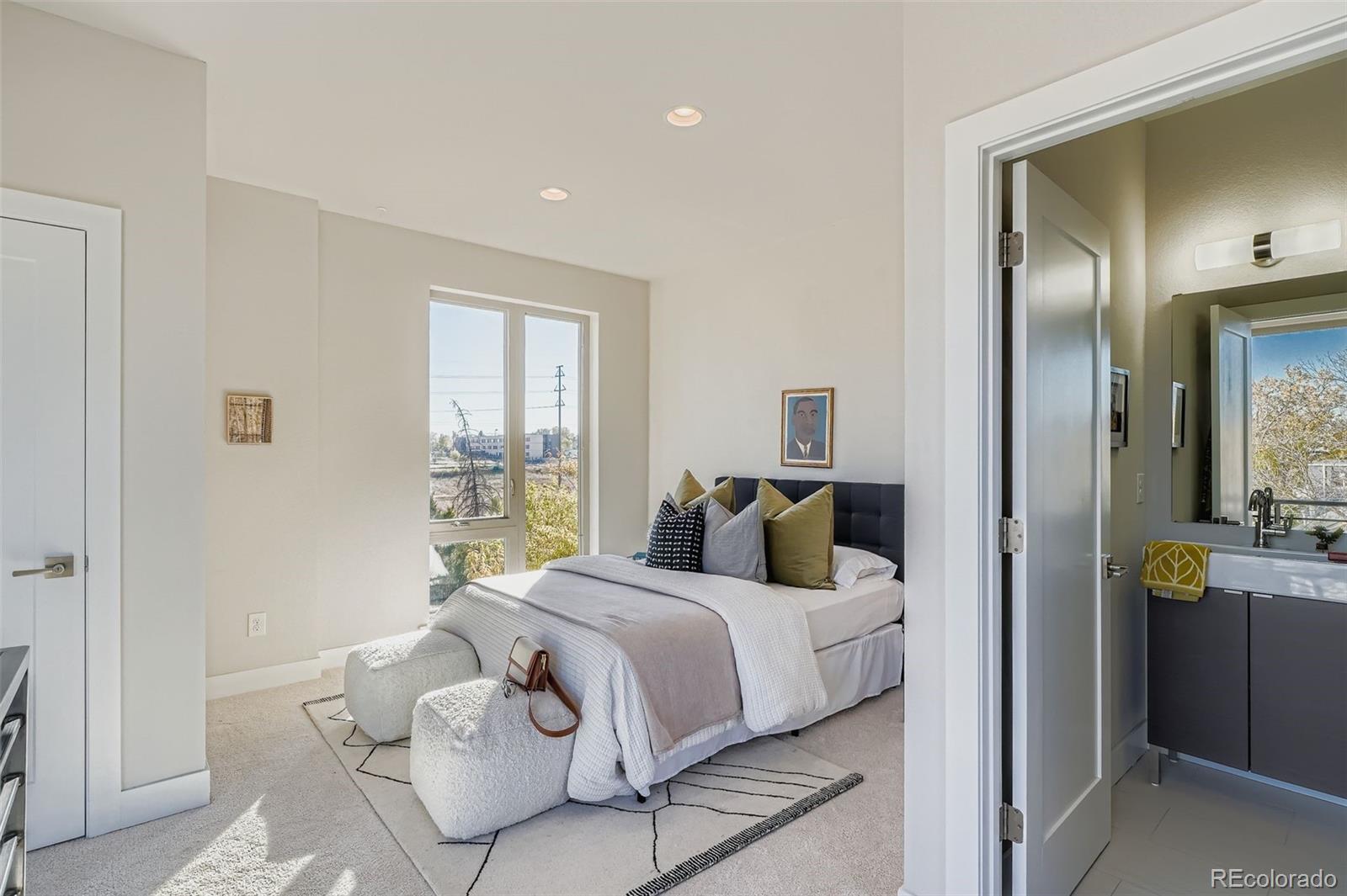 Welcome to the stunning END UNIT townhome, uniquely featuring three ensuite bedrooms, that you’ve been waiting for! This light-filled home lives more like a detached house with front door access, 9 foot ceilings, and three walls of natural light throughout the residence. A modern and open kitchen is perfect for entertaining or enjoying nights at home. An ideal floor plan includes two bedrooms on the second floor, both with ensuite bathrooms, plus a third floor that can also be used as a bedroom with an ensuite bathroom. This offers tons of flexibility for uses including home offices, additional living spaces, guest rooms, or roommates! French doors lead to a beautiful rooftop deck, perfect for enjoying Denver’s 300 days of sunshine. Other features include no HOA, an additional side entrance, a natural gas hookup for a grill, a one-car detached garage, and more! Ideally located just steps away from Sloan’s Lake, the Edgewater Public Market, the Lakewood Dry Gulch Trail, and the Sheridan Light Rail Station for quick and easy access to downtown Denver. Don’t miss your chance to call this your new Denver home!