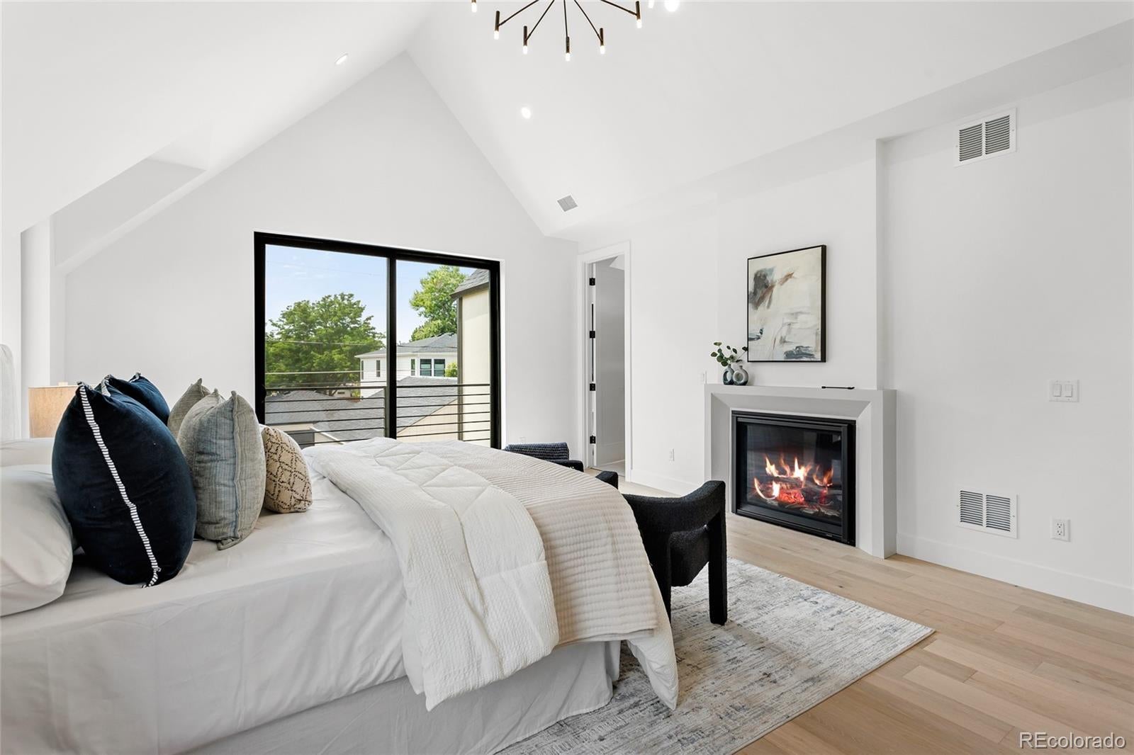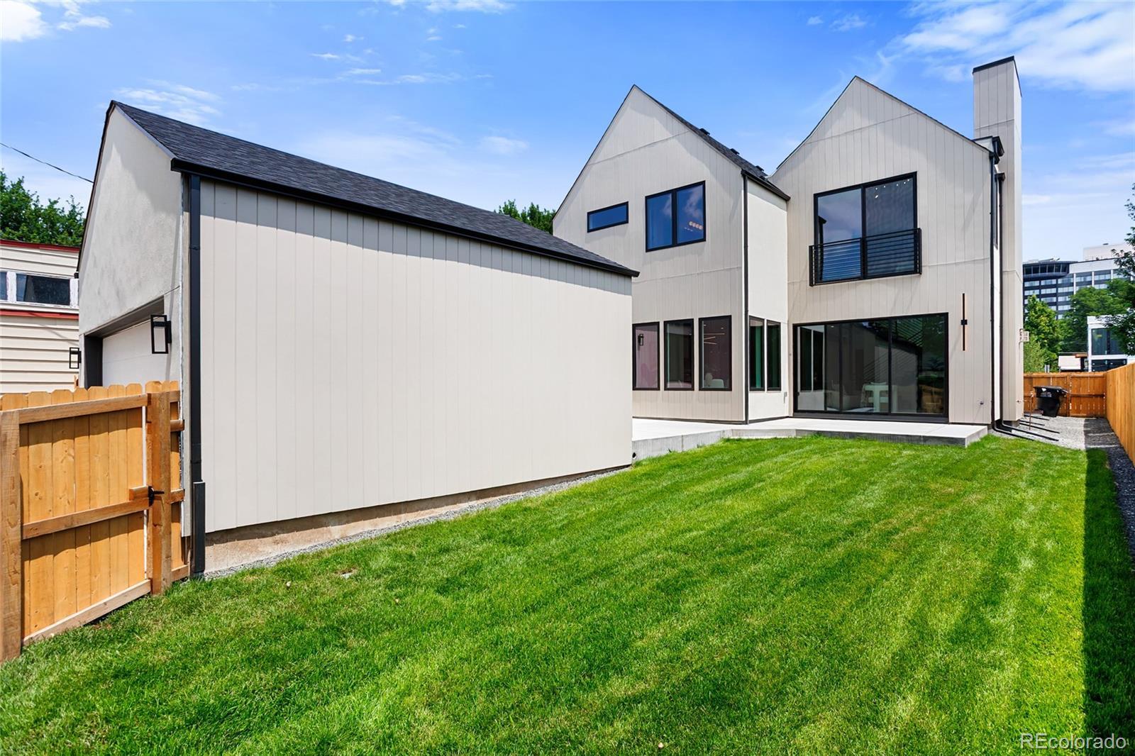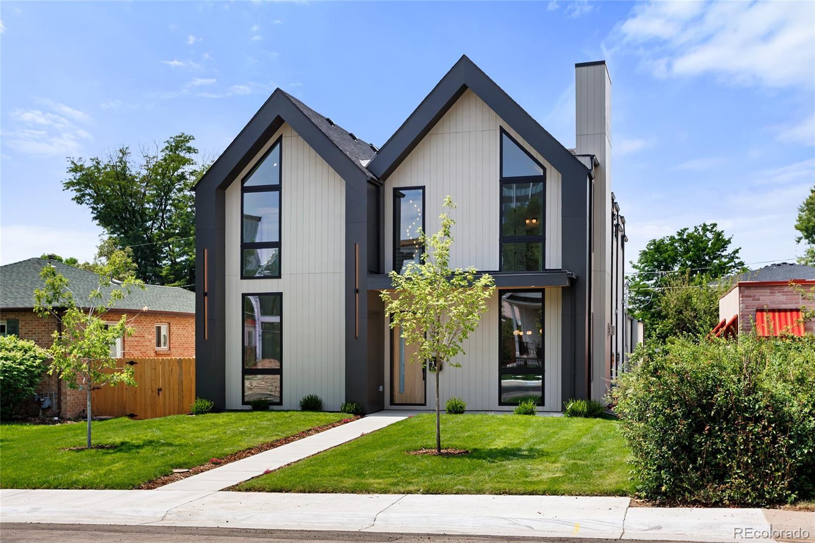 Nestled on a quiet street in sought-after Cory-Merrill, this newly completed 5-bedroom, 5-bath residence offers a refined blend of modern architectural lines and Scandinavian detail built with PBG craftsmanship. Blocks from Belcaro and walkable to Colorado Boulevard’s shops and restaurants, quick access to Washington Park (6 minutes), Cherry Creek (9 minutes), and the boutique districts of South Gaylord and Bonnie Brae. The distinctive exterior combines cement board and warm wood siding, accented by dramatic front gables and smooth stucco elevations for clean, contemporary curb appeal. Inside, soaring 10’ ceilings and white oak floors anchor an open-concept layout. Living and dining areas feature custom gas fireplaces, while archways lined with Porcelonasa tile add character. The chef’s kitchen is outfitted with a Thermador/Frigidaire appliance suite, oversized quartzite island, floor-to-ceiling American-made cabinetry, and a walk-in pantry for optimal storage. The main floor also includes a private home office, formal dining wrapped in Andersen Fibrex floor-to-ceiling windows, and a powder bath with floating quartzite vanity and custom sink. A Bonelli multislide door opens the living space to the landscaped backyard for seamless indoor-outdoor living. Upstairs, a custom monorail staircase leads to the primary suite retreat with vaulted ceilings, gas fireplace, walk-in closet, and a French balcony overlooking the backyard. The spa-inspired primary bath features radiant heated floors, a freestanding soaking tub with garden views, and a double shower with dual heads. Two additional vaulted en-suite bedrooms and a laundry room complete the upper level. Finished basement offers 10’ ceilings, a large family room with custom wet bar, two more bedrooms, a shared bath, and generous storage. Mudroom with built-in dog wash and garage with a 220V outlet included. PBG provides industry leading 2-year builder’s warranty and an 8-year structural warranty for added peace of mind.