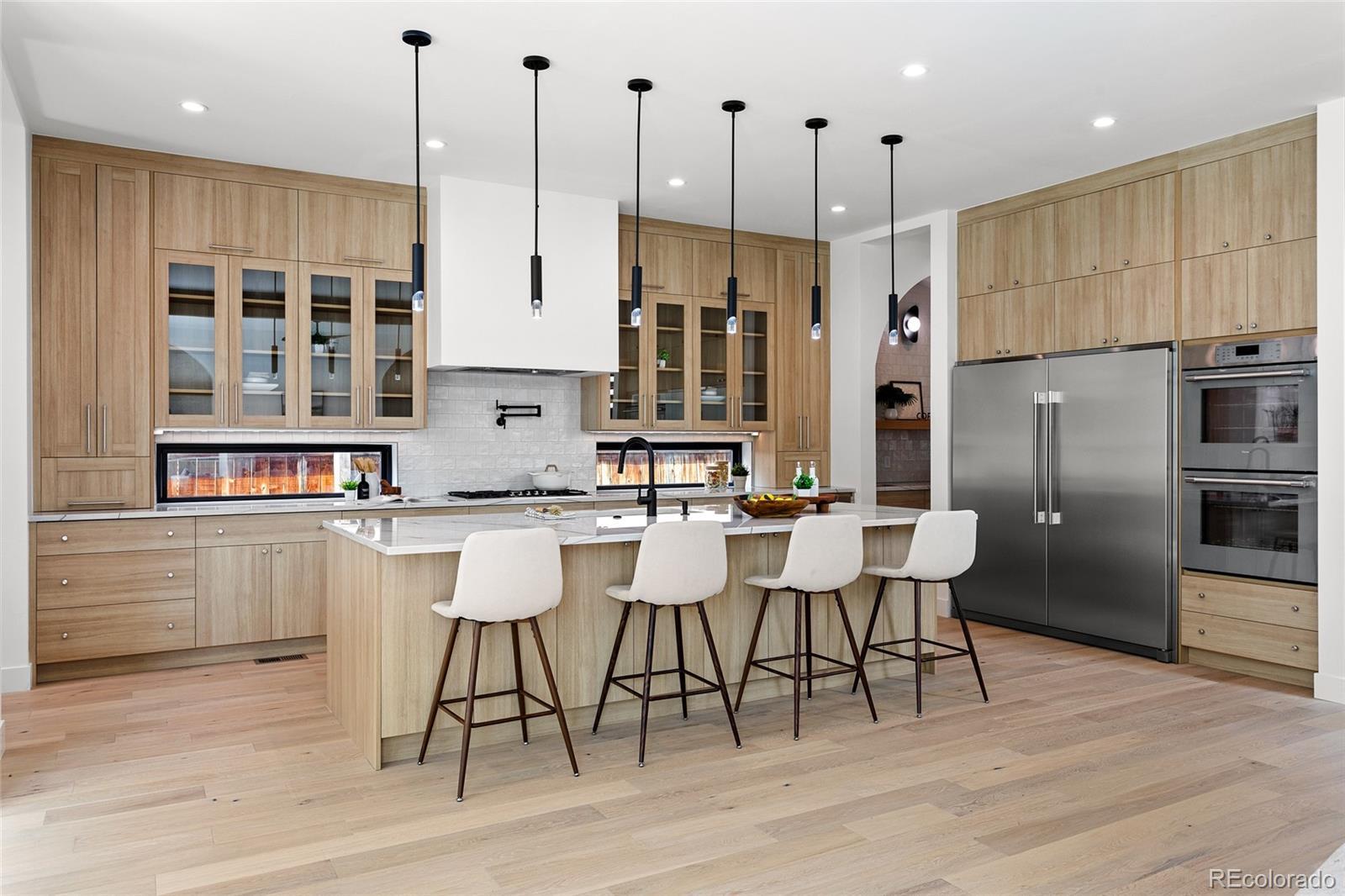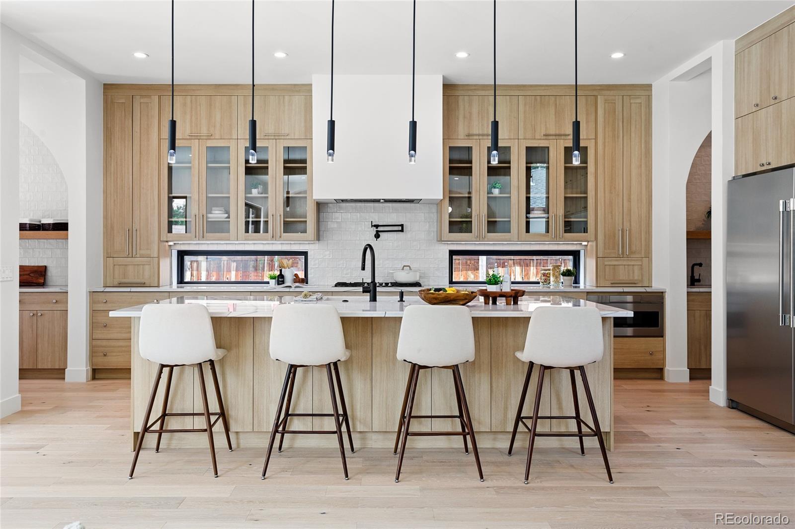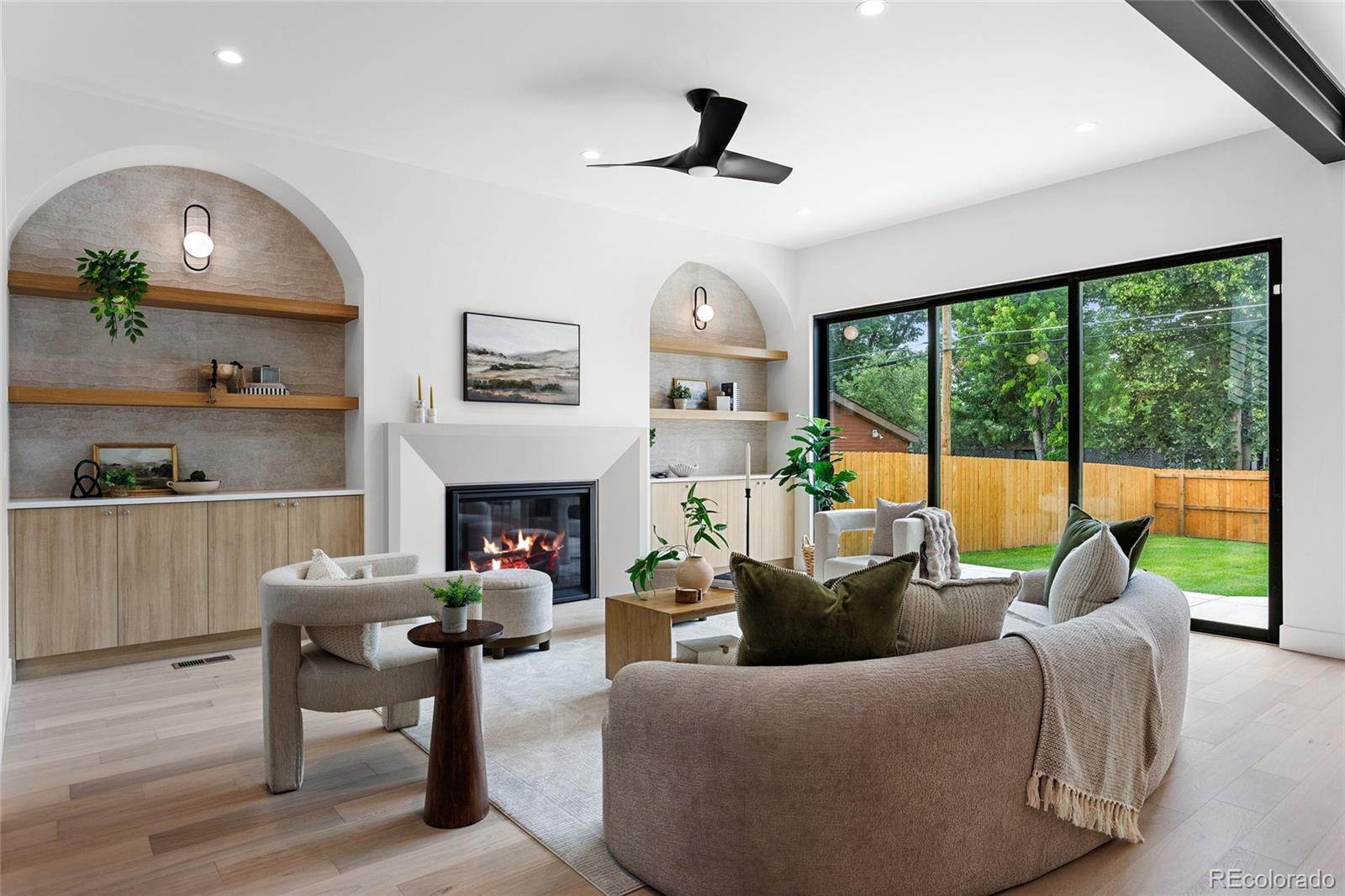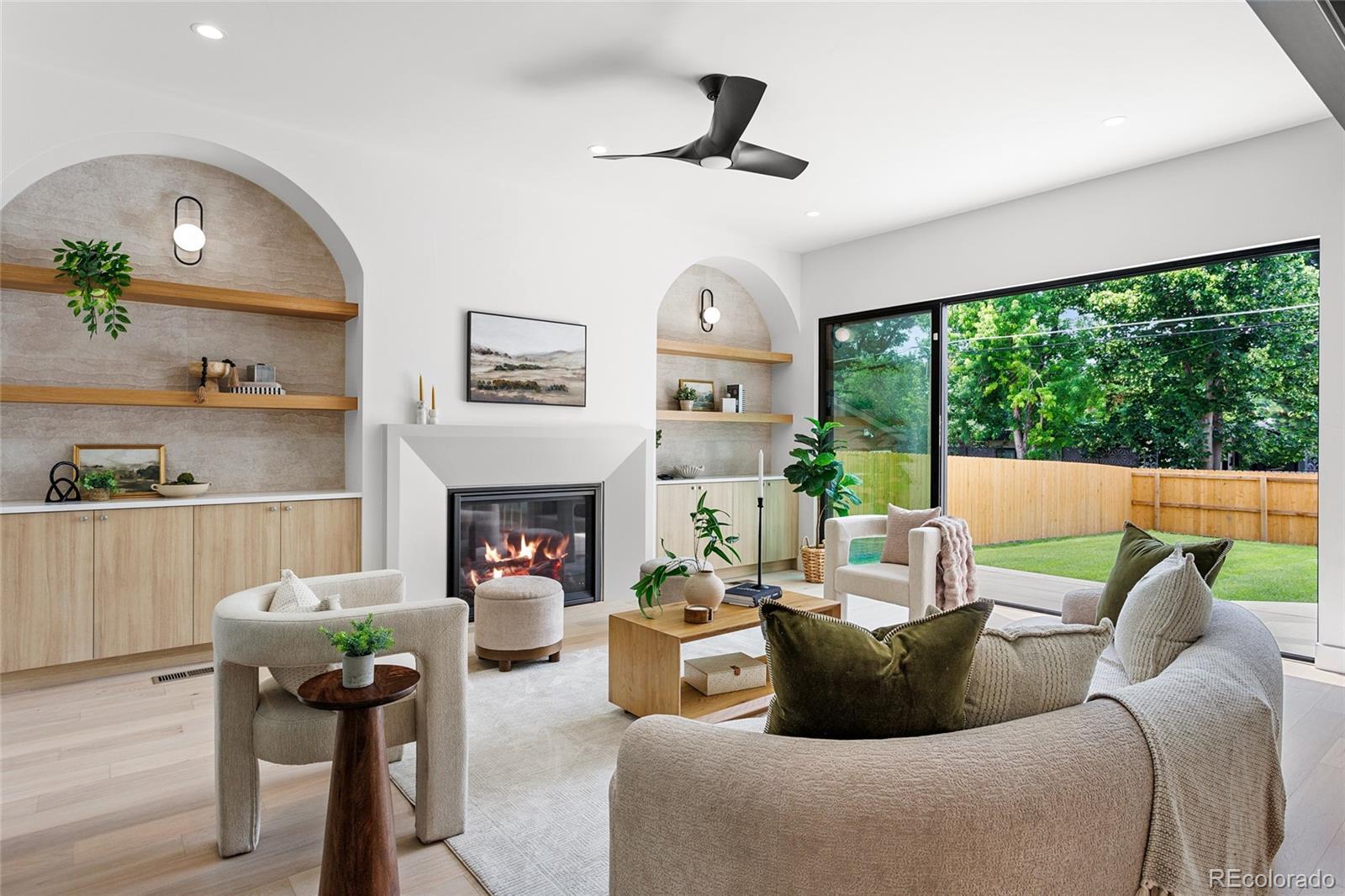 Nestled on a quiet street in sought-after Cory-Merrill, this newly completed 5-bedroom, 5-bath residence offers a refined blend of modern architectural lines and Scandinavian detail built with PBG craftsmanship. Blocks from Belcaro and walkable to Colorado Boulevard’s shops and restaurants, quick access to Washington Park (6 minutes), Cherry Creek (9 minutes), and the boutique districts of South Gaylord and Bonnie Brae. The distinctive exterior combines cement board and warm wood siding, accented by dramatic front gables and smooth stucco elevations for clean, contemporary curb appeal. Inside, soaring 10’ ceilings and white oak floors anchor an open-concept layout. Living and dining areas feature custom gas fireplaces, while archways lined with Porcelonasa tile add character. The chef’s kitchen is outfitted with a Thermador/Frigidaire appliance suite, oversized quartzite island, floor-to-ceiling American-made cabinetry, and a walk-in pantry for optimal storage. The main floor also includes a private home office, formal dining wrapped in Andersen Fibrex floor-to-ceiling windows, and a powder bath with floating quartzite vanity and custom sink. A Bonelli multislide door opens the living space to the landscaped backyard for seamless indoor-outdoor living. Upstairs, a custom monorail staircase leads to the primary suite retreat with vaulted ceilings, gas fireplace, walk-in closet, and a French balcony overlooking the backyard. The spa-inspired primary bath features radiant heated floors, a freestanding soaking tub with garden views, and a double shower with dual heads. Two additional vaulted en-suite bedrooms and a laundry room complete the upper level. Finished basement offers 10’ ceilings, a large family room with custom wet bar, two more bedrooms, a shared bath, and generous storage. Mudroom with built-in dog wash and garage with a 220V outlet included. PBG provides industry leading 2-year builder’s warranty and an 8-year structural warranty for added peace of mind.