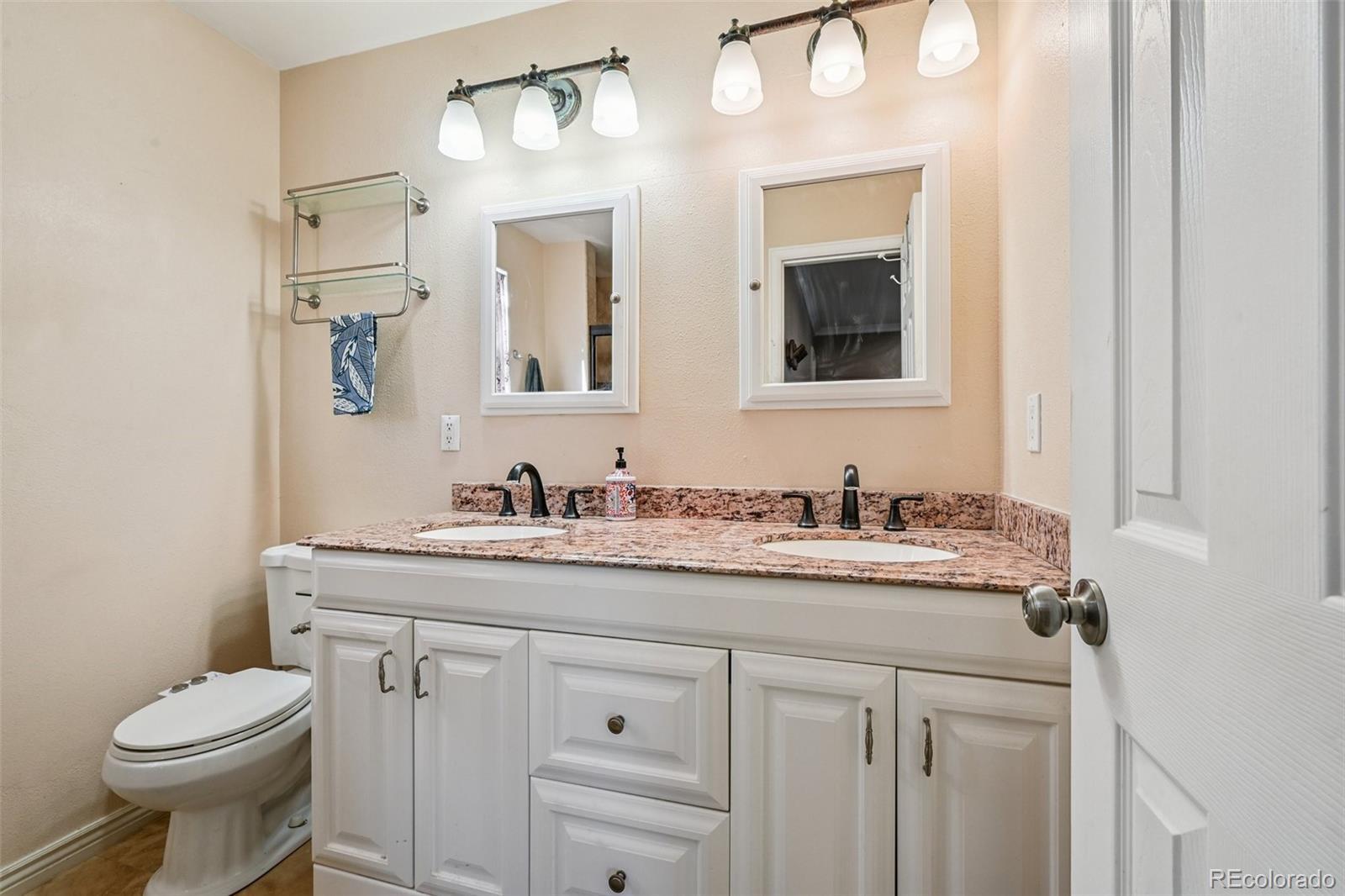 Welcome home! Beautiful two-story home with finished basement in the highly desirable Westridge Knolls neighborhood of Highlands Ranch. Popular Richmond Ann Arbor model. Tasteful upgrades throughout. Beautiful porcelain tiles throughout the main floor, double-sided fireplace, granite counters tops with plenty of counter space and storage. Open kitchen and family room, perfect for entertaining! Large primary suite features wood flooring, walk-in closet with California Closet upgrade, updated bath with oversized travertine shower, vanity with granite top and dual sinks. Two additional upper floor bedrooms and a full bath. Professionally finished basement with beautiful 3/4 bath, ideal for 4th bedroom (teen suite), home office or additional family room. Finished laundry area with built-in ironing board. Private backyard with stamped concrete patio and firepit. South facing home for great snowmelt in the winter. Brand new water heater, newer dishwasher and range/oven. Great access to the mountains on C-470! Easy access to Inverness, Meridian, The Denver Tech Center. Close to Town Center, Park Meadows Mall, restaurants and other shopping. Don't miss out on this wonderful home!