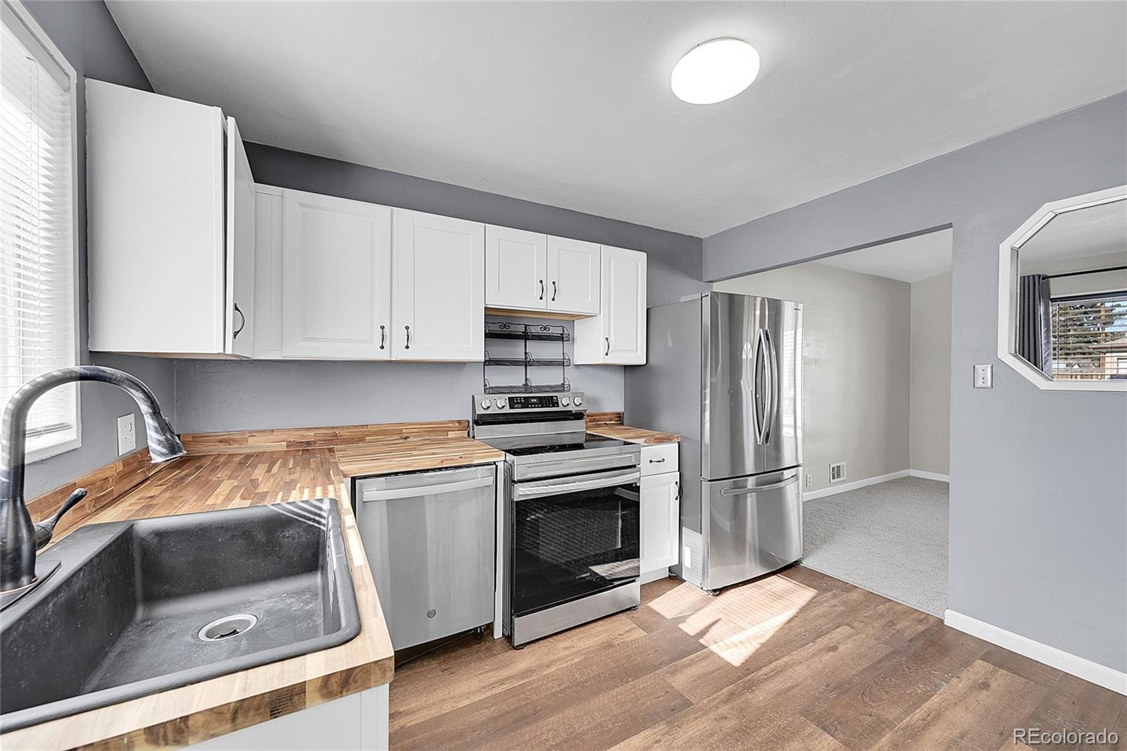 Welcome home to this inviting 4-bedroom, 2-bath ranch-style residence offering comfort, convenience, and plenty of extra space. The fully finished basement provides a great secondary living area, perfect for entertainment, guests, or a home office. Enjoy the ease of a 1-car attached garage plus RV parking and room for up to six additional vehicles—ideal for all your toys and gatherings. Step inside to find fresh new carpet and stylish butcher block countertops that bring warmth and charm to the kitchen. The backyard has been refreshed with new sod and is framed by newer fencing, making it a great place to relax or play. Conveniently located within walking distance to the local elementary school and offering an easy commute to both Denver and Boulder, this home truly checks all the boxes. Don’t miss this fantastic opportunity! NO HOA!!! Large smart TV included.