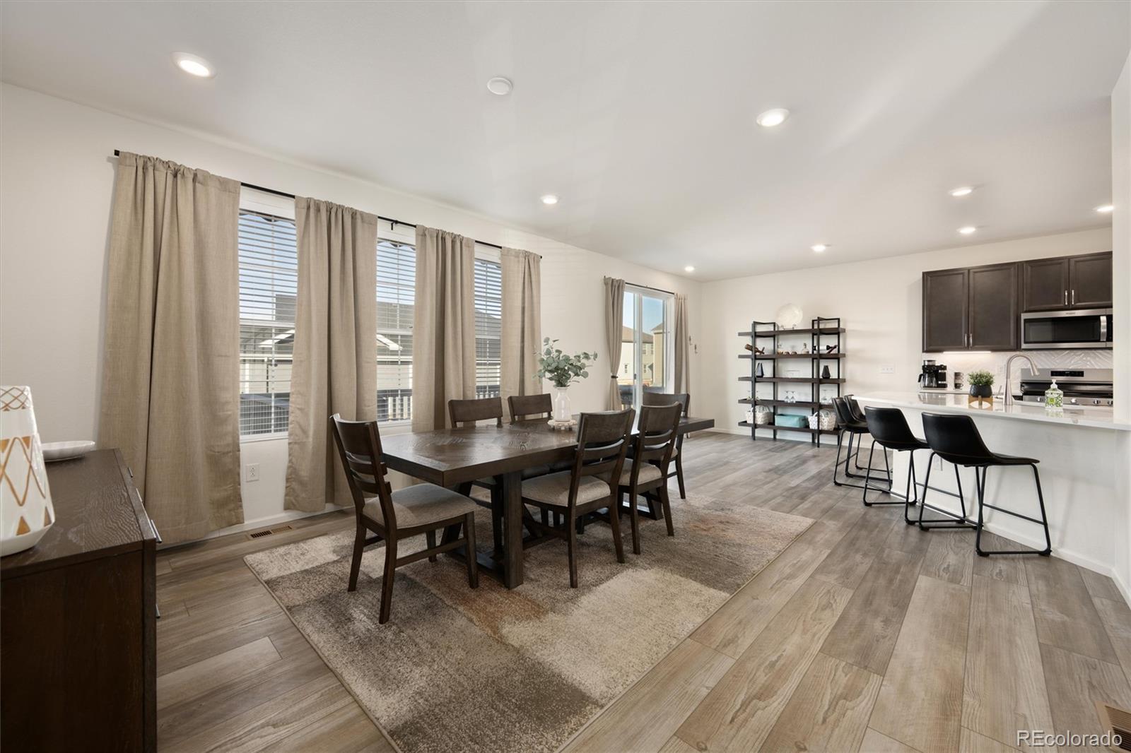 Get the perks of newer construction without the “live in a construction zone while finishing the house” phase. Landscaping is done. Deck is done. Window coverings are done. You can move in and immediately start enjoying life. This corner lot home offers 4 bedrooms, a loft, upstairs laundry, and an oversized garage with space for storage, bikes, tools, or the Costco haul. The layout is open, functional, and designed for real life. The main level features a spacious family room that flows into the dining area and kitchen, making it easy to host friends, or keep everyone connected during everyday routines. The kitchen includes espresso cabinetry, stainless steel appliances, generous counter space, and a layout that works whether you’re cooking a full dinner or assembling takeout containers. Upstairs, all four bedrooms are conveniently located together along with a flexible loft that can be used as an office, playroom, workout space, reading nook, or second living area. Laundry is upstairs too, because carrying baskets up and down stairs is overrated.The primary suite captures beautiful Colorado views and includes a five-piece bath and walk-in closet, creating a comfortable retreat at the end of the day. Enjoy morning coffee on the front porch, evenings on the back deck, and wide-open skies from multiple vantage points throughout the home.Sweetgrass is known for its neighborhood pool, parks, playgrounds, and walking trails, offering an easy, active lifestyle. The location provides quick access to I-25 for commuting to Denver, Boulder, or Fort Collins, while still offering that neighborhood feel buyers are searching for. Shopping, dining, and everyday conveniences are just minutes away. As a fun local bonus, the adorable sourdough stand Bows & Loaves sits right across the street, making fresh bread runs part of the routine.If you’re searching for a move-in ready 4 bedroom home with a loft, + study corner lot, community amenities, and convenient access to the Front Range