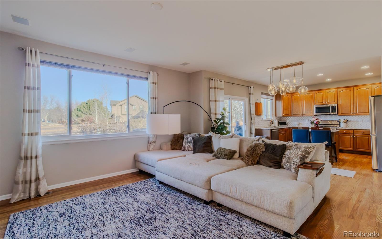 Welcome to this beautifully maintained 2 story home with a finished basement located in the highly sought after Reunion community in Commerce City. Offering over 3,000 square feet of finished living space, this home features 4 bedrooms, 3 bathrooms, and a spacious 3 car garage. The main level offers an open and functional floor plan filled with natural light, perfect for both everyday living and entertaining. The kitchen flows seamlessly into the living and dining areas, creating a comfortable space for gatherings with family and friends. The finished basement truly sets this home apart and features a custom bar area and a dedicated home theater room, making it the perfect space for movie nights, game days, or hosting guests. The basement also includes an additional bedroom providing flexibility for guests, a home office, or workout space. Upstairs, the spacious primary suite provides a relaxing retreat with heated tile floors in the primary bathroom, offering added comfort during Colorado winters. Energy efficiency is another highlight with solar panels already installed, helping reduce utility costs while adding long term value. Step outside to a private backyard ready for pets, relaxing evenings, or weekend gatherings. Located within the Reunion master planned community, residents enjoy access to pools, parks, trails, fitness center, clubhouse, and year round community events. Conveniently located near schools, shopping, dining, and with easy access to DIA, E470, and downtown Denver. Do not miss the opportunity to own this spacious home with standout entertainment features in one of Commerce City's most desirable neighborhoods.