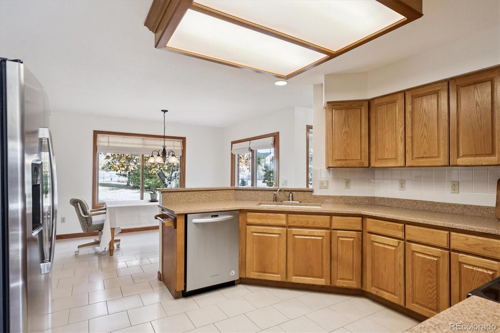 Welcome to this beautifully maintained 4-bedroom, 3-bath ranch-style home in the highly sought-after Creekside at the Trails neighborhood, nestled at the base of North Table Mountain. Perfectly positioned on a large cul-de-sac lot, this home offers privacy, peace, and a true connection to Colorado’s natural beauty. With 1,836 square feet on the main level and a partially finished full basement, the floor plan is both functional and inviting. The primary suite is thoughtfully set apart from the secondary bedrooms, offering a private retreat with a five-piece bath, jetted tub, spacious walk-in closet, and abundant wall space for versatile furniture placement. At the heart of the home, the kitchen combines comfort and practicality with quartz countertops, ample cabinetry, a large pantry, and an eat-in dining space that opens to the covered patio—perfect for outdoor dining or relaxing. All built-in appliances are included, making this kitchen truly move-in ready. Two large secondary bedrooms on the main level provide flexibility—one ideal as a home office with southern light and large walk-in closet with built-in shelving, the other freshly painted and conveniently near the updated hall bath with new floor tile. Downstairs, the basement offers a head start on expansion with a gas fireplace, partially completed ¾ bath, and a fourth bedroom awaiting your finishing touches. A large mechanical room with shelving provides excellent storage options. The oversized 3-car garage—with an extended ¾ tandem bay—offers space for vehicles, hobbies, or weekend projects. Outside, enjoy mature landscaping, blue spruce and pine trees, a raised garden bed, and front and back sprinklers. The yard backs to community open space, enhancing the sense of privacy and openness. With easy access to Golden, the mountains, hiking, and biking trails, this home blends comfort, craftsmanship, and Colorado lifestyle in one exceptional package—ready for you to make it your own.