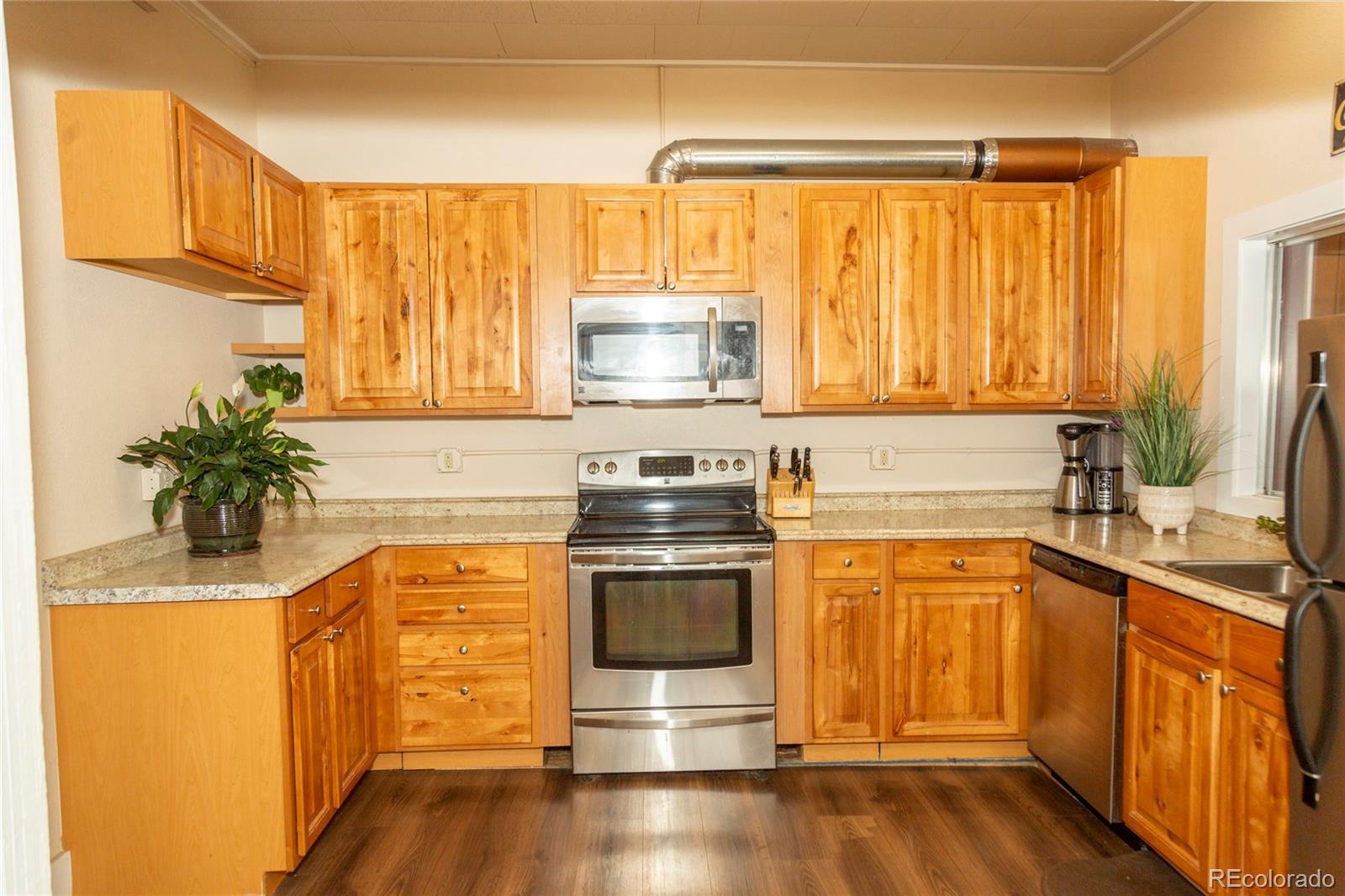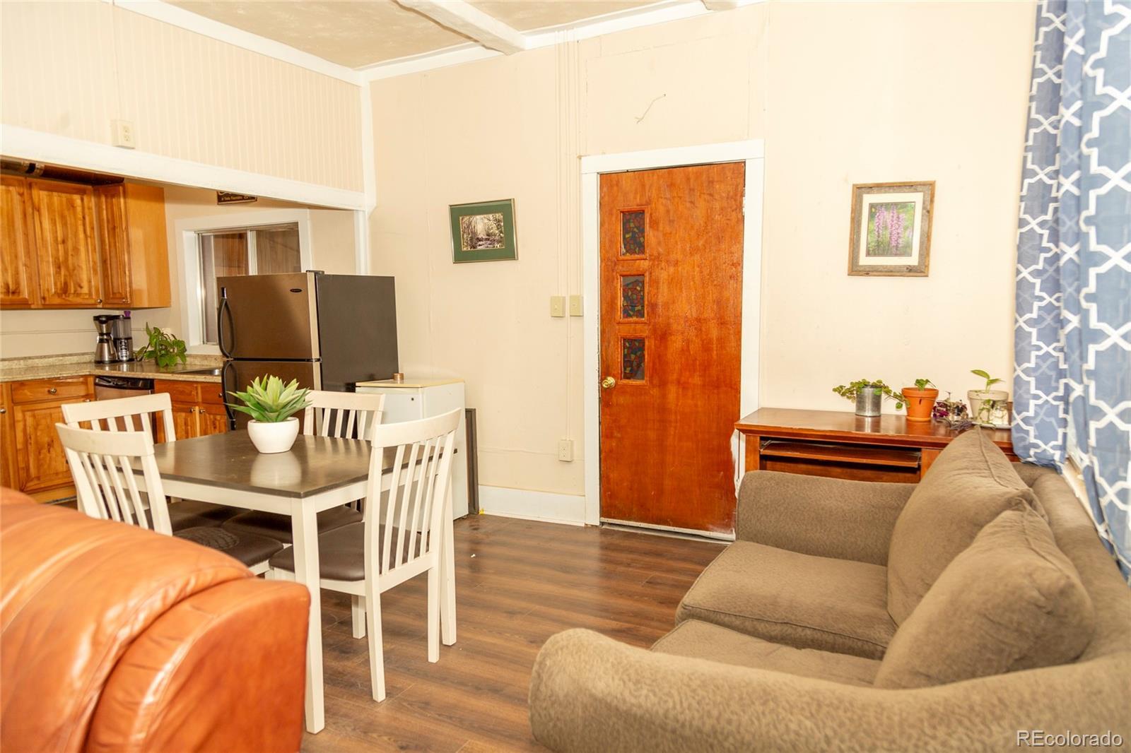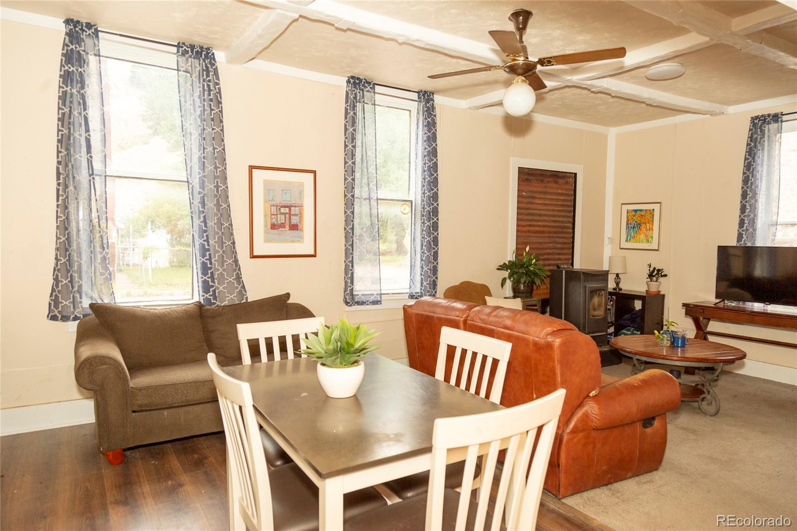 Step back in time with this unique opportunity to own the old Zangs Hotel Sample Room, perfectly situated on the corner of Wall and LaGarita Streets in downtown Creede, Colorado. This 3-bedroom, 1-bath home offers a spacious layout with generously sized bedrooms, an open-concept living, dining, and kitchen area, a large mudroom, and ample storage for all your mountain gear. Mature pine trees provide shade in the oversized yard—ideal for weekend barbecues, gatherings with friends, or simply unwinding outdoors. Located in the heart of Creede, you’re just steps away from charming shops, local dining, and the nationally acclaimed Creede Repertory Theatre. Founded in 1966, CRT is a professional, non-profit theatre company offering world-class performances and programs at 9,000 feet in the stunning San Juan Mountains. This property boasts strong bones, a storied past, and endless potential. A rare chance to own a piece of Creede’s history—and make it your own.