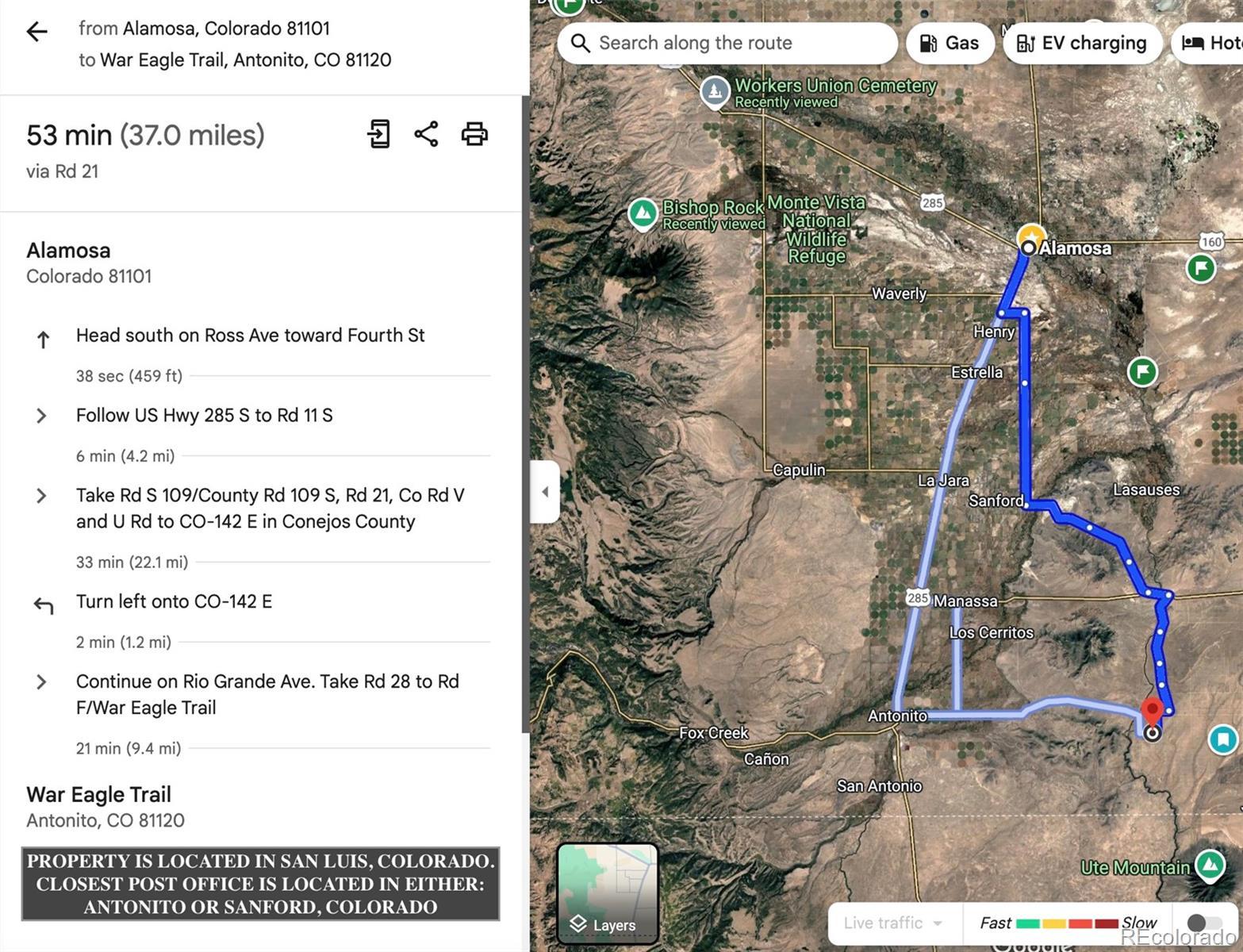 5 Acres Near Rio Grande River – Private, Peaceful, and Versatile A recreational or simple-living paradise awaits. This beautiful and versatile 5-acre parcel sits quietly along War Eagle Trail in the Rio Grande Ranchos subdivision of Southern Colorado. With a level building site and excellent access, it’s ideal for your mountain retreat—whether you're planning an off-grid homestead or a getaway with modern amenities. Location Highlights: Less than 2 miles from the Rio Grande River and Natural Area Peaceful setting with expansive views and unique boulder outcroppings Located in Costilla County, known for outdoor recreation and wide-open landscapes Easy access for RVs, campers, or future construction Build, Camp, or Invest: This property offers both privacy and potential. Perfect for those seeking solitude, recreation, or a basecamp for Colorado adventure. Whether you're dreaming of a self-sufficient lifestyle or a weekend escape, this land gives you the freedom to create your own vision. Property Details: Lot Size: 5 acres Subdivision: Rio Grande Ranchos County: Costilla County, CO Zoning: Residential/Rural Utilities: Off-grid (solar/well/septic recommended) Access: Dirt road via War Eagle Trail Your Colorado lifestyle starts here—don't miss this opportunity.