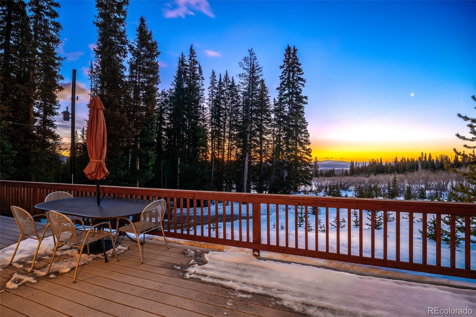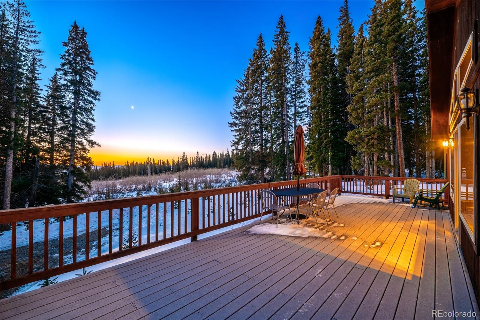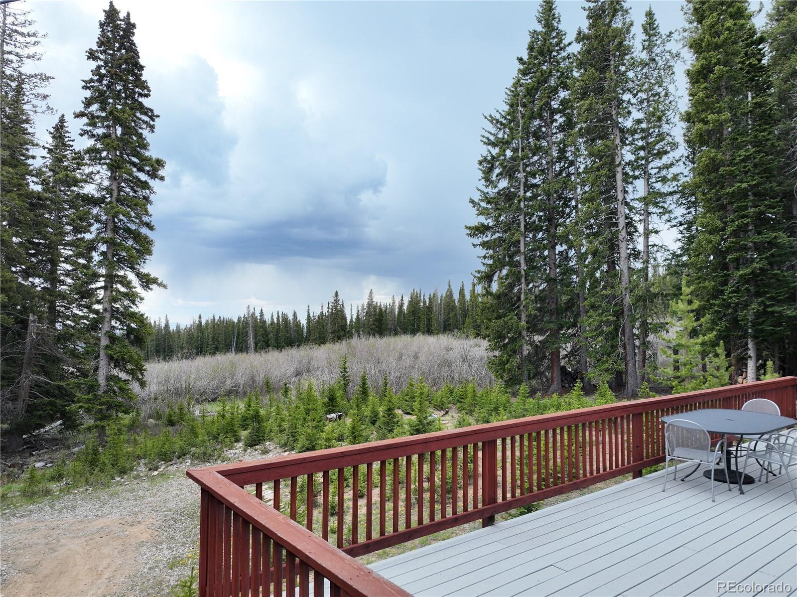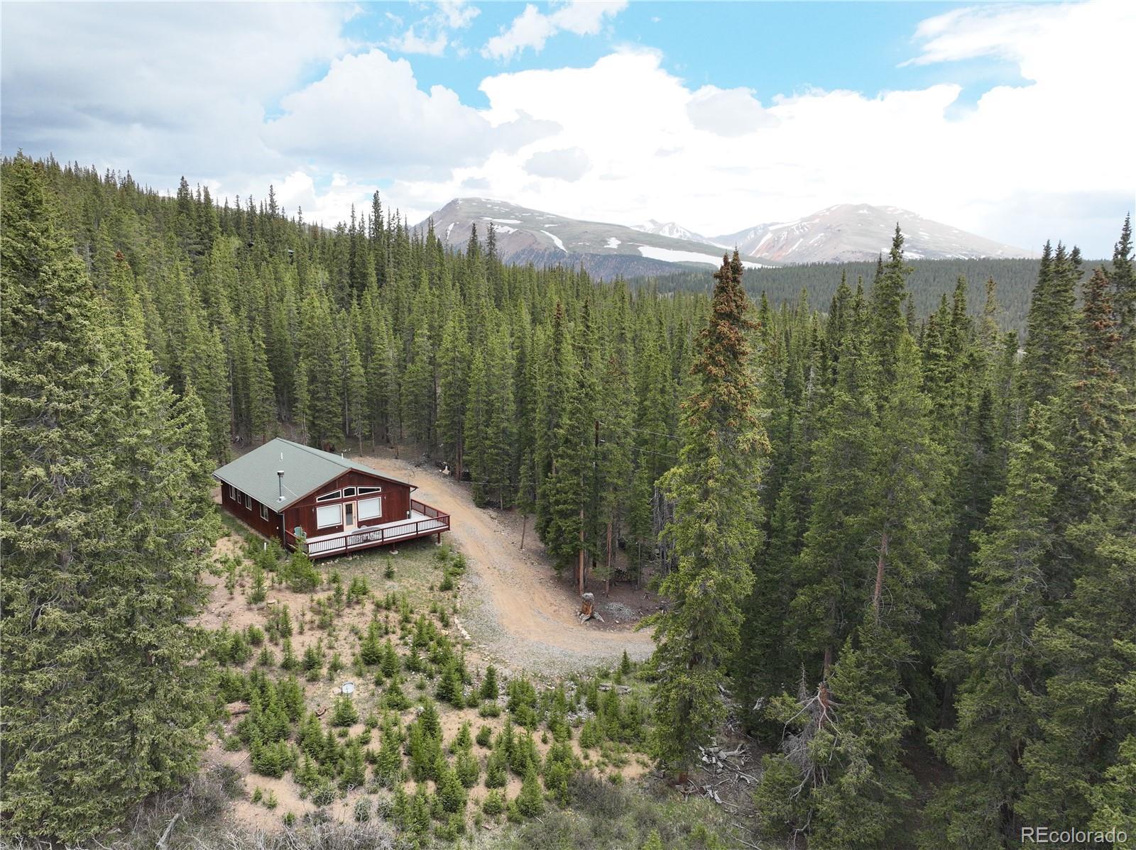 Meander up the drive through the trees to this lovely home in an idyllic parklike setting. It is nestled back on 15+ acres in Valley of the Sun, literally minutes from the Breckenridge Ski Area. With huge mountain views including views of Pikes Peak you may want to spend all of your time out on the expansive wrap around deck or wandering through your forest of Pine and Aspen. Privacy all year and a blaze of vibrant color all Fall. This cabin is waiting to be your Mountain Vacation Spot or short term rental prospect. The interior is so roomy and open. The great room flows from spacious living area to a large kitchen with ample cabinets and extra seating to a generous dining area, plenty of space for all your guests. A wall of windows and deck access from the great room bring the mountains in. A bar area around the corner completes your entertaining venue. Tongue and groove, vaulted ceilings and a stone faced wood burning fireplace add that mountain feel. The home also has three bedrooms. One, with an ensuite half bath could easily be converted into a primary suite. There are also two additional bedrooms and a full bath. A large mud/laundry add extra convenience. There is plenty of parking and a clean, dry crawl space for additional storage. This acreage in this area is a rare find. This is the cabin in Park County that everyone desires. There is no HOA, and the lot is able to be subdivided if you choose. Truly a charming cabin in an ideal location.