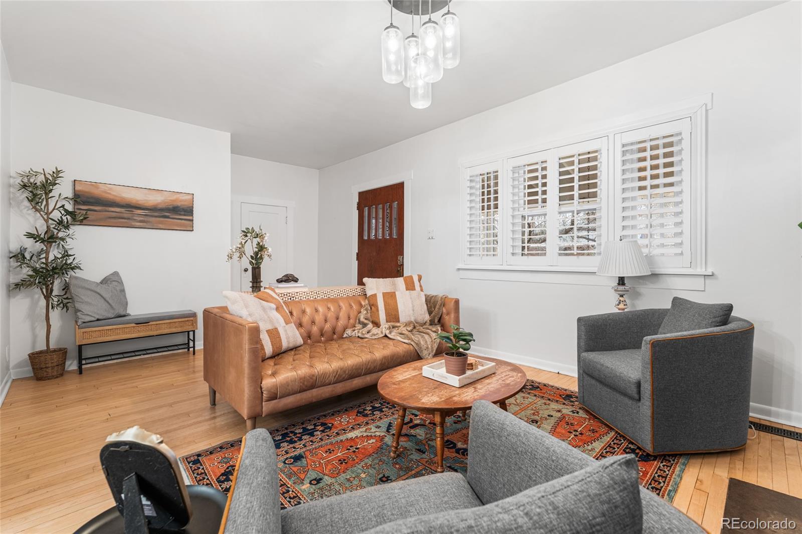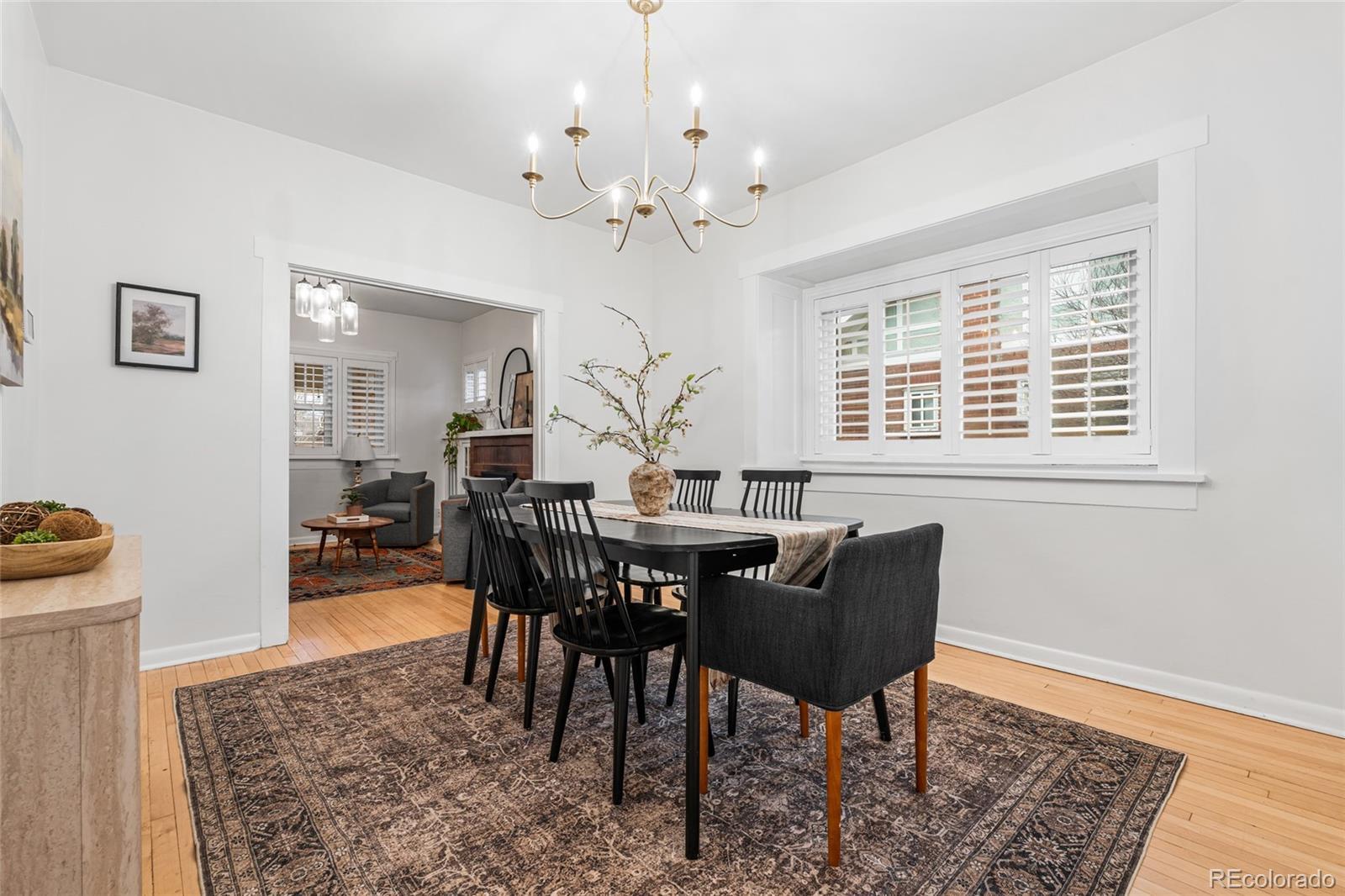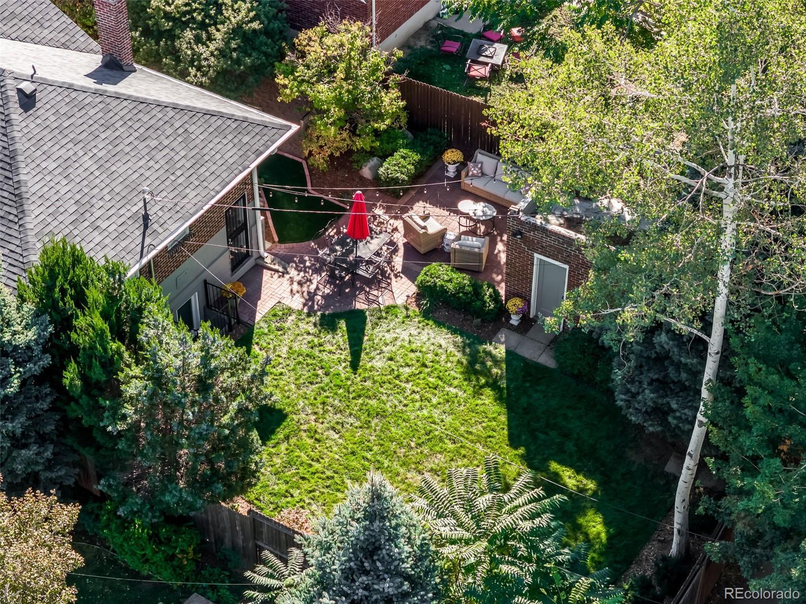 Truly timeless 1920 Brick Bungalow nestled in the Heart of Park Hill. Impeccably maintained period details combine seamlessly with gorgeous updates throughout. The home flows and lives beautifully with plenty of natural light from the covered front porch to the daylight basement. Relish in the classic cherry wood kitchen with an abundance of cabinets and stainless steel appliances. Adding to the charm filled spaces are updated full bathrooms on each level, gleaming hardwood floors, original built-ins, freshly painted interiors and new carpet. Enjoy the time-honored plantation shutters, cozy fireplace on a snow filled day or air-conditioning on a hot one, plus plenty of storage space either in the basement or generously sized garage - this home also has a newer roof! Step outside to the unbelievably idyllic backyard with professionally designed landscaping that functions as a living space all its own; featuring impressive lush plantings, patio to dine al fresco and even designated dog and park-like play areas. Every detail has been perfected, this property is the one to treasure and make yours for years to come!