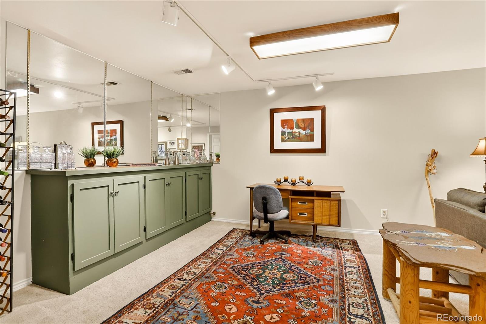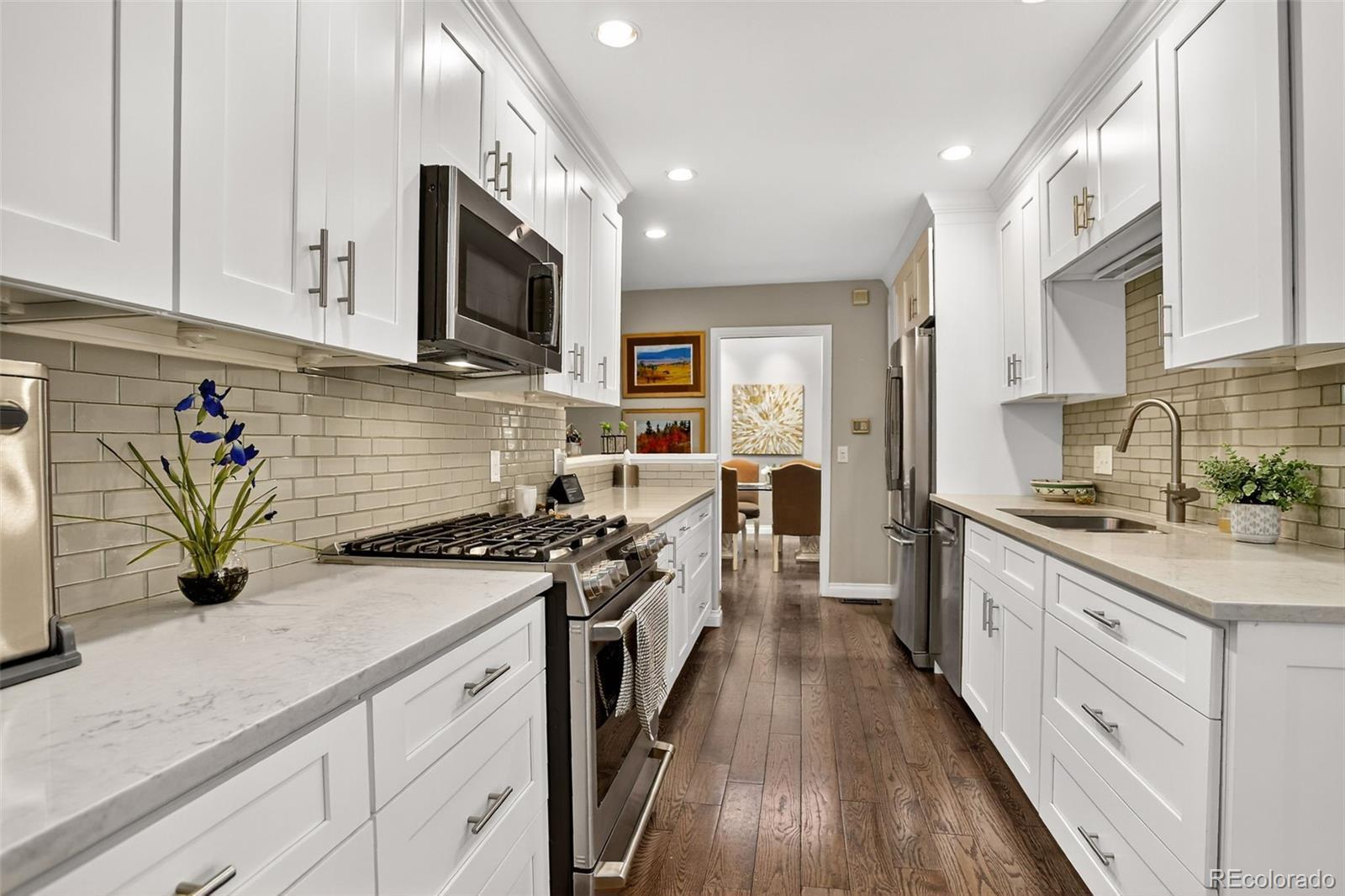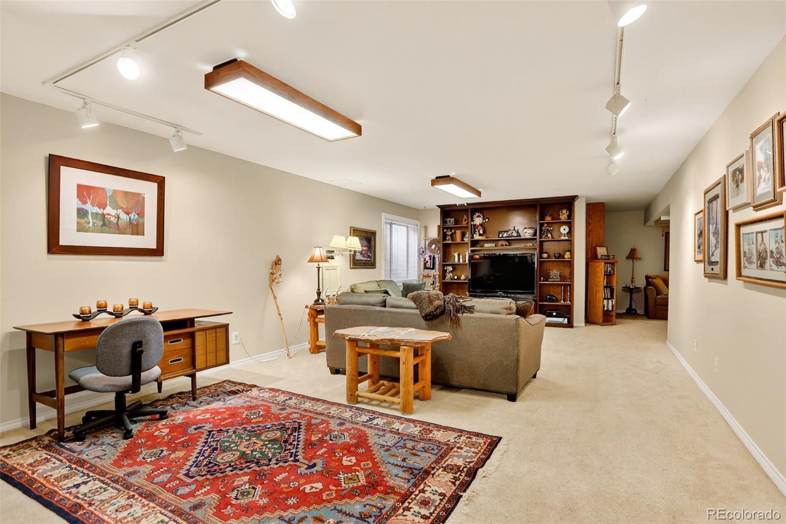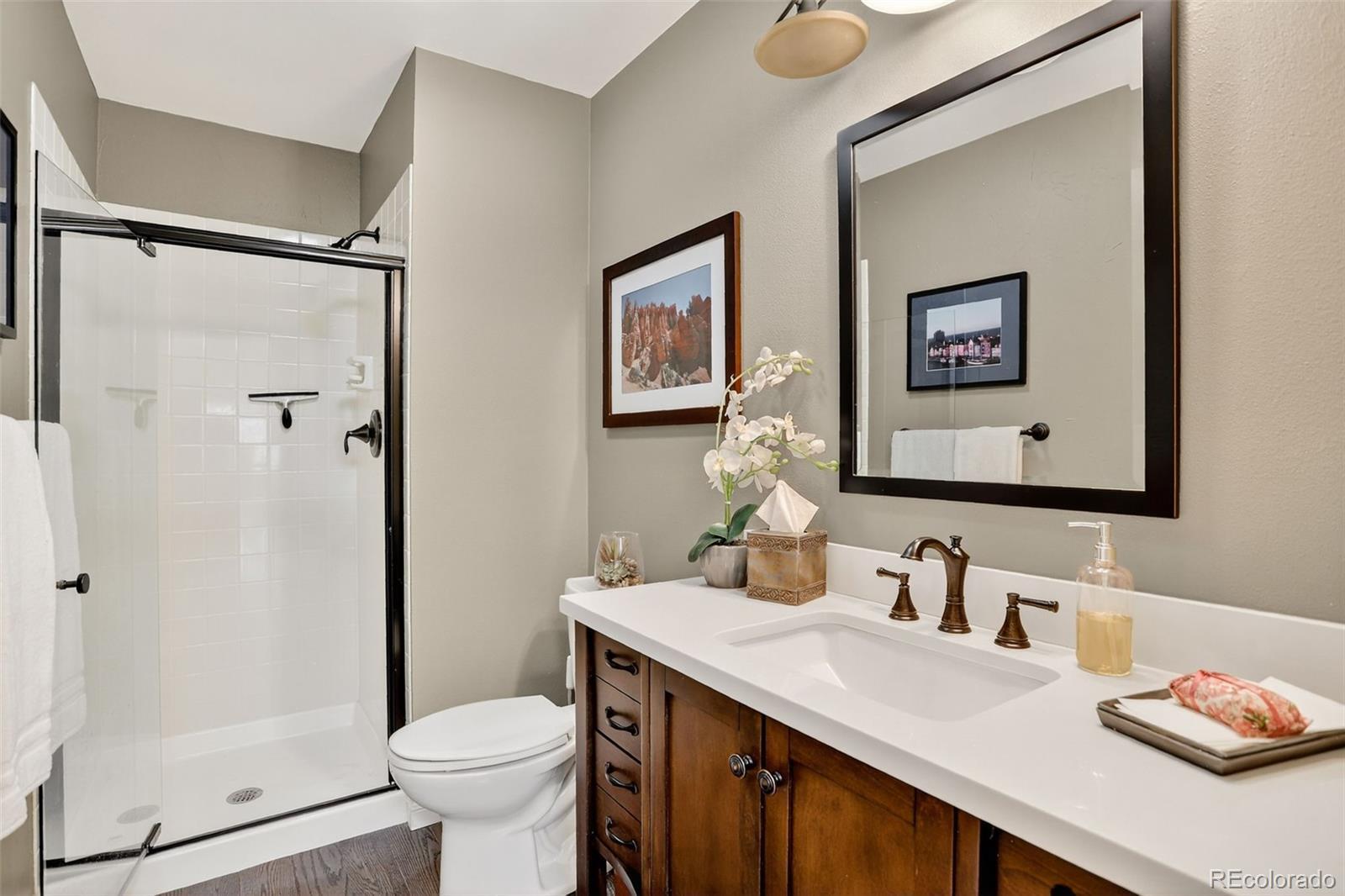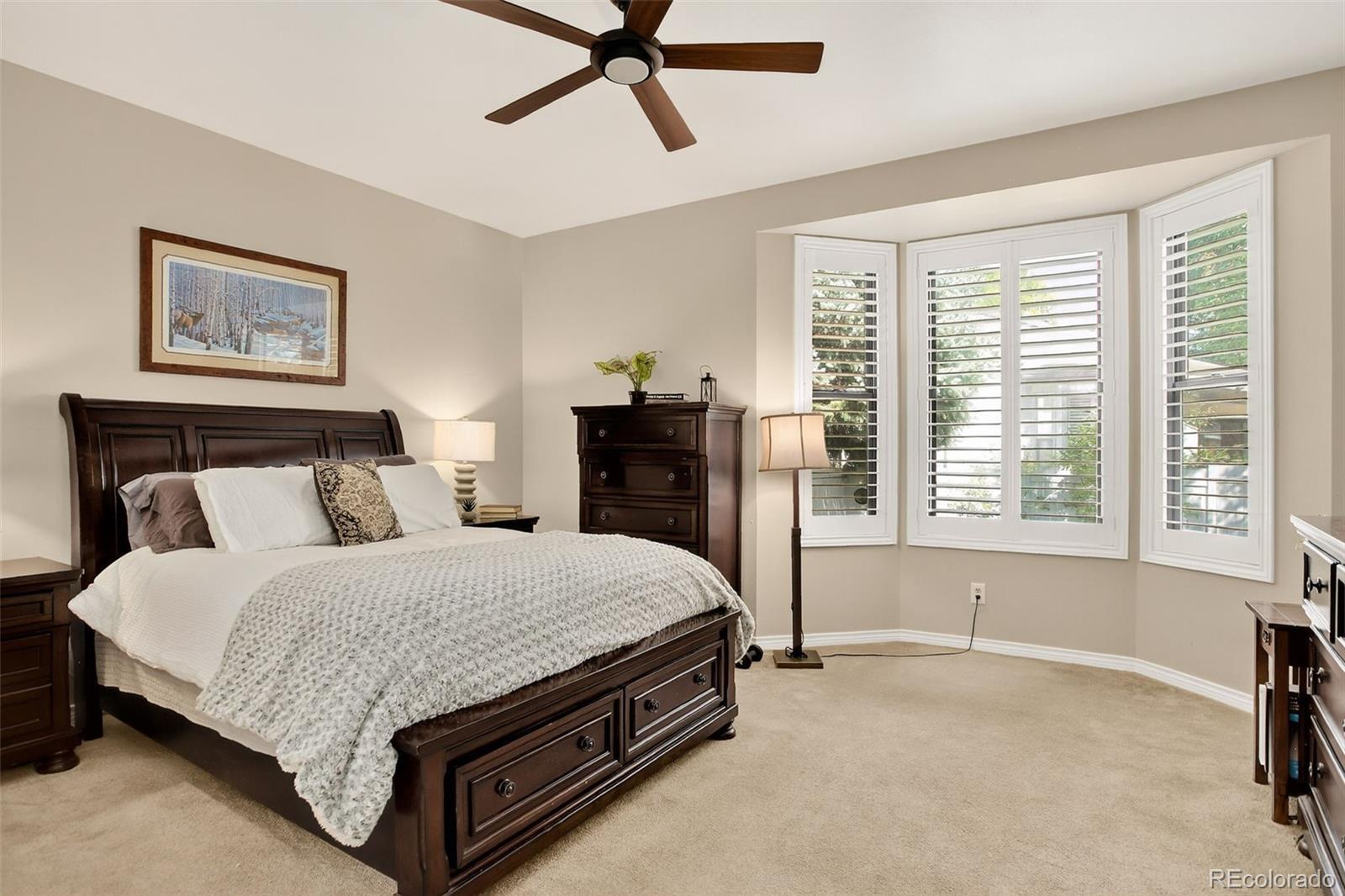 RARE FIND! Your are in luck! These main floor primary bedroom floor plans almost never become available. It is even more rare to find one as beautifully updated as this one. The warm tones of natural hardwood floors and designer colors greet you as you enter into this contemporary home. The southern exposure fills the great room with the loads of natural light that beams through the main floor's wood shutters. Working from home is enjoyable from the large main floor office featuring custom built-ins and a wonderful calming view of the front yard. Looking for a second bedroom on the main floor? The office easily converts to a bedroom complete with a closet. Wow check out the kitchen! A beautifully designed layout makes this kitchen the focal point of the home. Quartz counter tops, gas range and extra work space makes meal time a breeze. A kitchen nook, an extra large pantry and a laundry area complete the kitchen space. After a long day, retreat to your own luxury style Primary bathroom with deep soak tub and a European glass shower. Take game day to the next level in the basement rec room with a dry bar and an entertainment center. Two bedrooms and a full bath complete the space. Two car attached garage and a large unfinished storage area are an added bonus! Minutes from highway systems and the Cherry Creek Shopping makes this a 10! Showings begin Thursday Sept 25th.