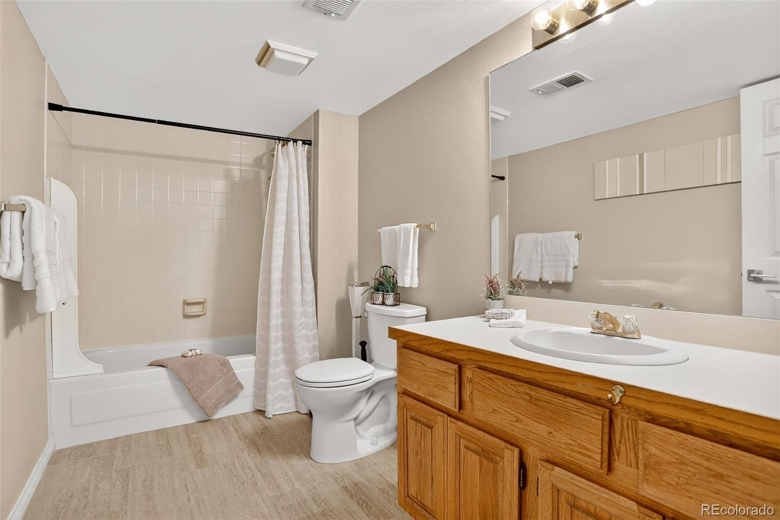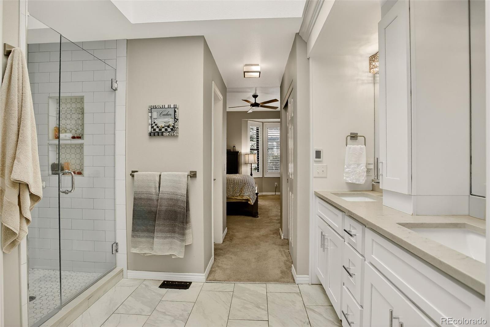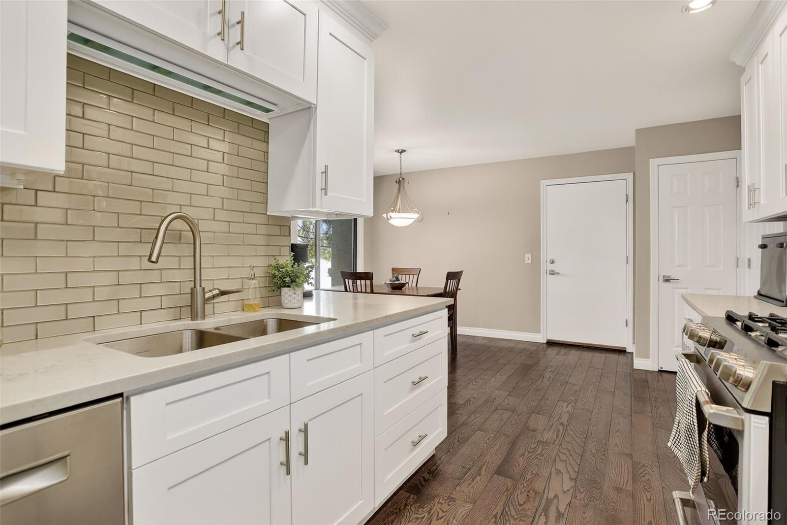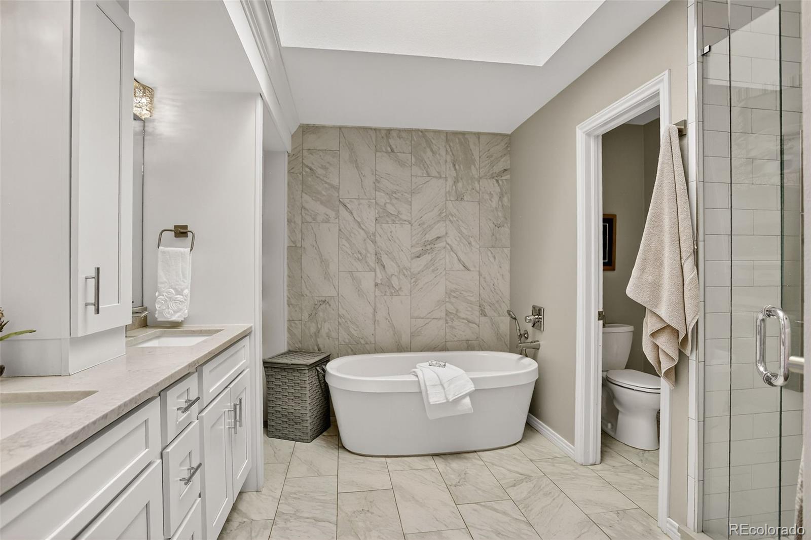 RARE FIND! Your are in luck! These main floor primary bedroom floor plans almost never become available. It is even more rare to find one as beautifully updated as this one. The warm tones of natural hardwood floors and designer colors greet you as you enter into this contemporary home. The southern exposure fills the great room with the loads of natural light that beams through the main floor's wood shutters. Working from home is enjoyable from the large main floor office featuring custom built-ins and a wonderful calming view of the front yard. Looking for a second bedroom on the main floor? The office easily converts to a bedroom complete with a closet. Wow check out the kitchen! A beautifully designed layout makes this kitchen the focal point of the home. Quartz counter tops, gas range and extra work space makes meal time a breeze. A kitchen nook, an extra large pantry and a laundry area complete the kitchen space. After a long day, retreat to your own luxury style Primary bathroom with deep soak tub and a European glass shower. Take game day to the next level in the basement rec room with a dry bar and an entertainment center. Two bedrooms and a full bath complete the space. Two car attached garage and a large unfinished storage area are an added bonus! Minutes from highway systems and the Cherry Creek Shopping makes this a 10! Showings begin Thursday Sept 25th.