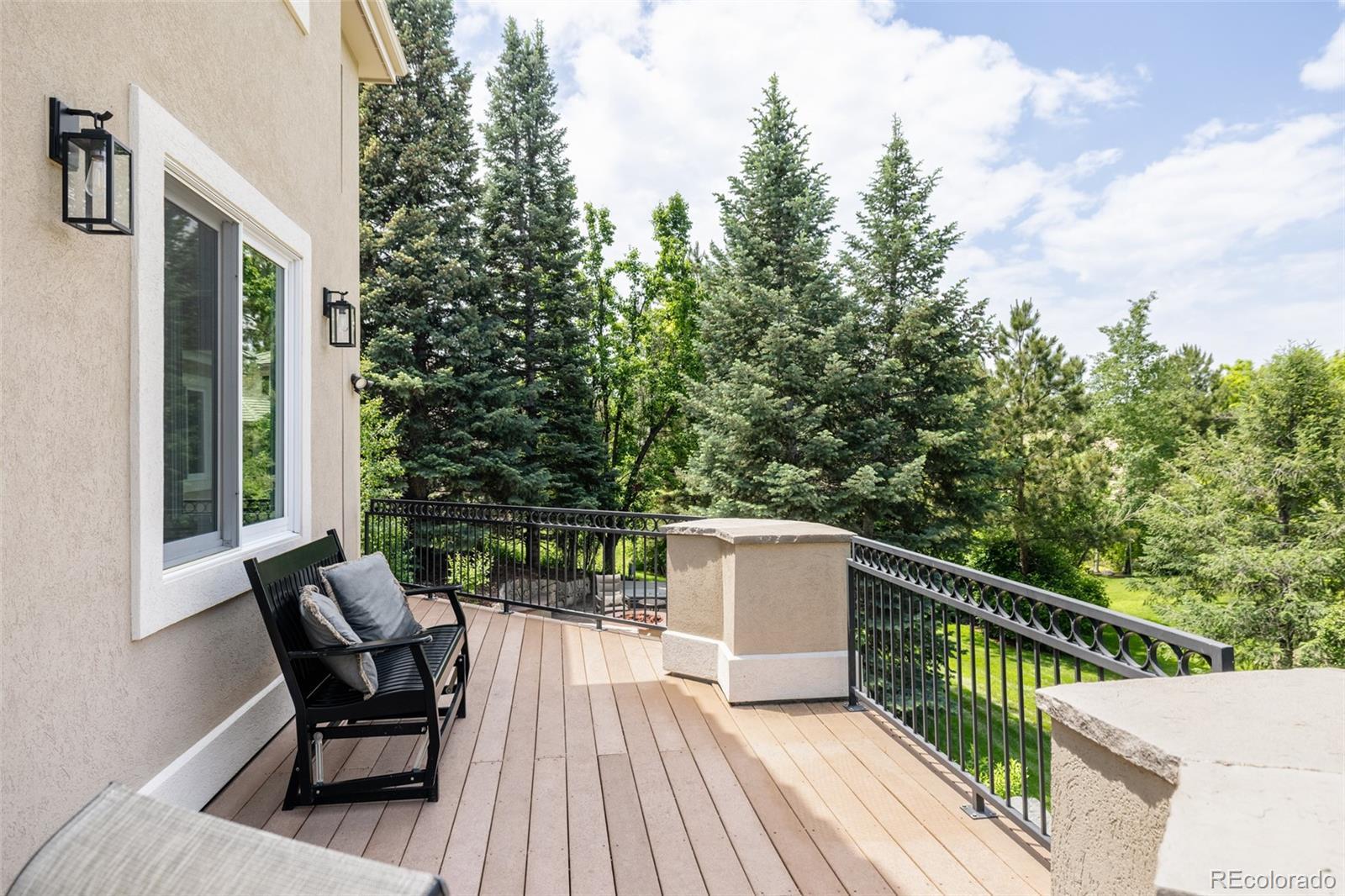 Experience light, space, and luxury living in The Preserve at Greenwood Village — one of Colorado’s most sought-after communities and the heart of Cherry Creek Schools. This spacious, solar-powered home sits on a large .67-acre corner lot, offering unbeatable privacy, mountain sunrise views, and true resort-style amenities. Step into vaulted living spaces reimagined for comfort and connection: a chef’s kitchen with Jenn-Air appliances, Alaska White granite, and an open gathering area flooded in natural light. The dedicated home office and music room overlook lush gardens, perfect for family life, remote work, creativity, or entertaining. Six comfortable bedrooms and five upgraded baths provide everyone space to thrive. Relax in your spa-inspired primary suite with fireplace, private balcony, mountain vistas, and an oversized walk-in closet. Enjoy fresh air and mountain nights on the newer Trex deck, unwind by the fire pit, or take a dip in your private hot tub. Mature trees, smart irrigation, and owned solar panels make everyday living more sustainable and affordable. Live moments from the 55 acres of nature preserve, Olympic pool, tennis, 71 miles of High Line Canal trails, and exclusive recreation center. The Preserve’s parks, playgrounds, and community events provide a vibrant neighborhood lifestyle. BONUS: EV charger upgrades, security systems, and low HOA. All within easy reach of dining, shopping, and top-rated Cherry Creek schools. Your Colorado dream home is move-in ready, energy-smart, and designed for how today's active lifestyle.
