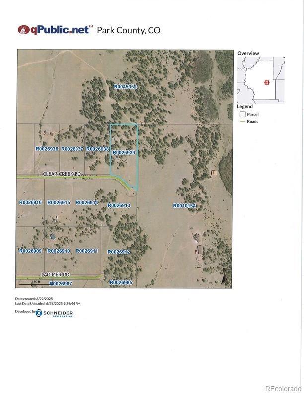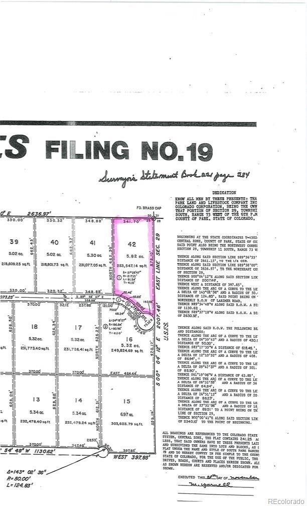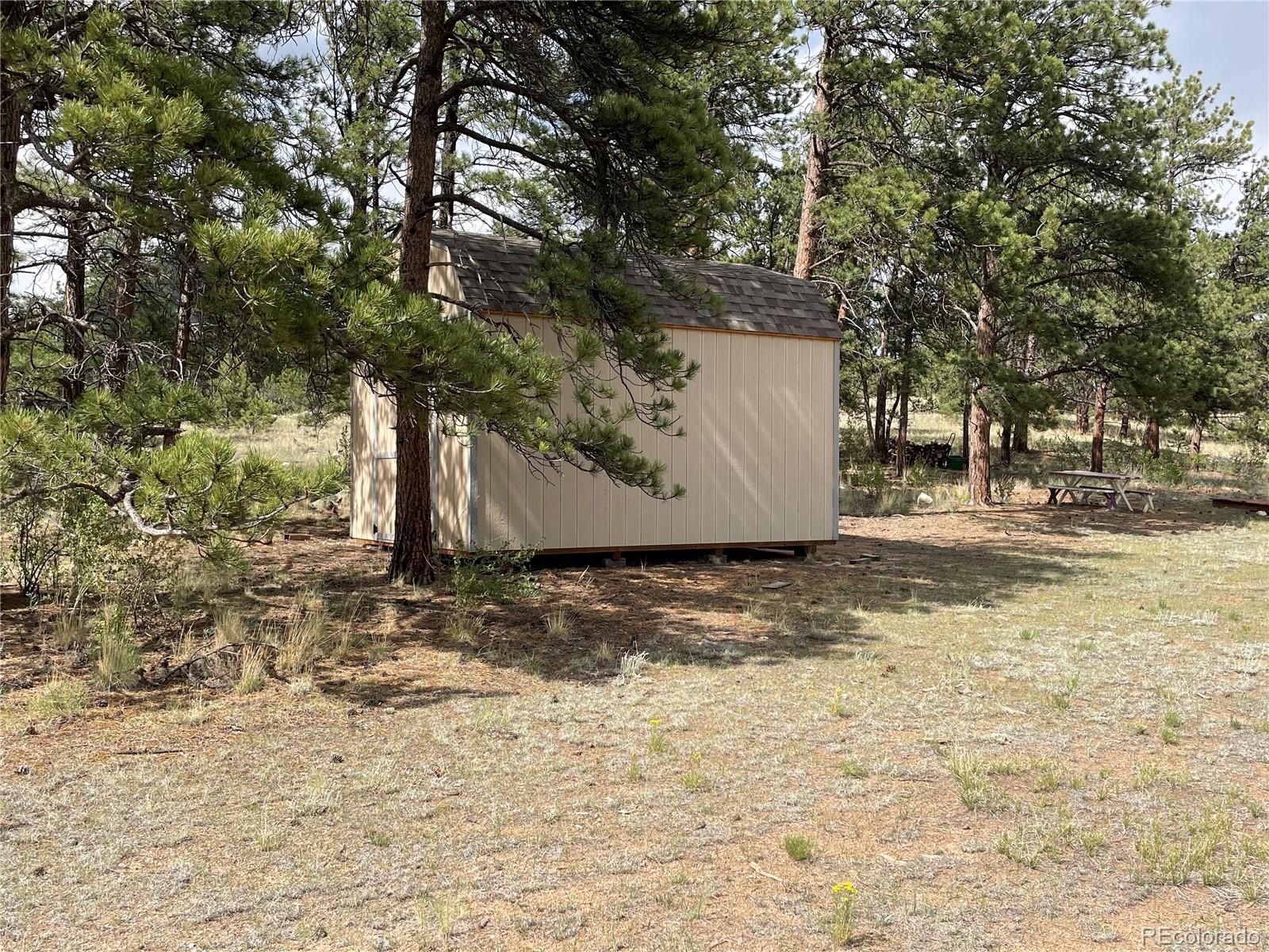 This lovely lot, almost 6 acres, is situated right at the end of a quiet cul-de-sac in a clean, quiet area of South Park Ranches. The property is bordered on one side by a large ranch and on the back by almost 18,000 acres of Pike National Forest, such a private spot for camping. A roughed in drive leads up a very gentle slope to stunning rock outcroppings, perfect for climbing. The front of the lot is level with camping spots, picnic tables, a fire pit, and a 10x16 shed to hold all your gear. Mature pines offer ample tree cover. Camp, stargaze under the clear night skies, and enjoy the solitude of the mountains. This is an ideal spot to escape the congestion of the city. Located in the Heart of Colorado, this is an ideal base camp for all mountain adventures. Hike or bike the forest trails from several nearby access points. Eleven Mile, Spinney, and the Dream Stream are just across Hwy 24, for World-Class fishing. Skiing and White Water Rafting are a short drive away. Camp for now, build your off-grid getaway later if you want. Trees, Yes; Power, No; Phone, Yes. PARK RANCHES FILING 19 LOT 42