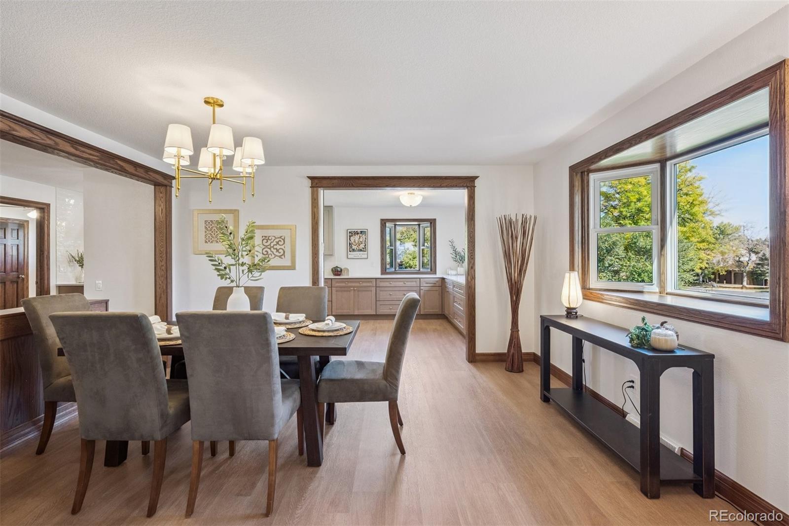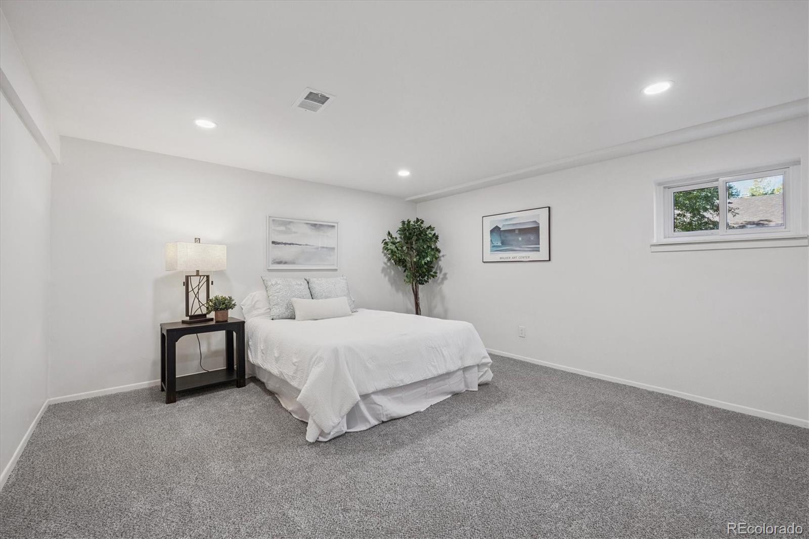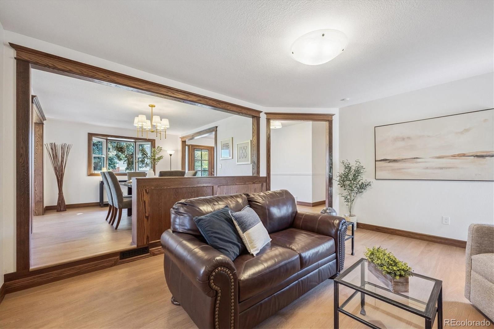 Your next home could be this stunning Applewood remodel, masterfully reimagined with exceptional craftsmanship and Colorado style. Set on a corner lot in a well-established neighborhood, this remodeled raised ranch offers over 3,750 square feet of curated living space. The expansive 5-bedroom, 3-bathroom layout has been thoughtfully redesigned for today's homeowner. At the heart of the home lies a spectacular chef’s kitchen—an entertainer’s dream—featuring custom cabinetry, elegant quartz countertops, premium appliances, and brushed gold fixtures that add warmth and refinement. Three fully renovated bathrooms showcase designer tilework, custom cabinetry and quartz countertops, and frameless shower glass, including a luxe primary en suite. Every detail, from the hardwood doors to the hand-selected lighting and trim, speaks to quality and craftsmanship. The main level boasts new luxury vinyl plank flooring, while the expansive finished lower level—nearly 1,900 sq ft—features plush new carpeting and offers versatile living space; ideal for a media lounge, game room, home gym, and guest suite. The lower level includes a generous family room, two spacious non-conforming bedrooms, a stylishly renovated bath, and large bonus/storage room. This floorplan offers multi-generational or house hacking opportunities. Outside, mature trees and professional landscaping frame a private backyard oasis with rock retaining walls and a secluded patio—perfect for alfresco dining or quiet evenings under the stars. Additional highlights include a new furnace, newer water heater and AC, newer roof, newer double pane windows and recently installed fence for a private yard. Just steps from Lewis Meadows Park and walking trails, moments from new Lutheran Medical Center and incoming Clear Creek Crossing shopping, dining, and entertainment options. This is a rare opportunity to own a refined, turn-key home in Applewood. Call to schedule your showing!