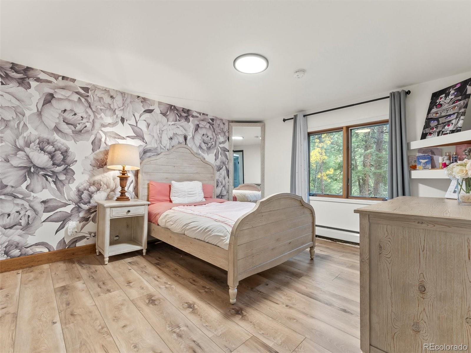 Luxury Mountain Retreat Recently Remodeled! A Must See! Discover your private mountain oasis in this custom-built home nestled on 3 acres. Nestled into the mountainside for peace and stunning views with grand vaulted ceilings and an open floor plan. Offering a warm and inviting atmosphere emersed in natural light. Open concept living, gather around the cozy fireplace with floor to ceiling windows. The kitchen comes with granite countertops, a large island with bar seating, and brand-new stainless-steel refrigerator and stove for modern convenience. Upstairs, a dedicated moody and sophisticated office—across from the primary suite. Primary suite impresses with vaulted ceilings, large windows, a walk-in closet and a newly remodeled bathroom suite. Step outside to onto a brand-new Trex deck, perfect for entertaining and outdoor living. The backyard features a cement pad with power already installed, ready for your custom hot tub or sauna—an ideal upgrade for outdoor relaxation without extra setup. A separate “clubhouse” adds even more flexible space for guests or creativity. Clubhouse has heat and electricity. Upgrades: *New Flooring – Luxury Vinyl *New Tankless Hot Water Heater *New luxury trek deck with lighting -maintenance free *All new interior paint *Remodeled primary suite bathroom. Prime property location - 2 miles from freeway access and amazing trails. Shopping center access is within 3 miles. Downtown Denver is easily accessible within 30 minutes. Schedule your showing at this extraordinary mountain retreat today!