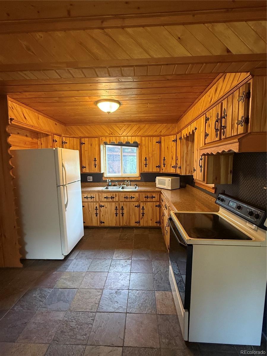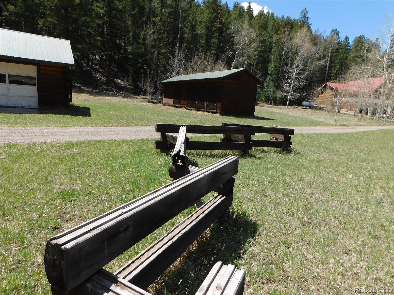 Nestled in the pines by the creek on 2.89 acres, this cabin was built in 1983, It has a main bedroom downstairs & a 390 sq ft loft with 2 closets upstairs overlooking the living room & cozy fireplace. Cute kitchen with lots of cabinets. Full bath on main level. Small guest cabin by the creek. (Water needs hooked up) Attached garage with mudroom entry & carport. Outside features include: Mature pine trees, & the Castle Rock Creek flowing to the North side. South side of property backs up to National Forest. Extra Storage building & 2 car garage for all of your toys!!! RV Hook-up for guests. Must see to appreciate!