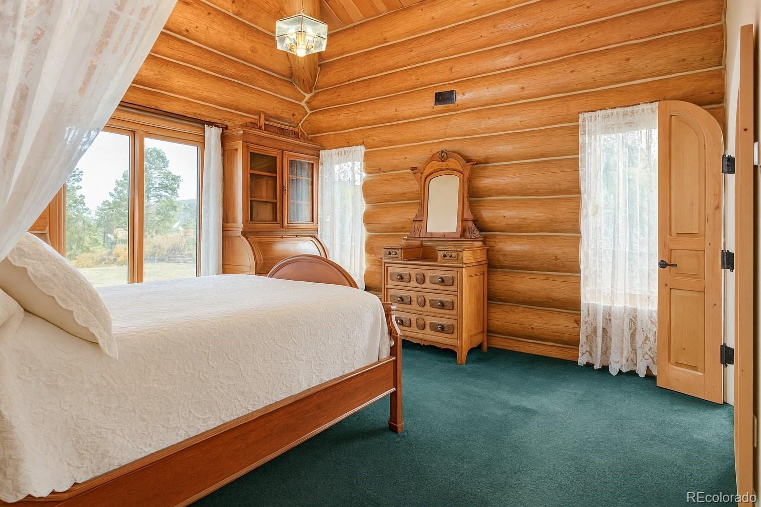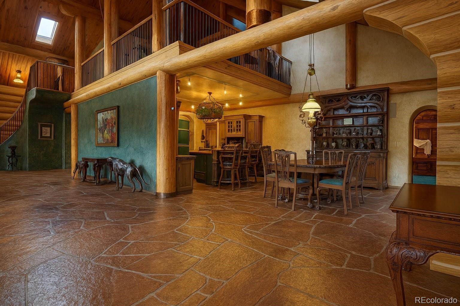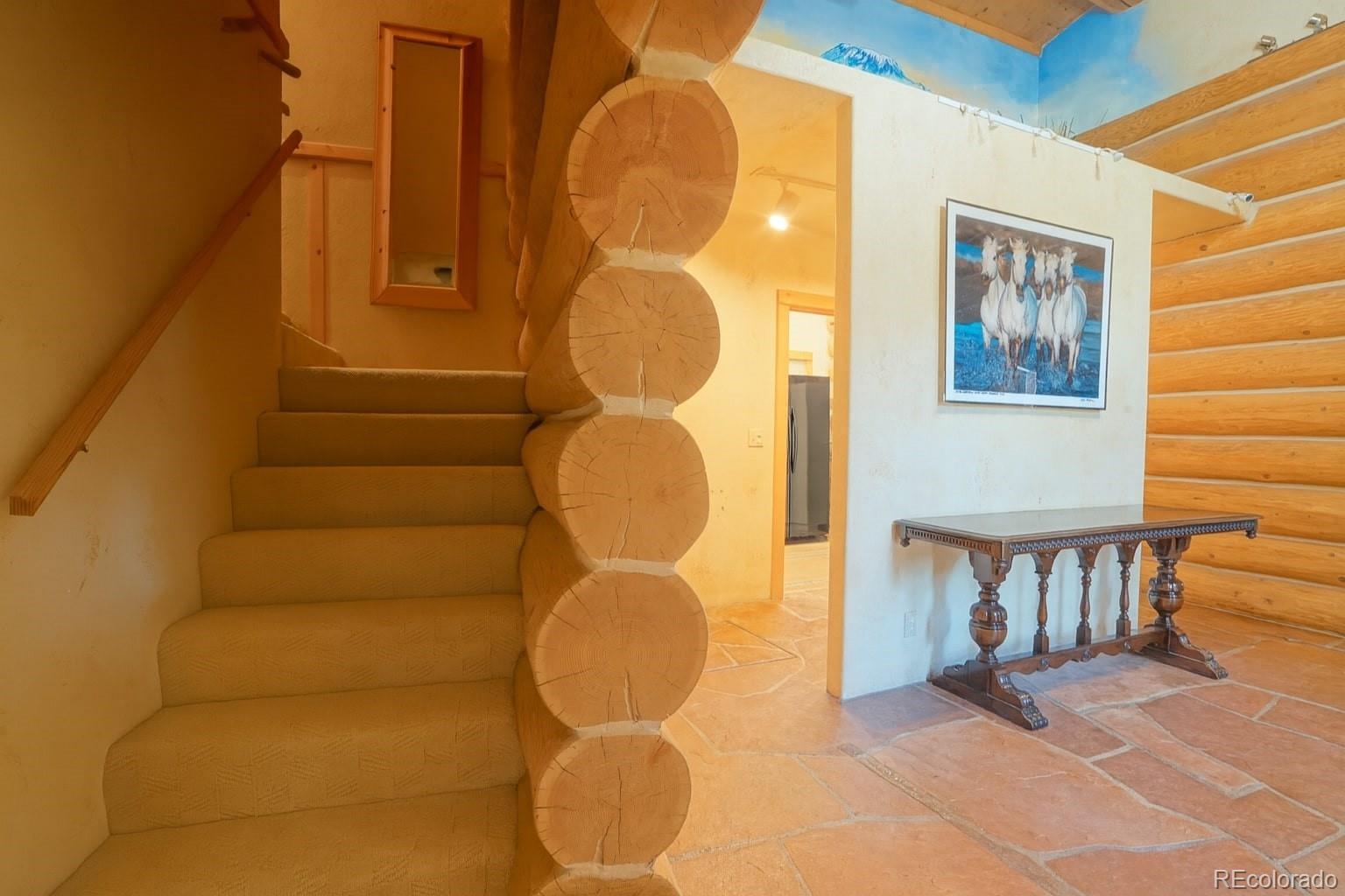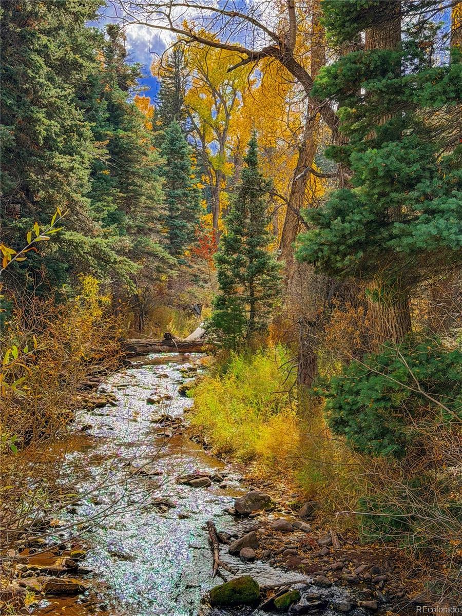 Discover a rare investment opportunity at this 35+ acre ranch, a custom trophy log, stucco, & rock home spanning 5,548 sqft with a paved driveway. Nestled along the serene Cucharas River with stunning views of the Sangre de Cristo Mountains & Cuchara Mountain Park ski area, this property offers a unique blend of rustic charm, luxury, & functionality. With its expansive grounds, horse stables, & versatile spaces, this fully furnished estate is perfect for those seeking a private retreat, equestrian haven, or a venue for special events. The heart of the home is the magnificent great room featuring a massive stone wood-burning fireplace, an antler chandelier, stone floors, and T&G ceilings. The gourmet kitchen boasts custom tile & butcherblock countertops, a Heartland refrigerator & stove, & an antique breakfast bar. Throughout the home, T&G ceilings, log vigas and in-floor radiant heat create a cozy yet sophisticated ambiance, complemented by antique furnishings in select rooms and striking rock outcroppings visible on the property. The master bedroom is a sanctuary with an en-suite 5 piece bath - a walk-in shower, Jacuzzi tub, dual vanities, & elegant marble floors. Two additional bedrooms in home, including one with its own en-suite full bath, offer ample space for family or guests. Upstairs a spacious recreation room awaits, complete with an antique bar, pool table, gun safe closet, and a ¾ bath. A separate apartment above the attached 4-car garage features T&G ceilings, electric heat, a kitchen, dining area, living room, bedroom, full bath, & large walk-in storage, providing ideal accommodations for guests or staff. The property’s outdoor amenities are equally impressive, with horse stables featuring two tack rooms, a man-made wildlife pond, & dike wall marking the east boundary. A detached 1,500 sqft 4-car garage includes a large workshop, a finished trophy room, & piped water, offering endless possibilities for hobbies or business ventures.