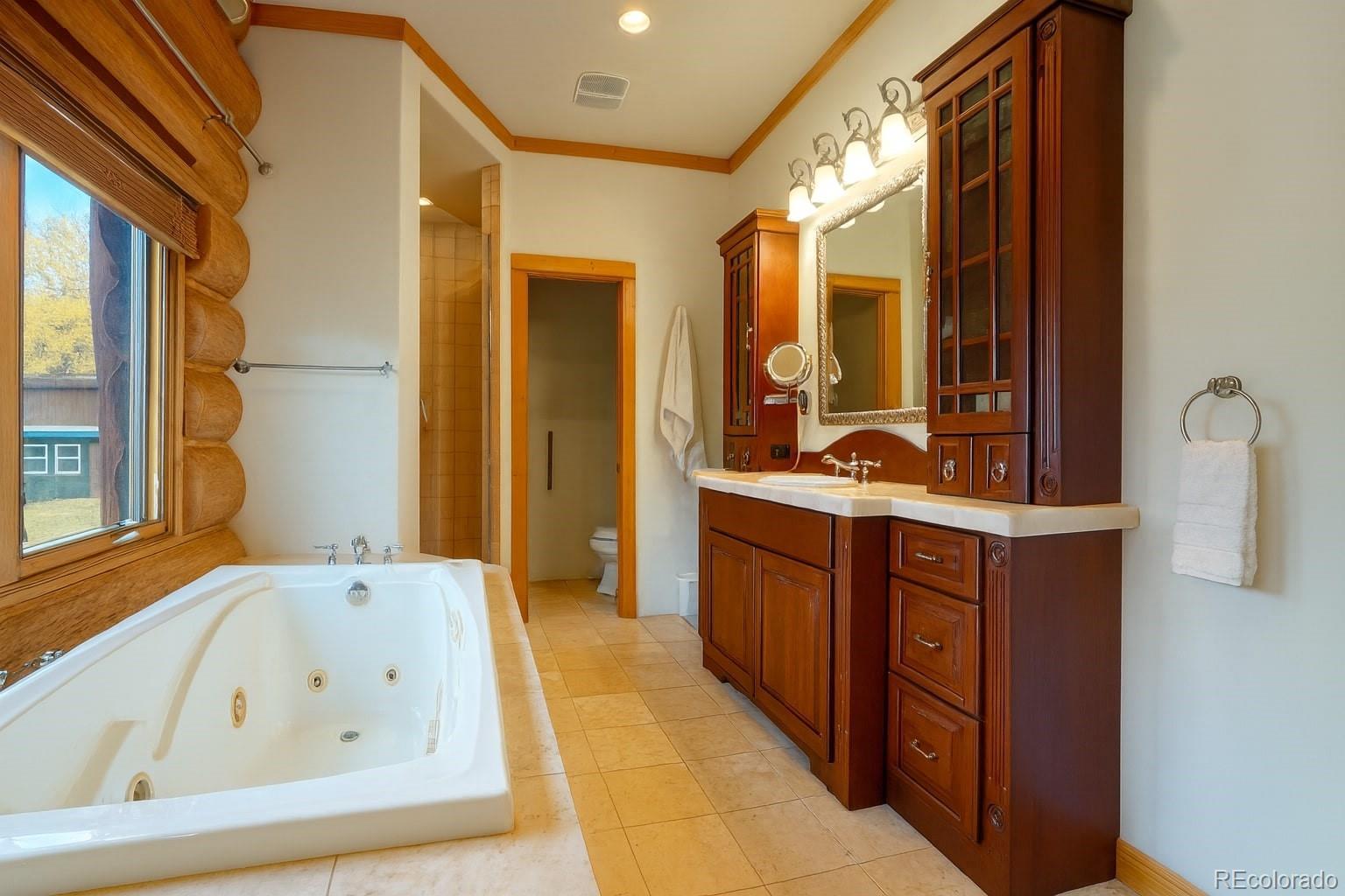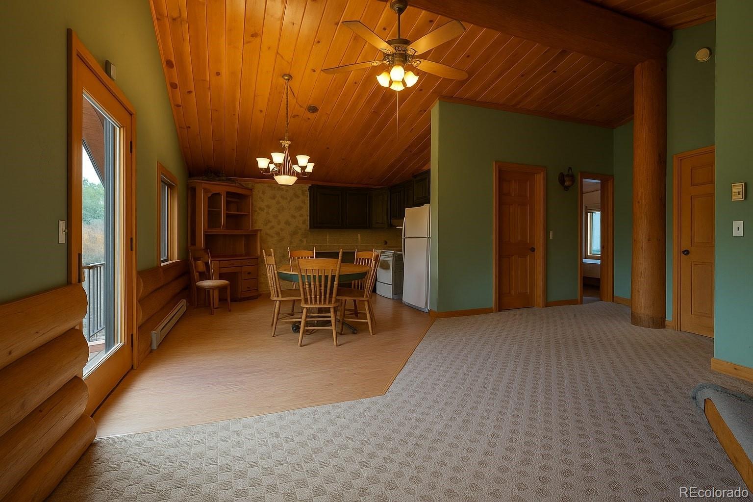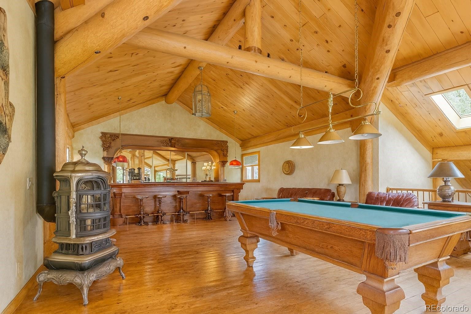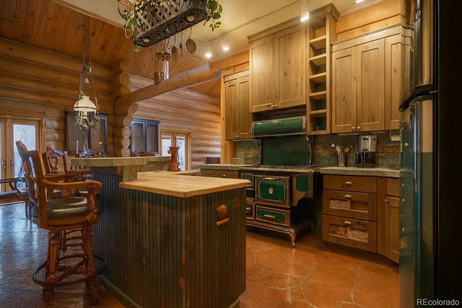 Discover a rare investment opportunity at this 35+ acre ranch, a custom trophy log, stucco, & rock home spanning 5,548 sqft with a paved driveway. Nestled along the serene Cucharas River with stunning views of the Sangre de Cristo Mountains & Cuchara Mountain Park ski area, this property offers a unique blend of rustic charm, luxury, & functionality. With its expansive grounds, horse stables, & versatile spaces, this fully furnished estate is perfect for those seeking a private retreat, equestrian haven, or a venue for special events. The heart of the home is the magnificent great room featuring a massive stone wood-burning fireplace, an antler chandelier, stone floors, and T&G ceilings. The gourmet kitchen boasts custom tile & butcherblock countertops, a Heartland refrigerator & stove, & an antique breakfast bar. Throughout the home, T&G ceilings, log vigas and in-floor radiant heat create a cozy yet sophisticated ambiance, complemented by antique furnishings in select rooms and striking rock outcroppings visible on the property. The master bedroom is a sanctuary with an en-suite 5 piece bath - a walk-in shower, Jacuzzi tub, dual vanities, & elegant marble floors. Two additional bedrooms in home, including one with its own en-suite full bath, offer ample space for family or guests. Upstairs a spacious recreation room awaits, complete with an antique bar, pool table, gun safe closet, and a ¾ bath. A separate apartment above the attached 4-car garage features T&G ceilings, electric heat, a kitchen, dining area, living room, bedroom, full bath, & large walk-in storage, providing ideal accommodations for guests or staff. The property’s outdoor amenities are equally impressive, with horse stables featuring two tack rooms, a man-made wildlife pond, & dike wall marking the east boundary. A detached 1,500 sqft 4-car garage includes a large workshop, a finished trophy room, & piped water, offering endless possibilities for hobbies or business ventures.