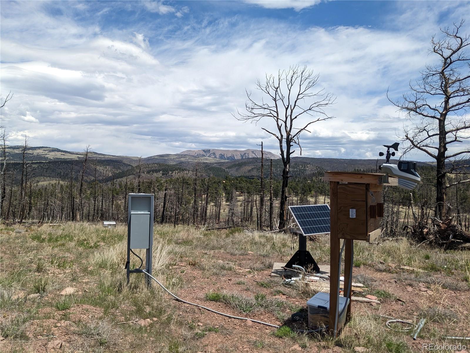 With a functioning well (with hand pump also), septic, new electric pedestal with 110/220, and 20/30/50 amp RV hookups this property is ready to plug in your camper and empty your RV tanks without breaking camp. Excellent mountain build site close to the front of [gated] Forbes Park for day trips. Huge open space with 5-acres and views all around. Year round access! The former home succumbed to the Spring Fire in 2018, but the land is ready for you now, and even has high speed internet connection already on-site. There is a driveway to a level camp/build site and a rock formation. A 360° view shows off Mt. Maestas and Mt. Blanca, with Forbes Park and Wagon Creek Ranches also in the view. Close to the small Community Center for potlucks and a chance to meet other landowners and residents. (Solar panel and box of power cords not included).