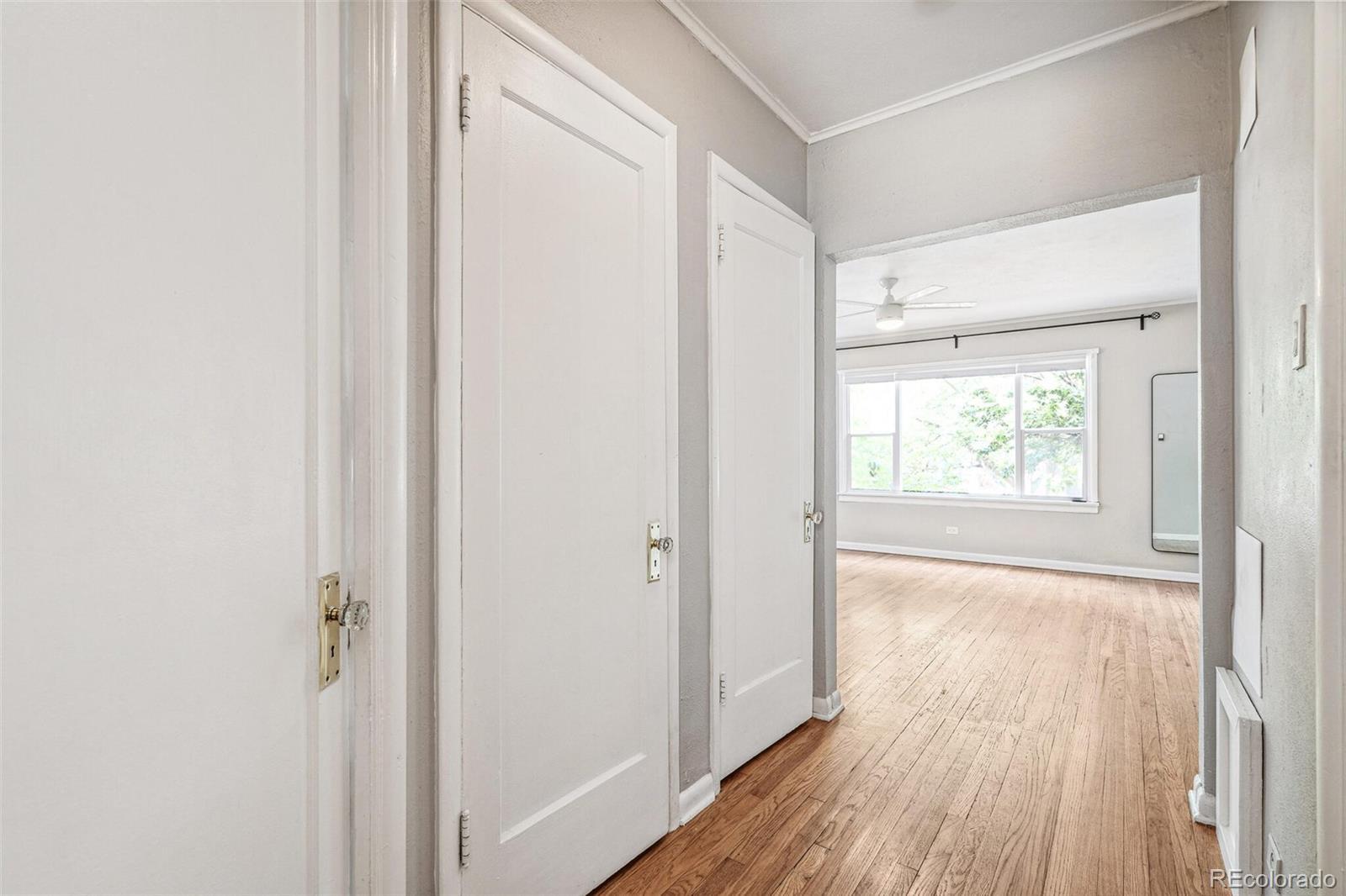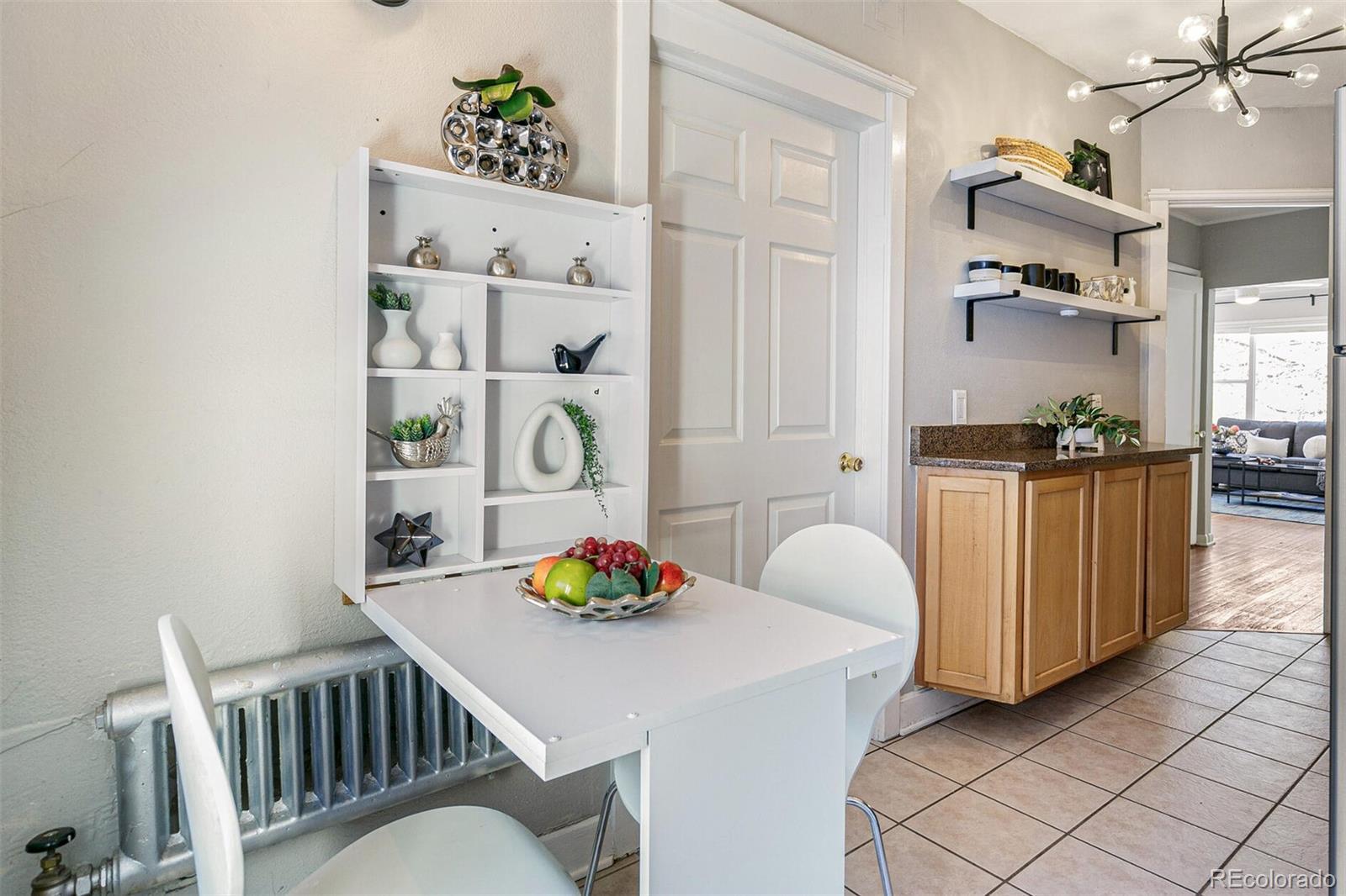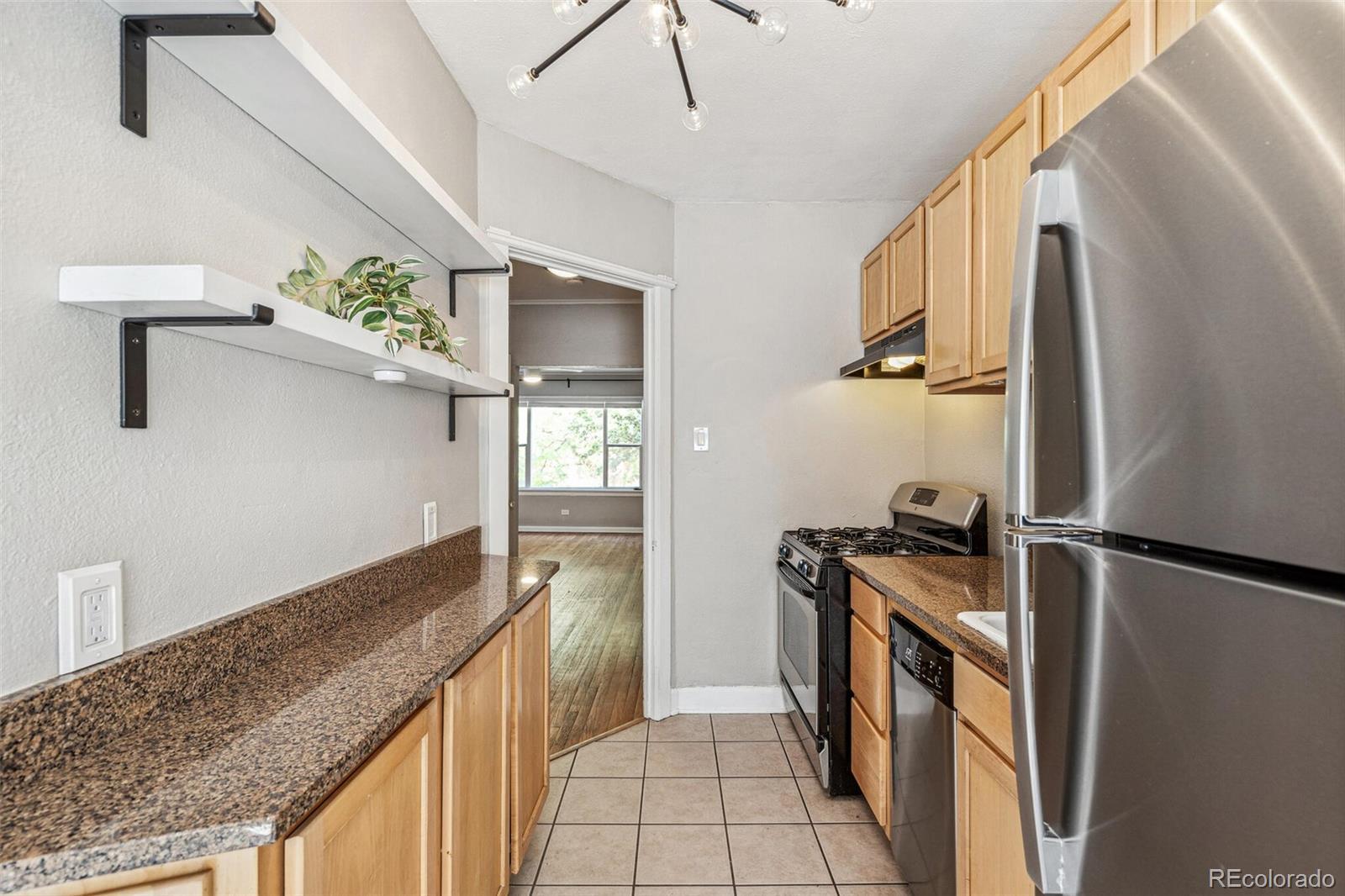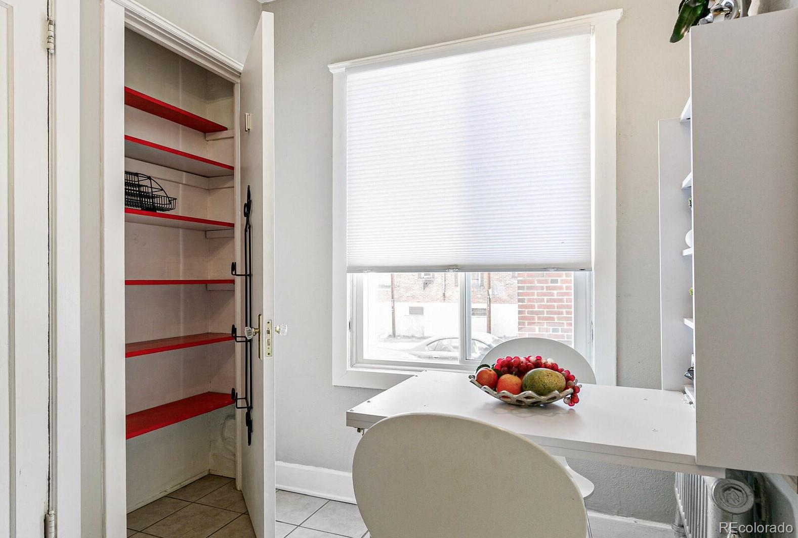 Amazing Cap Hill lifestyle awaits! This sunny and spacious one-bedroom, one-bathroom condo blends timeless 1920s charm with modern updates, making it the perfect blend of character and convenience. Upon entering you'll feel the spacious, welcoming layout and appreciate the ample, cheery natural light this home offers. Warm, classic hardwood floors throughout and featuring an updated kitchen featuring stainless steel appliances, granite counter tops, and a charming breakfast nook. The generously sized bedroom features a large closet with plenty of storage and closet organizer. BONUS! This lovely home comes with your own, deeded, private garage with automatic garage door opener AND an additional parking space outside of the garage! As if that wasn't enough, additionally you have a dedicated secure storage space in the basement for your private use as well. This building offers free shared laundry facilities in the basement and a communal outdoor space in the back, perfect for cookouts and gatherings. Super walkable location: Thump Coffee (1 block), Wild Corgi Pub - neighborhood favorite bar/restaurant (1 block), Jelly-Breakfast (4 blocks), Call your mother -Truly Amazing Bagels! (5 blocks), Ogden Theater & Fillmore Auditorium -Legendary Music Venues (4 blocks). If you're looking for that convenient, classic Cap Hill living experience, this is it!