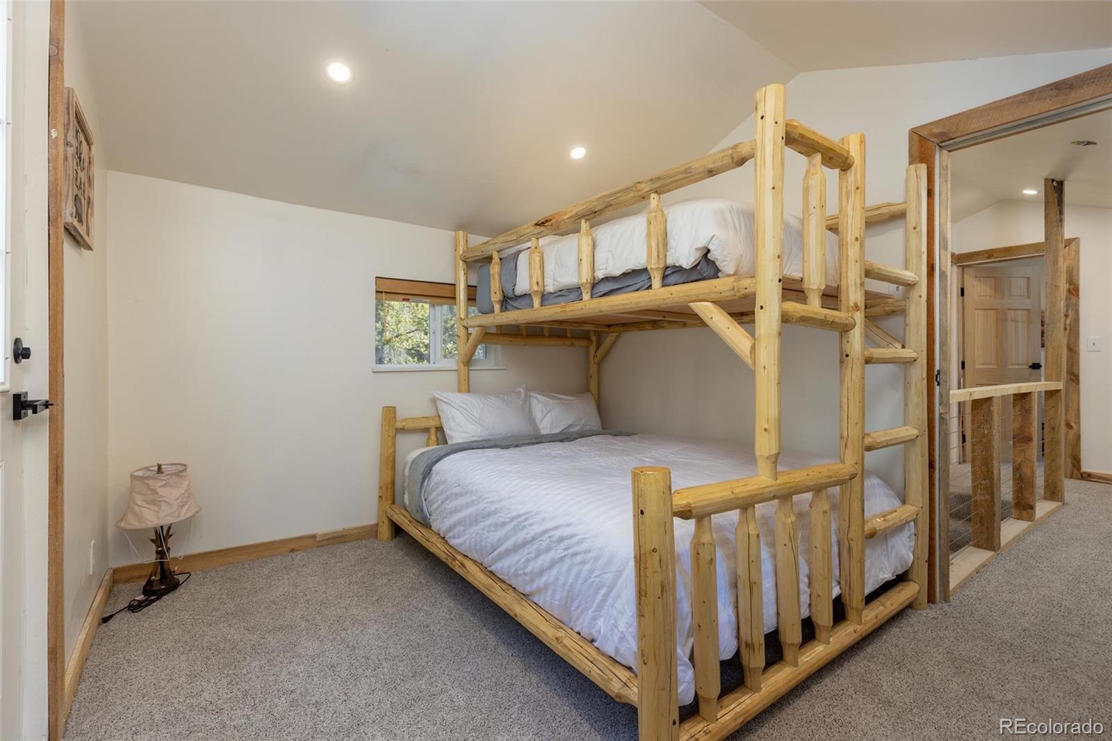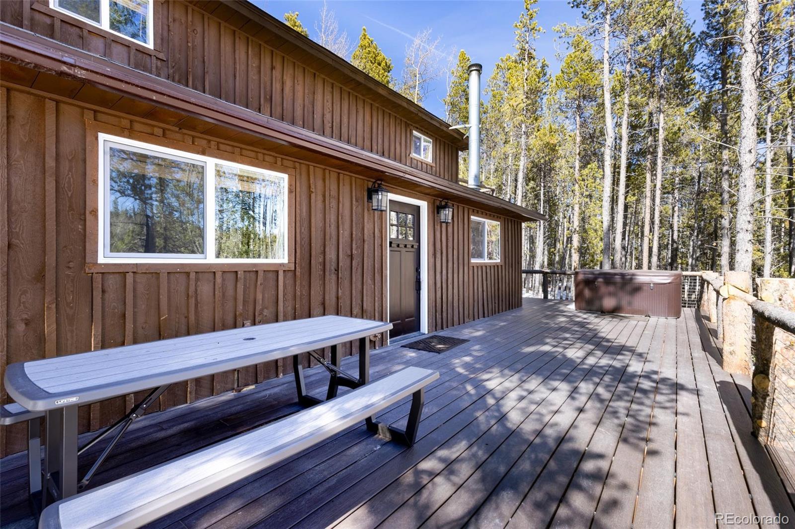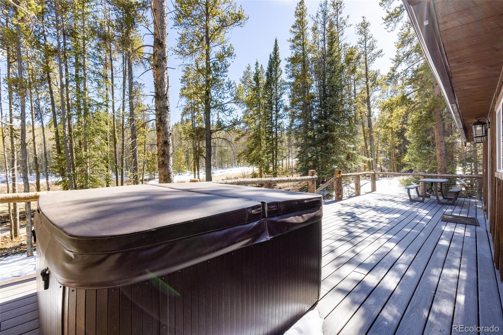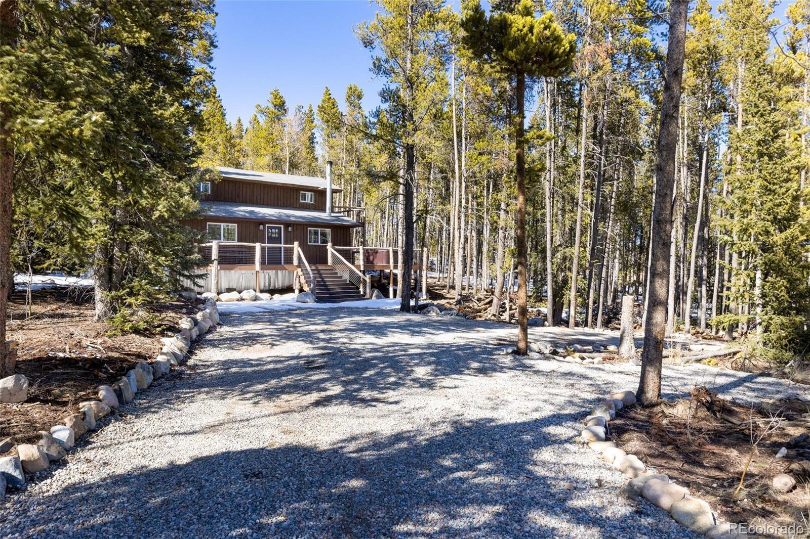 Tucked into a sunlit acre of pine forest with sweeping views through the trees, this 3-bedroom, 2-bath home is the kind of place that feels like a deep breath. Currently run as a highly successful Airbnb with over $84k in bookings in 2024, this property comes fully furnished and can be both a great investment and a peaceful mountain retreat for your family and friends. The roof is brand new and the large deck is only 2 years old. The main floor centers around a custom stone fireplace—perfect for gathering, unwinding, or curling up while the new boiler feeds the in-floor radiant heat keeping everything warm and cozy. The kitchen, finished with granite countertops and stainless appliances flows effortlessly into the main living space for easy entertaining. A main-level master and a convenient bath in-between offer plenty of space and flexibility. There is plenty of room for extra friends at this cabin. The upstairs has a queen bedroom and a twin over queen bunk with a balcony and mountain views. Step outside on the massive new Trex deck to sip a coffee or enjoy a good time in the hot tub. With plenty of room for barbequing and outdoor dining you can really take advantage of the beautiful woods around the cabin. The area is frequented by moose since it is close to the ponds and streams. It is conveniently located only 20 miles to Breckenridge and because it is near the bottom of valley of the sun it makes for much easier access in the winter time. Don't miss this incredible opportunity to own your own Colorado Mountain Home!