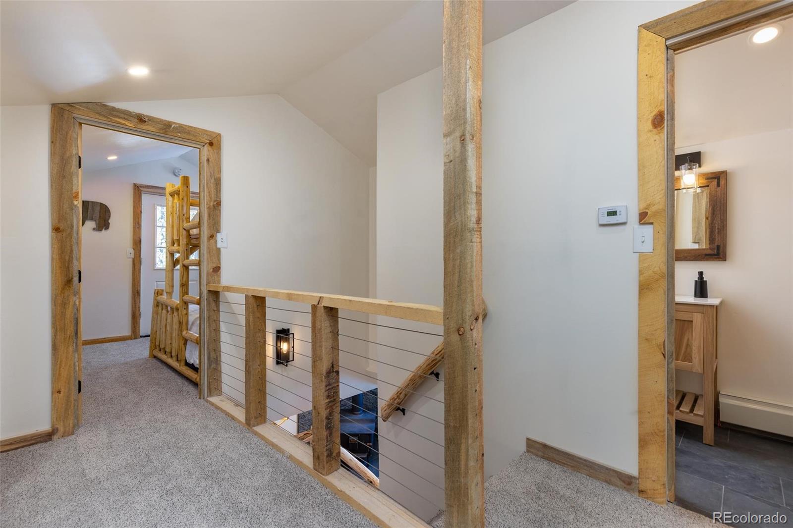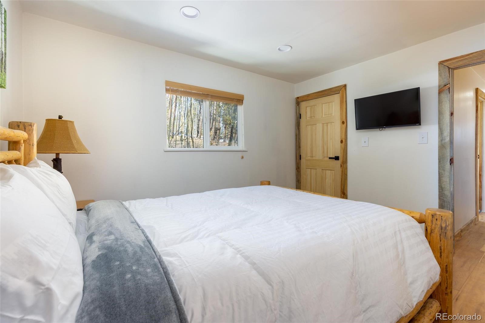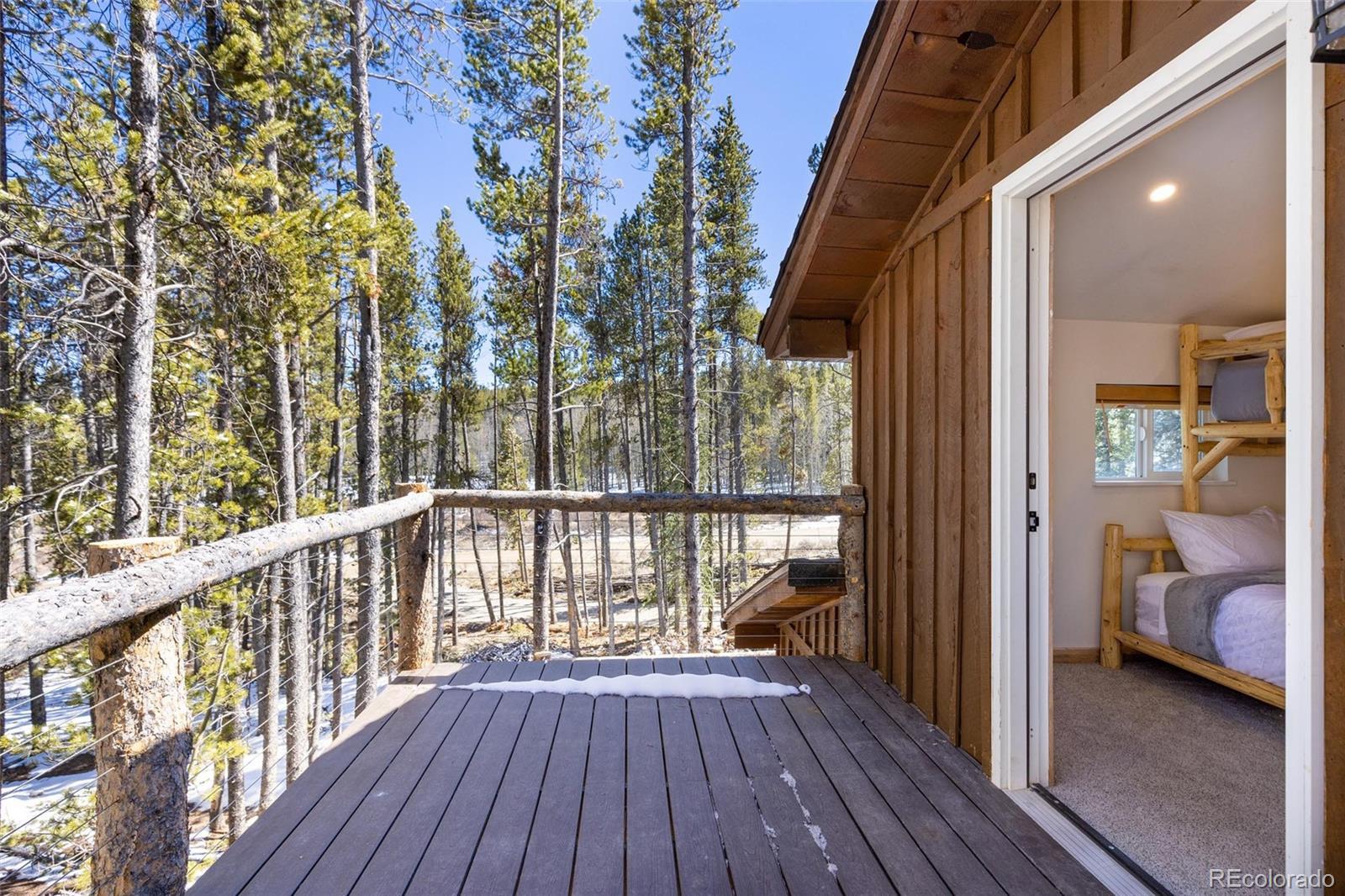 Tucked into a sunlit acre of pine forest with sweeping views through the trees, this 3-bedroom, 2-bath home is the kind of place that feels like a deep breath. Currently run as a highly successful Airbnb with over $84k in bookings in 2024, this property comes fully furnished and can be both a great investment and a peaceful mountain retreat for your family and friends. The roof is brand new and the large deck is only 2 years old. The main floor centers around a custom stone fireplace—perfect for gathering, unwinding, or curling up while the new boiler feeds the in-floor radiant heat keeping everything warm and cozy. The kitchen, finished with granite countertops and stainless appliances flows effortlessly into the main living space for easy entertaining. A main-level master and a convenient bath in-between offer plenty of space and flexibility. There is plenty of room for extra friends at this cabin. The upstairs has a queen bedroom and a twin over queen bunk with a balcony and mountain views. Step outside on the massive new Trex deck to sip a coffee or enjoy a good time in the hot tub. With plenty of room for barbequing and outdoor dining you can really take advantage of the beautiful woods around the cabin. The area is frequented by moose since it is close to the ponds and streams. It is conveniently located only 20 miles to Breckenridge and because it is near the bottom of valley of the sun it makes for much easier access in the winter time. Don't miss this incredible opportunity to own your own Colorado Mountain Home!