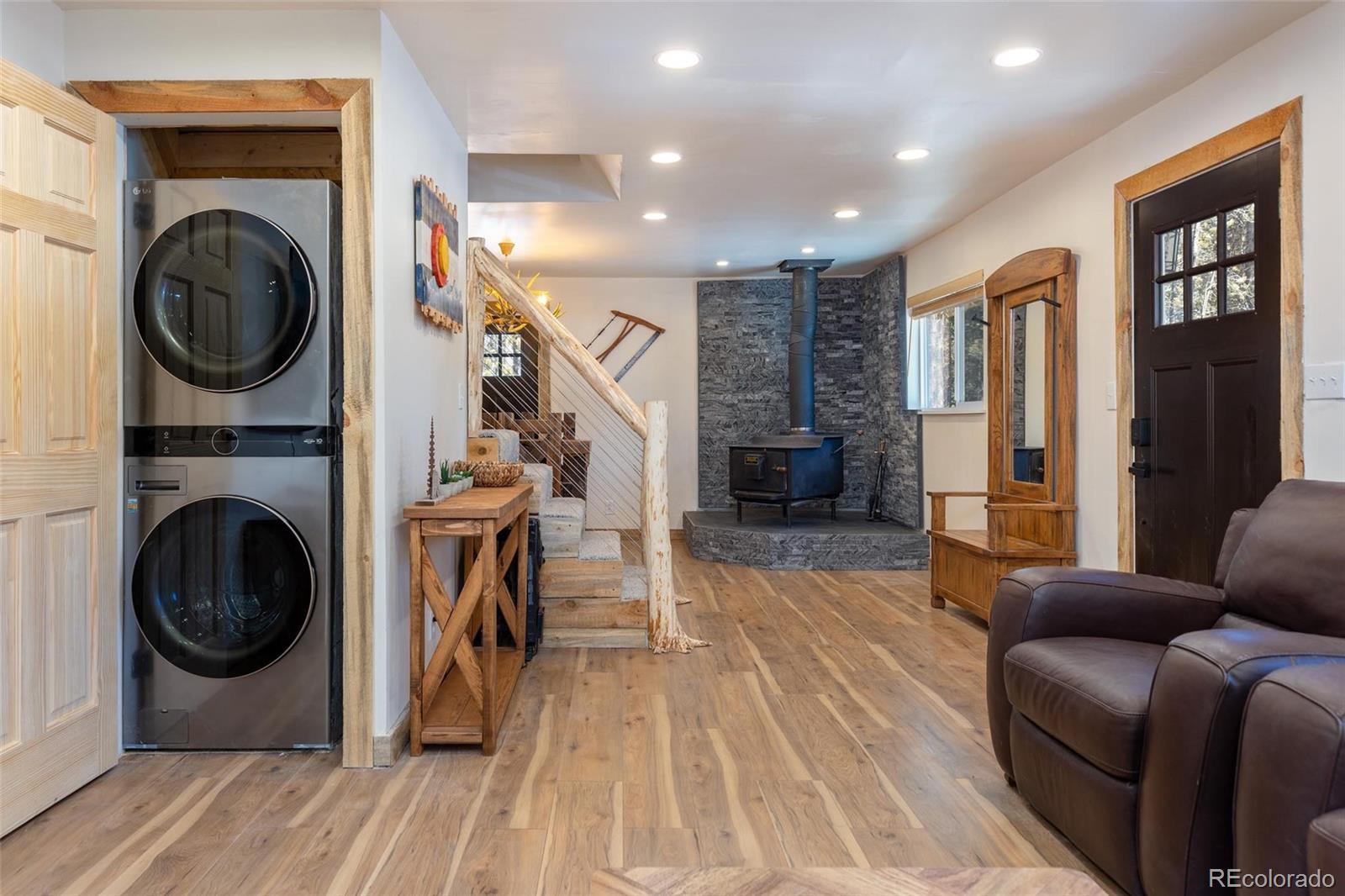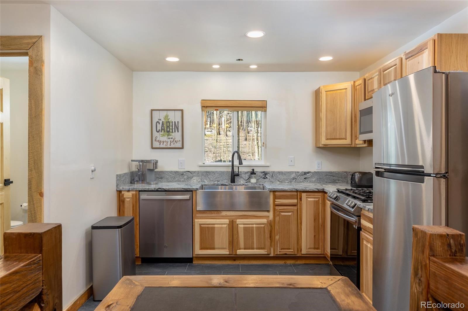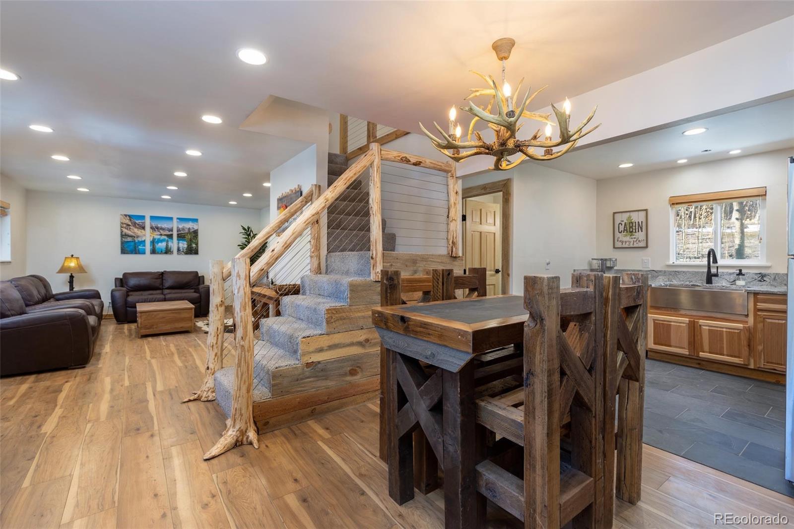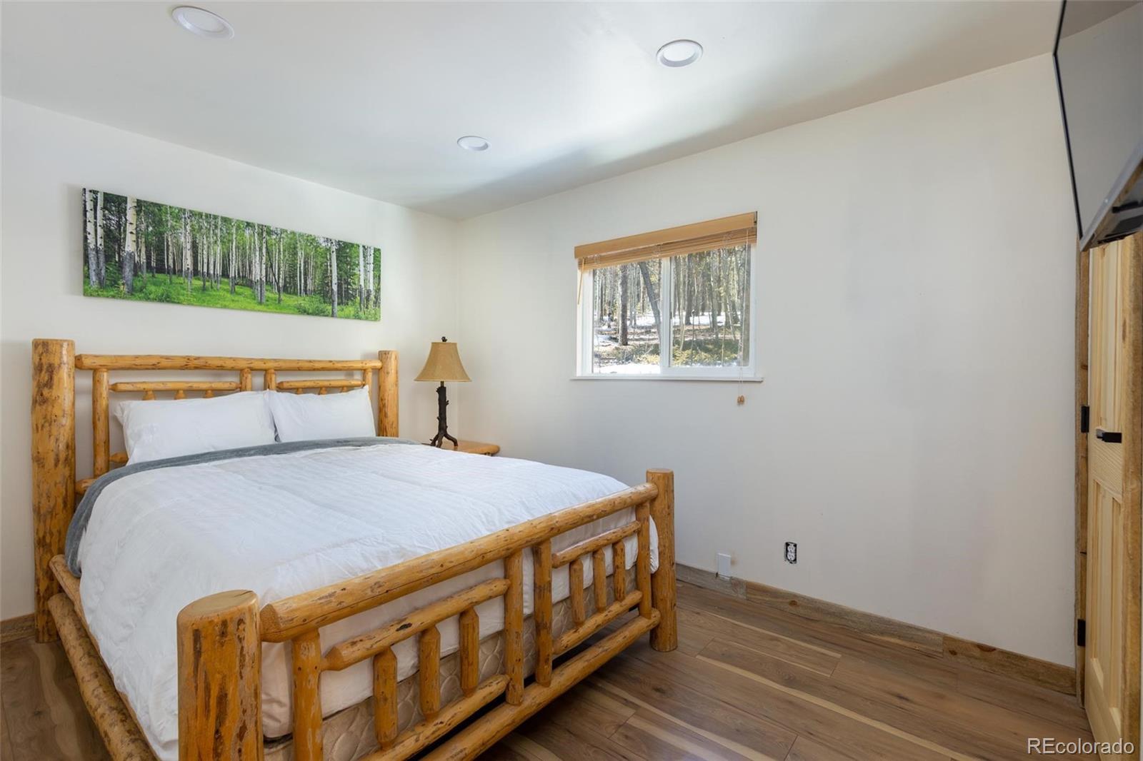 Tucked into a sunlit acre of pine forest with sweeping views through the trees, this 3-bedroom, 2-bath home is the kind of place that feels like a deep breath. Currently run as a highly successful Airbnb with over $84k in bookings in 2024, this property comes fully furnished and can be both a great investment and a peaceful mountain retreat for your family and friends. The roof is brand new and the large deck is only 2 years old. The main floor centers around a custom stone fireplace—perfect for gathering, unwinding, or curling up while the new boiler feeds the in-floor radiant heat keeping everything warm and cozy. The kitchen, finished with granite countertops and stainless appliances flows effortlessly into the main living space for easy entertaining. A main-level master and a convenient bath in-between offer plenty of space and flexibility. There is plenty of room for extra friends at this cabin. The upstairs has a queen bedroom and a twin over queen bunk with a balcony and mountain views. Step outside on the massive new Trex deck to sip a coffee or enjoy a good time in the hot tub. With plenty of room for barbequing and outdoor dining you can really take advantage of the beautiful woods around the cabin. The area is frequented by moose since it is close to the ponds and streams. It is conveniently located only 20 miles to Breckenridge and because it is near the bottom of valley of the sun it makes for much easier access in the winter time. Don't miss this incredible opportunity to own your own Colorado Mountain Home!