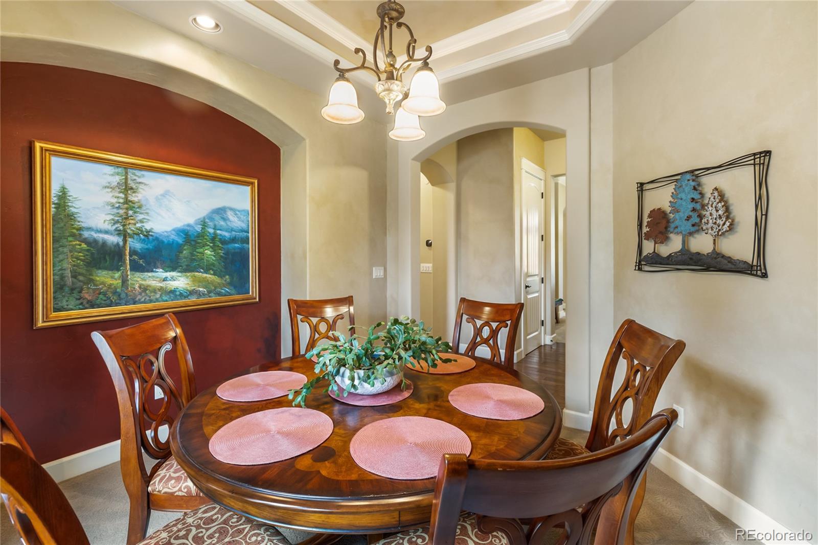 Exquisite Former Parade of Homes Estate! Step into unparalleled elegance and sophistication in this stunning custom home, perfectly situated on the prestigious 4th hole of Shining Mountain Golf Course —Expertly designed landscaping featuring vibrant perennials, mature trees, and a lush green lawn creates a picturesque setting. From the moment you enter the grand foyer, you will be enveloped by an atmosphere of refined luxury and tranquility, transporting you to the private oasis you’ve always dreamed of. The gourmet kitchen is a chef’s masterpiece featuring a generous island with seating, a built-in desk, expansive pantry, premium gas cooktop, under-cabinet lighting, water filtration system, and top-of-the-line Jenn-Air appliances. The spacious family room invites you to unwind with built-in surround sound and a cozy gas fireplace, creating the perfect ambiance for relaxation or entertaining. On the main level, two luxurious suites await, including a master retreat with a fully remodeled spa-inspired bath. Experience radiant ceiling heating that gently pours warmth over you as you soak in the sumptuous tub — pure indulgence for cold winter nights. The walk-out lower level is designed for leisure and entertaining with a private hot tub, a custom wet bar, a theater room with components, and a pool table area — ideal for hosting unforgettable gatherings. For those working from home, the residence is equipped with a commercial-grade network and five strategically placed access points, ensuring seamless connectivity throughout. Additional upgrades throughout this magnificent home include premium carpeting, elegant built-ins, architectural arches and art coves, comprehensive surround sound, heat tape, main level air conditioning, dual furnaces, soaring 10-foot ceilings, and abundant storage space. This is an extraordinary opportunity to own a meticulously crafted luxury home that truly has it all. Don’t miss your chance to make this dream home yours.