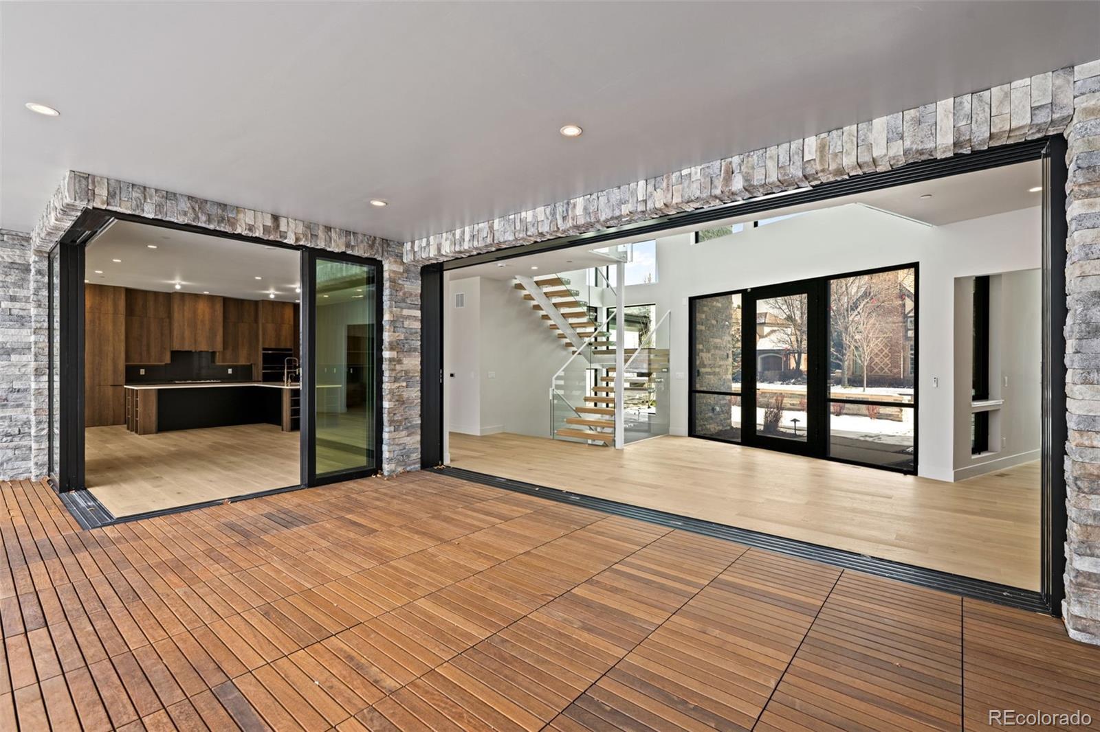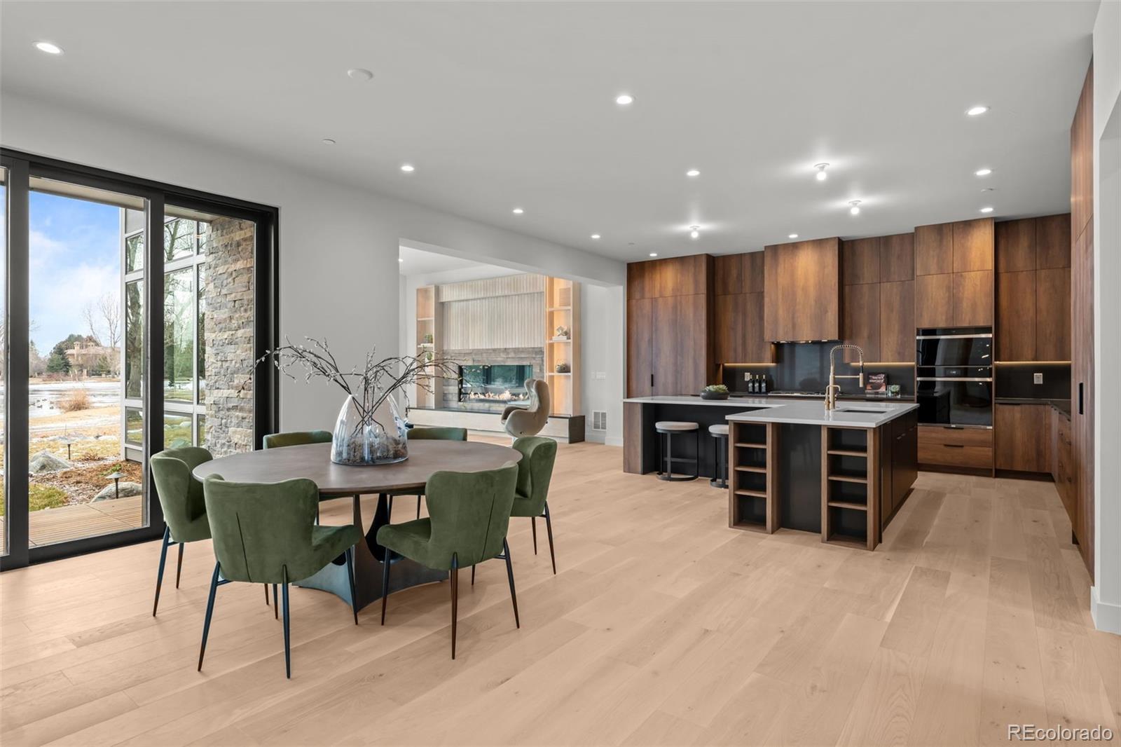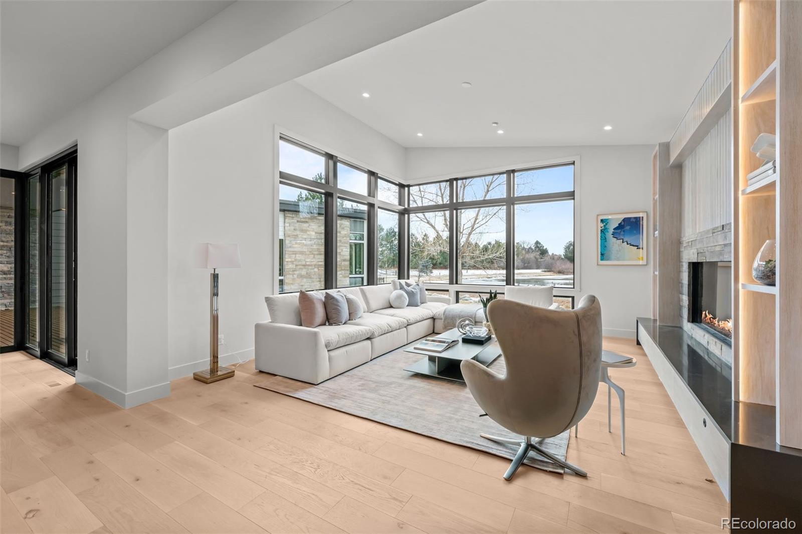 This rare brand-new construction showcases Modern Colorado architecture with refined Mid-Century touches, designed by the renowned Woodley Architecture. Located in one of the most coveted enclaves, Buell Mansion, this home is perfectly positioned on Sandy Lake Road, offering breathtaking mountain & lake views. A dramatic two-story entry with floor-to-ceiling Marvin windows and expansive sliding glass doors create a stunning first impression. High-end finishes abound including custom wide-plank engineered flooring, a mono-stringer staircase with glass side panels, and electronic privacy film at the front door for enhanced security. The home features a stunning chef’s kitchen that faces a set of stacking doors that blur the lines between indoor and outdoor living. The kitchen is highlighted by floor-to-ceiling sleek walnut-hued cabinetry, top-of-the-line quartz countertops and backsplash, brushed gold designer plumbing, Thermador & Wolf appliances, a hidden walk-in pantry, island seating, and a spacious mudroom off the 4-car garage complete the space. A dining room with custom sliding doors allows for seamless indoor-outdoor entertaining, while the great room—adjacent to both the kitchen and dining areas—features a linear fireplace. With 6 bedrooms and 8 bathrooms, the layout includes a luxurious main-floor primary suite with dual closets, an elegant spa-inspired bath with heated floors, and a sculpted soaking tub. The upper level offers a media space with a private patio and two ensuite bedrooms. The lower level features a custom bar, two additional ensuite bedrooms, space for a home gym, and an area designed & pre-wired for a future golf simulator or home theatre. Buell Mansion is a gated community with manned security, tennis courts, a swimming pool, and a historic mansion available for private events. Also, located within the renowned Cherry Creek School District, including CHVE, with convenient school bus service.