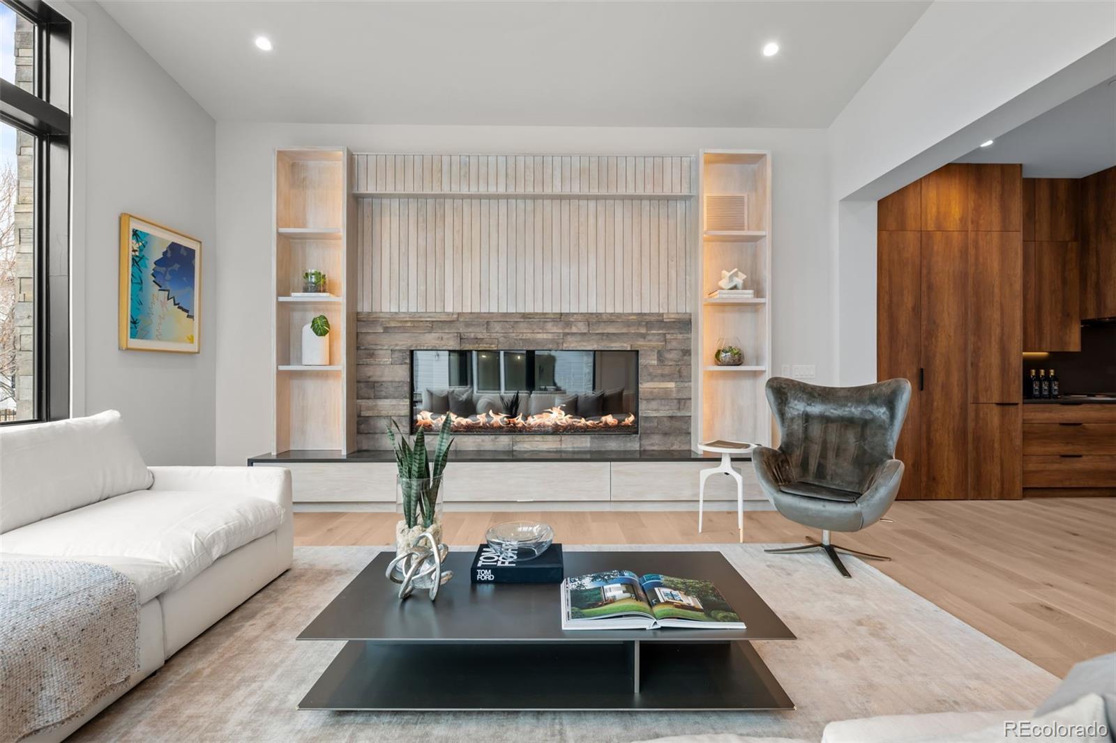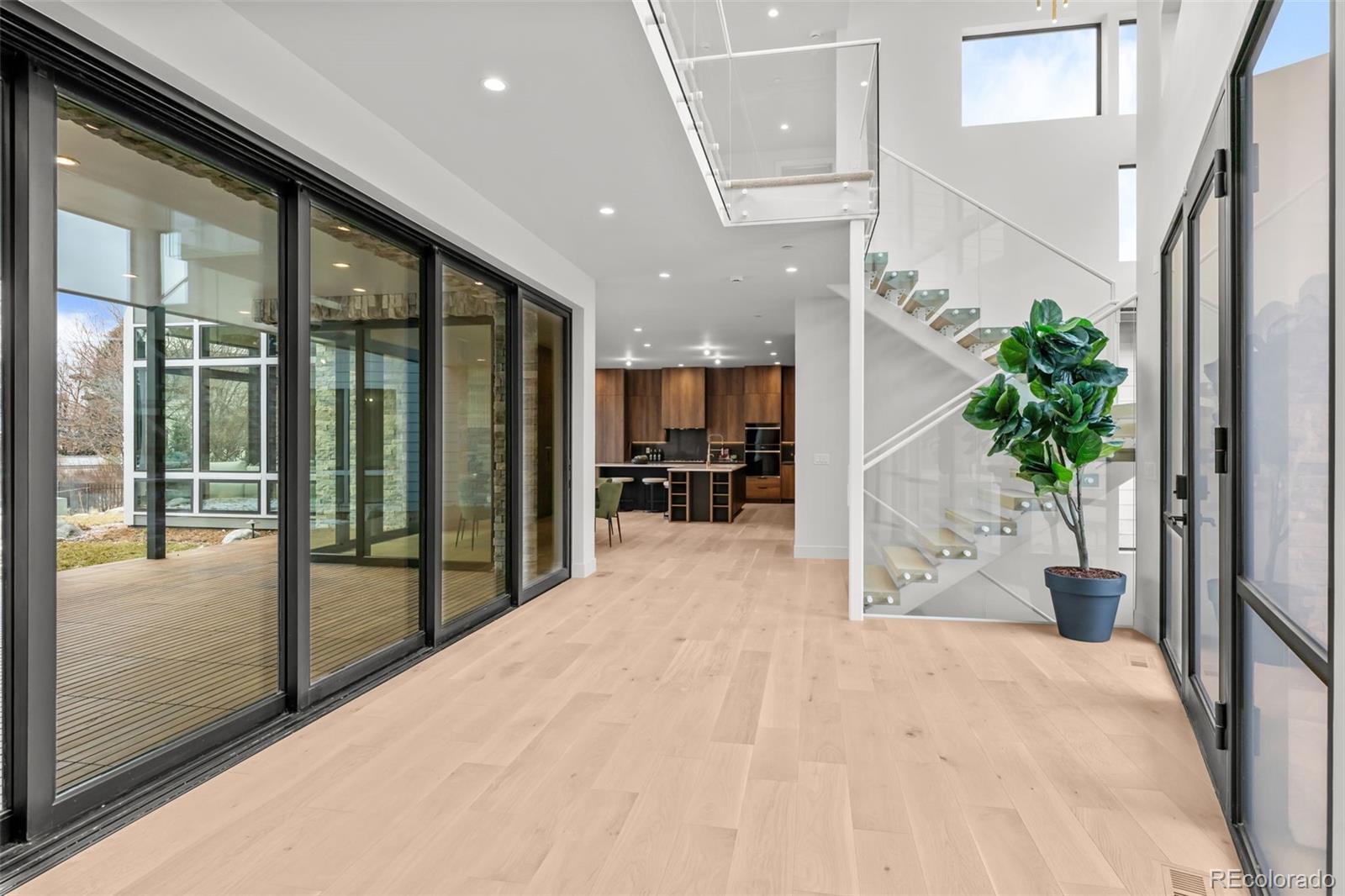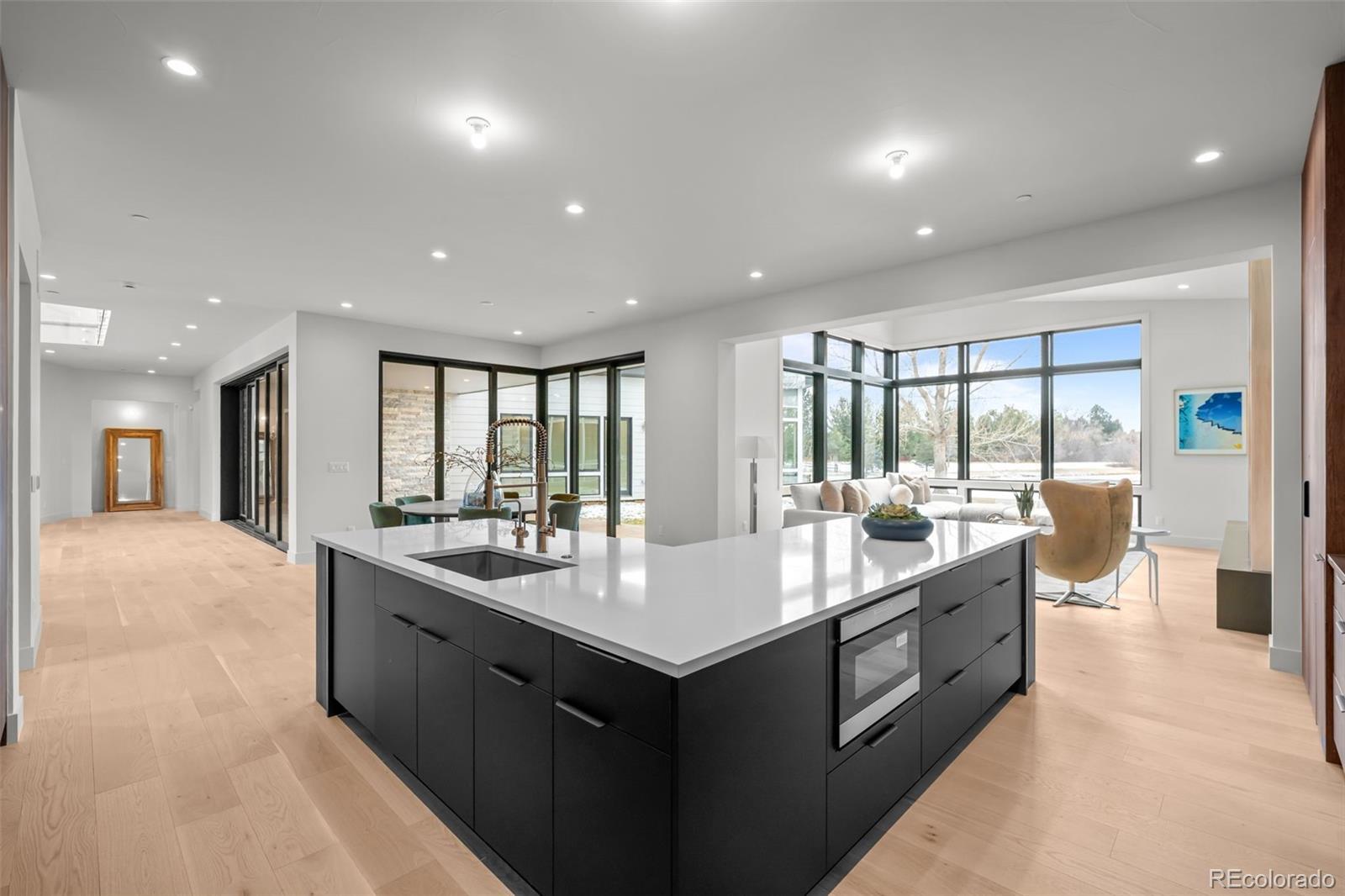 This rare brand-new construction showcases Modern Colorado architecture with refined Mid-Century touches, designed by the renowned Woodley Architecture. Located in one of the most coveted enclaves, Buell Mansion, this home is perfectly positioned on Sandy Lake Road, offering breathtaking mountain & lake views. A dramatic two-story entry with floor-to-ceiling Marvin windows and expansive sliding glass doors create a stunning first impression. High-end finishes abound including custom wide-plank engineered flooring, a mono-stringer staircase with glass side panels, and electronic privacy film at the front door for enhanced security. The home features a stunning chef’s kitchen that faces a set of stacking doors that blur the lines between indoor and outdoor living. The kitchen is highlighted by floor-to-ceiling sleek walnut-hued cabinetry, top-of-the-line quartz countertops and backsplash, brushed gold designer plumbing, Thermador & Wolf appliances, a hidden walk-in pantry, island seating, and a spacious mudroom off the 4-car garage complete the space. A dining room with custom sliding doors allows for seamless indoor-outdoor entertaining, while the great room—adjacent to both the kitchen and dining areas—features a linear fireplace. With 6 bedrooms and 8 bathrooms, the layout includes a luxurious main-floor primary suite with dual closets, an elegant spa-inspired bath with heated floors, and a sculpted soaking tub. The upper level offers a media space with a private patio and two ensuite bedrooms. The lower level features a custom bar, two additional ensuite bedrooms, space for a home gym, and an area designed & pre-wired for a future golf simulator or home theatre. Buell Mansion is a gated community with manned security, tennis courts, a swimming pool, and a historic mansion available for private events. Also, located within the renowned Cherry Creek School District, including CHVE, with convenient school bus service.
